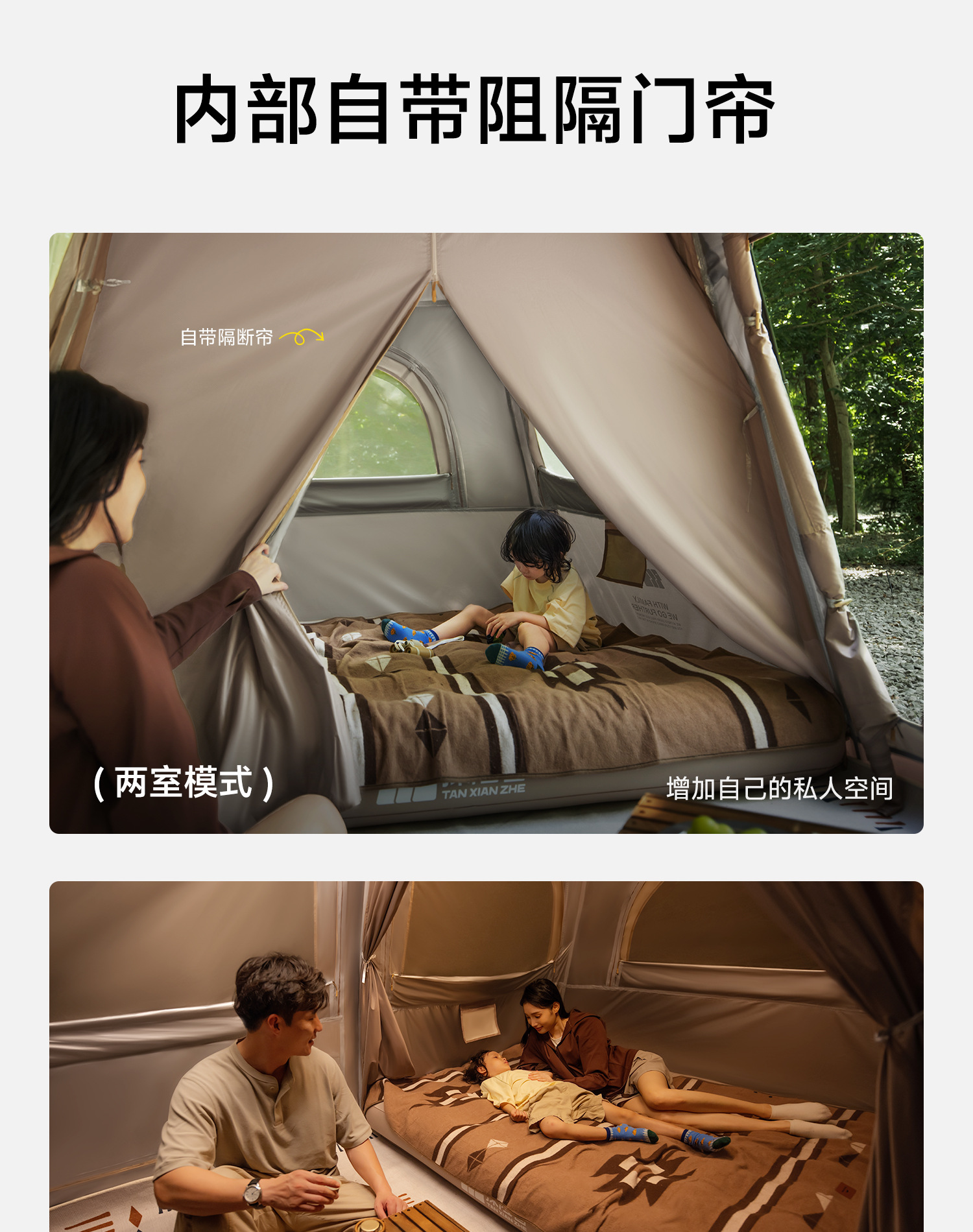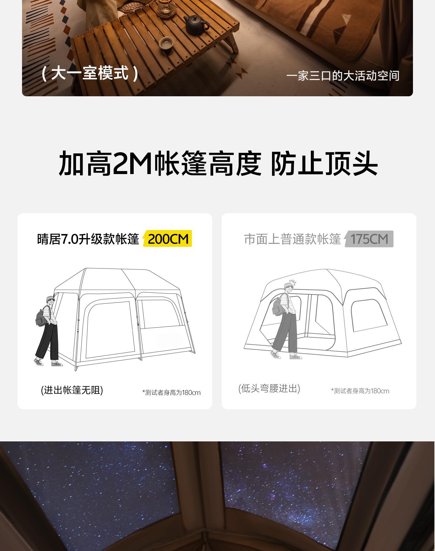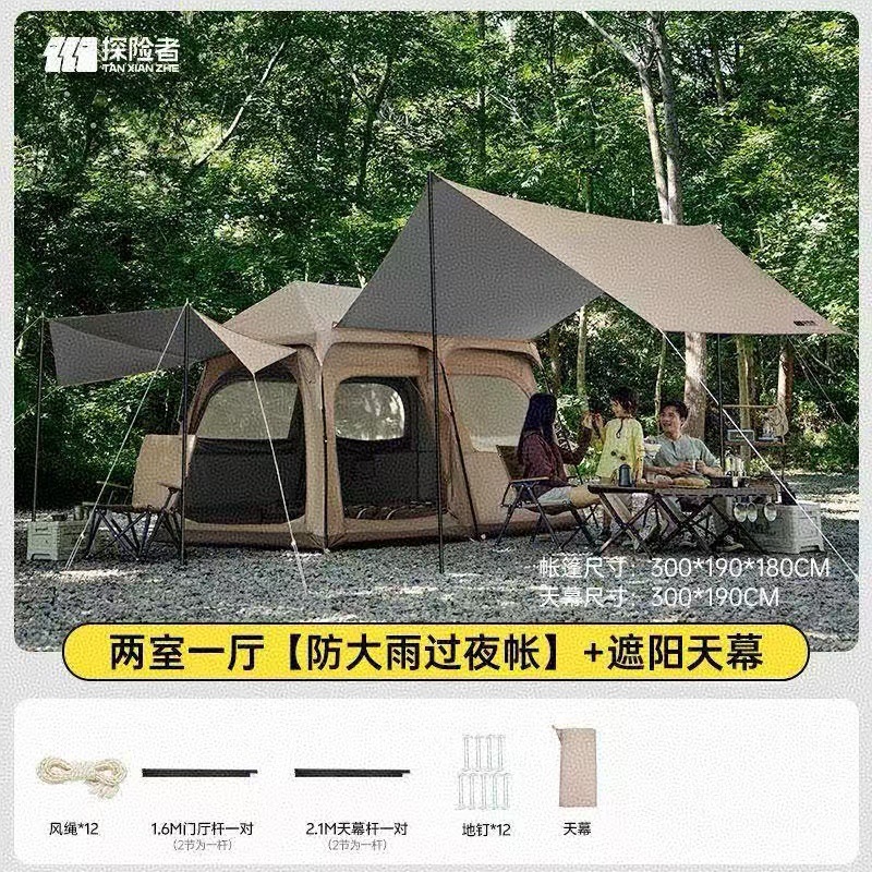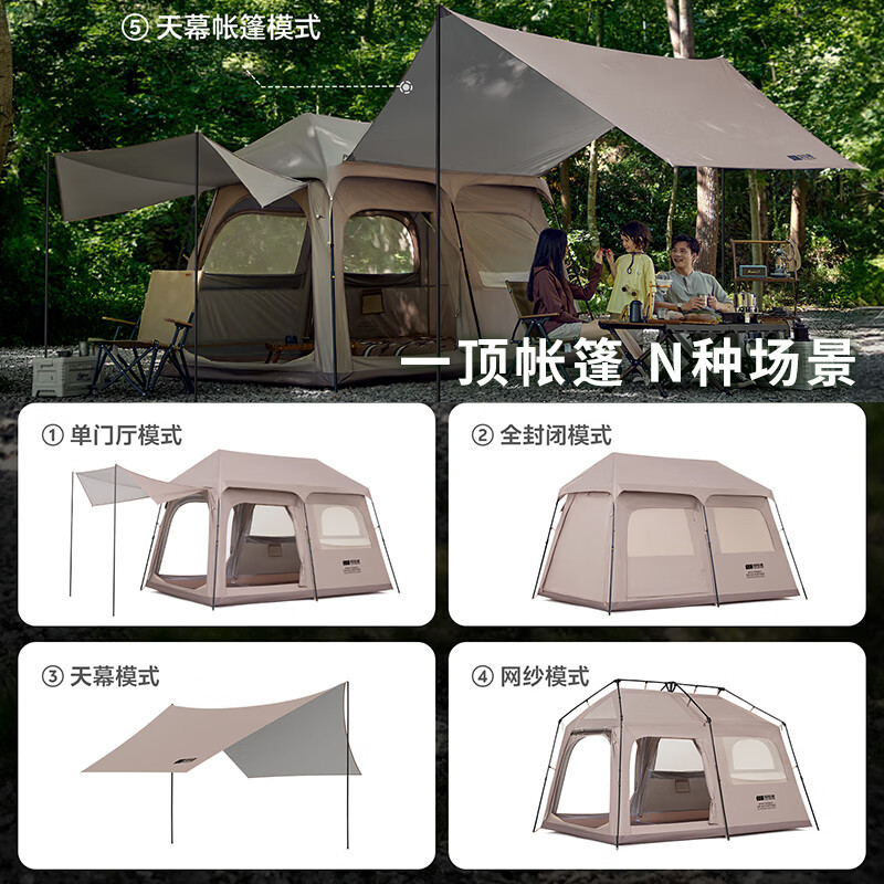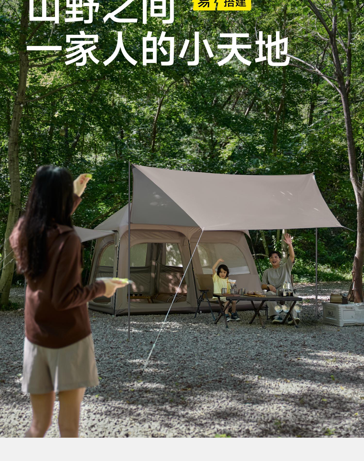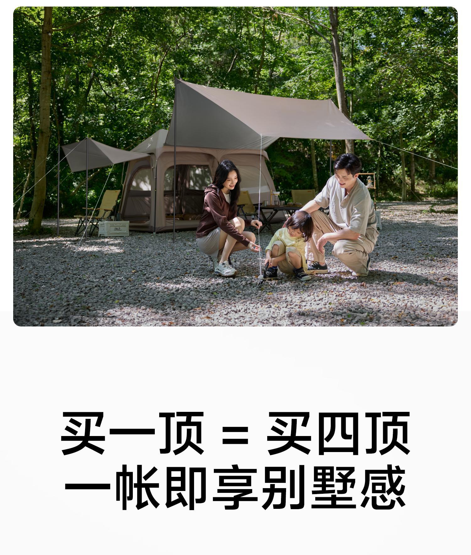 晴居7.0两室一厅天幕全自动帐篷户外露营防雨钛银防晒野营装备