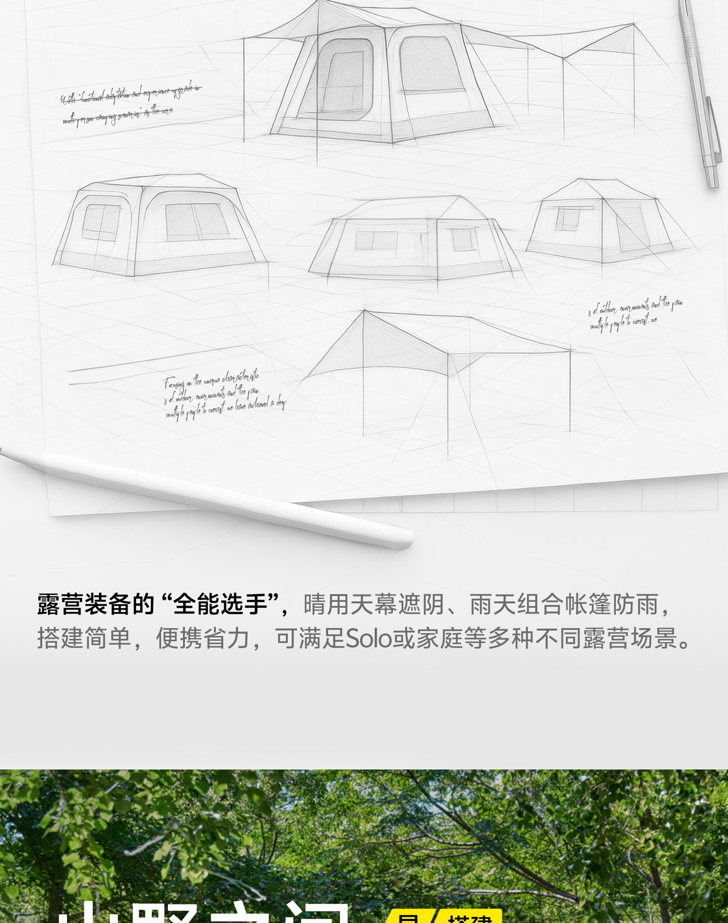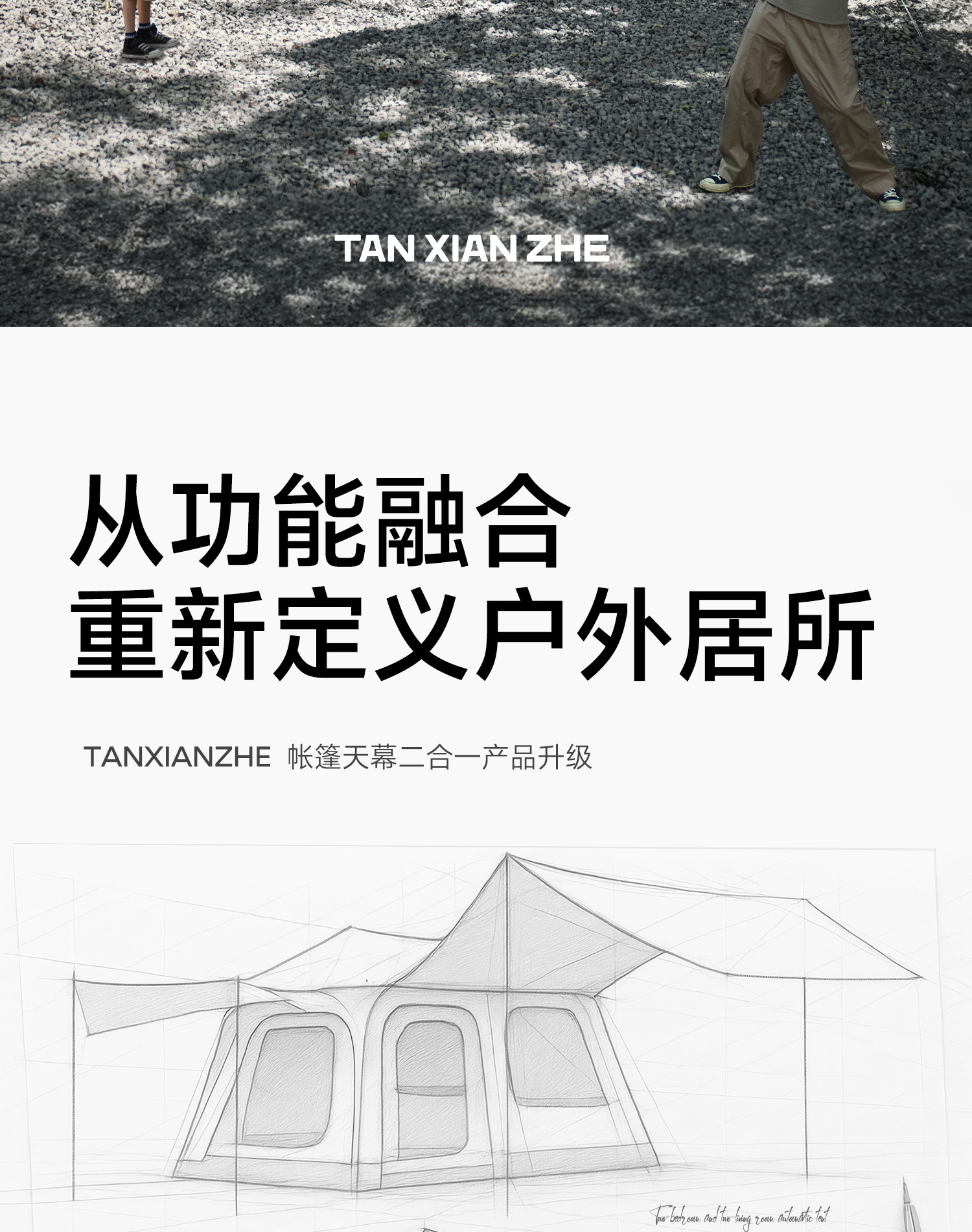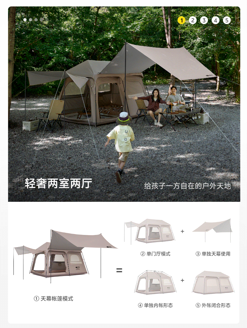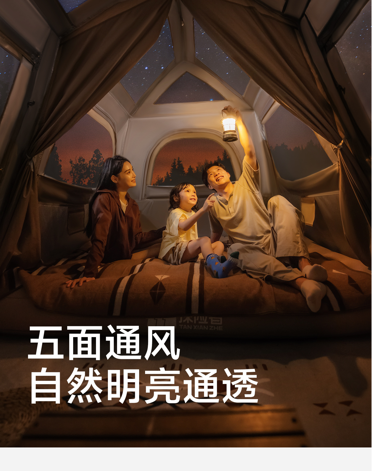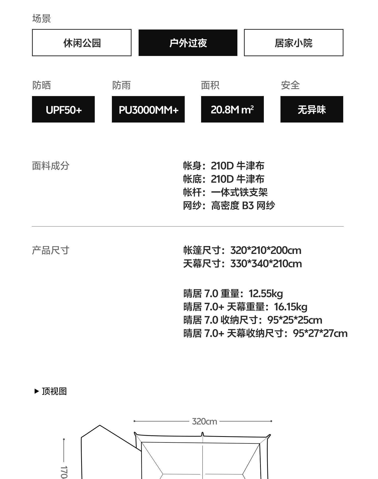 晴居7.0两室一厅天幕全自动帐篷户外露营防雨钛银防晒野营装备