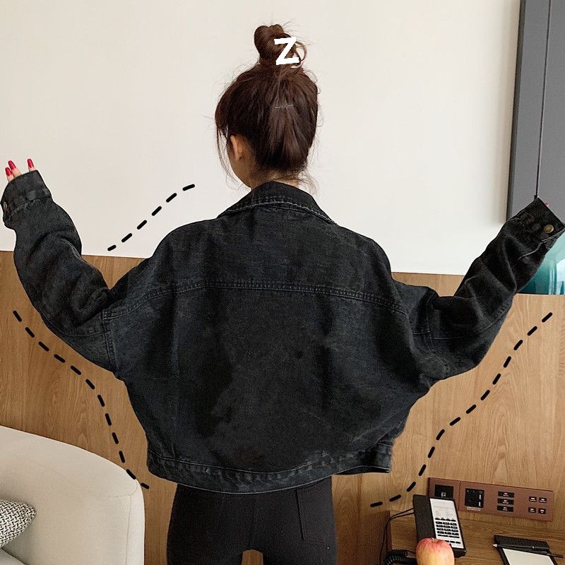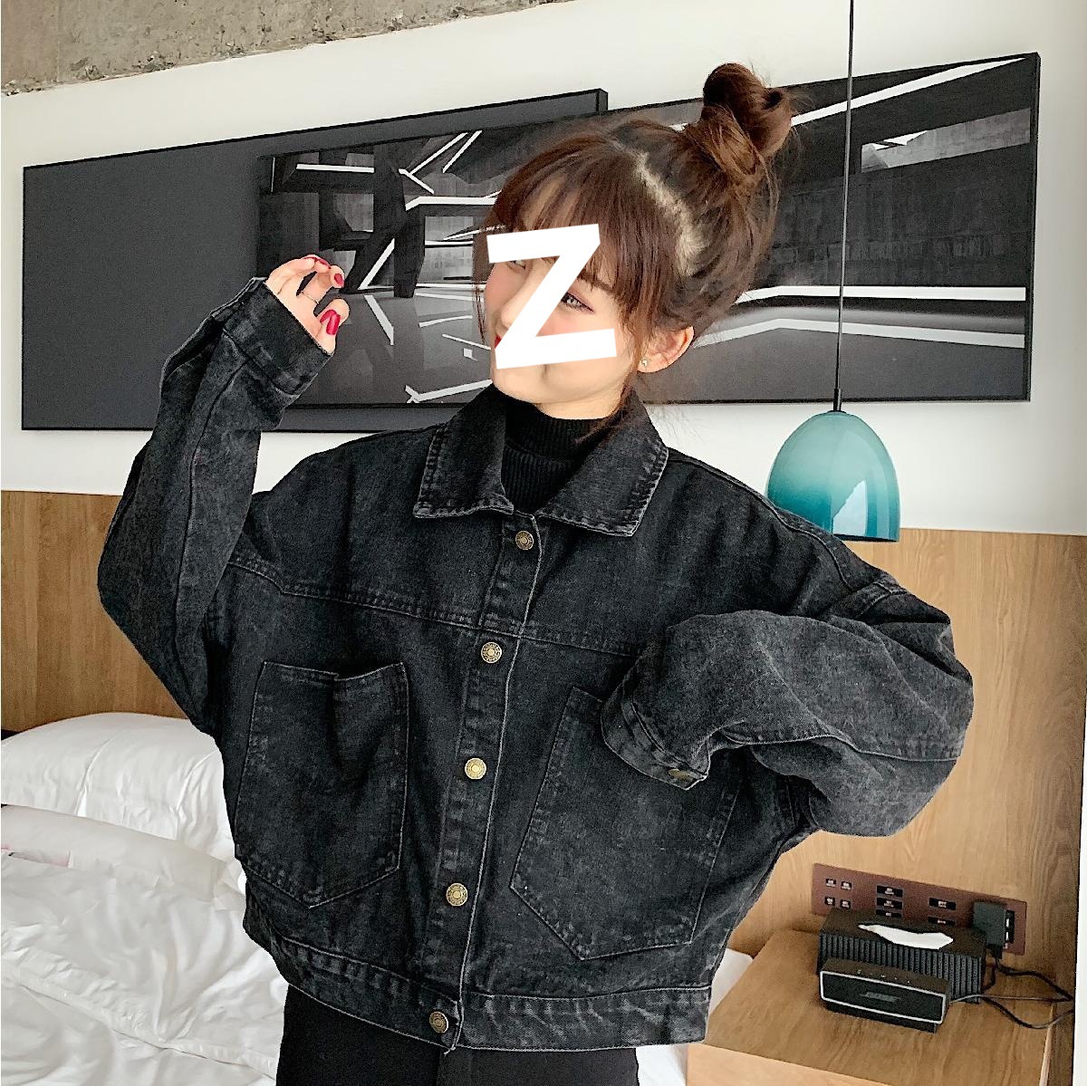 黑色春秋季新款韩版宽松牛仔外套女 短款女士春秋百搭上衣ins潮女