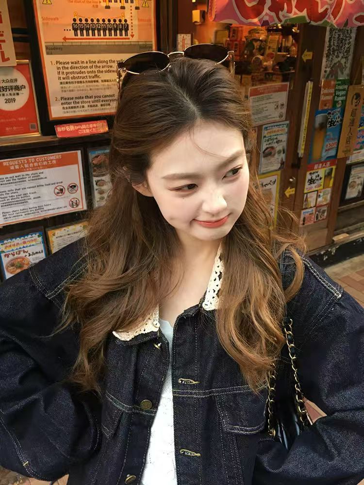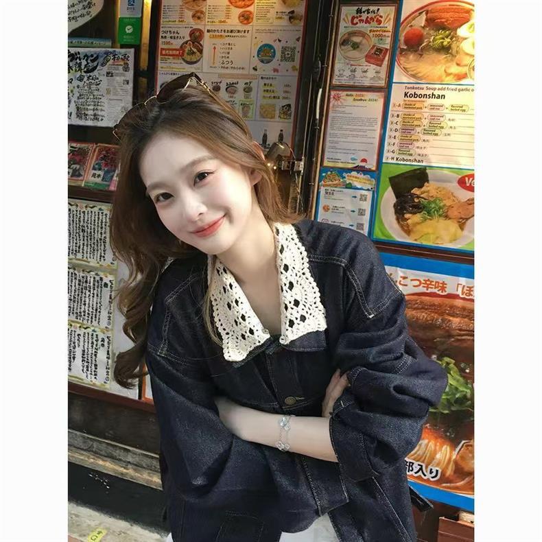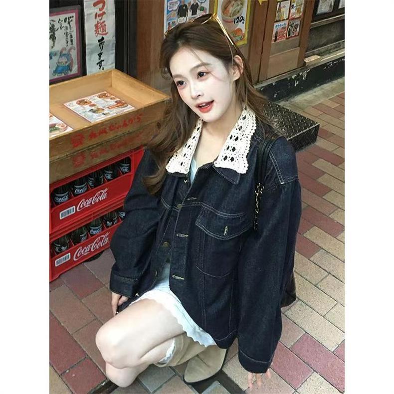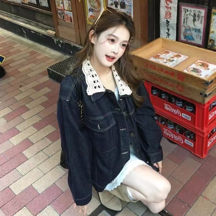 韩系复古蕾丝拼接牛仔外套女2025春秋季新款宽松百搭休闲夹克上衣