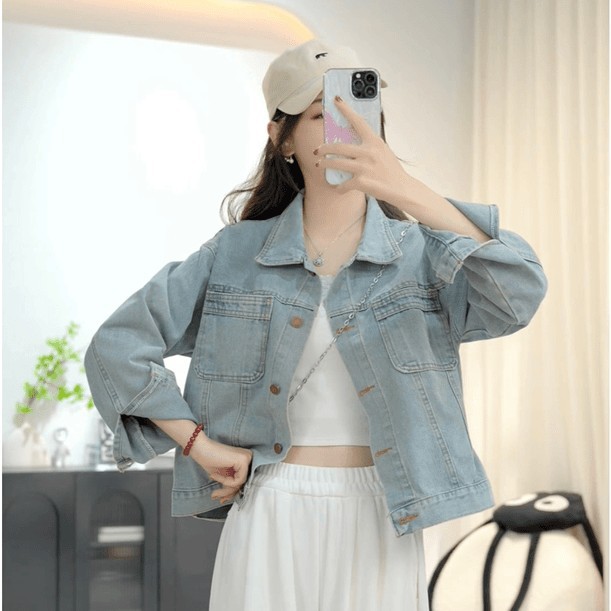 网红ins欧式水洗棉复古牛仔外套女春秋新款韩版宽松短款长袖衬衫