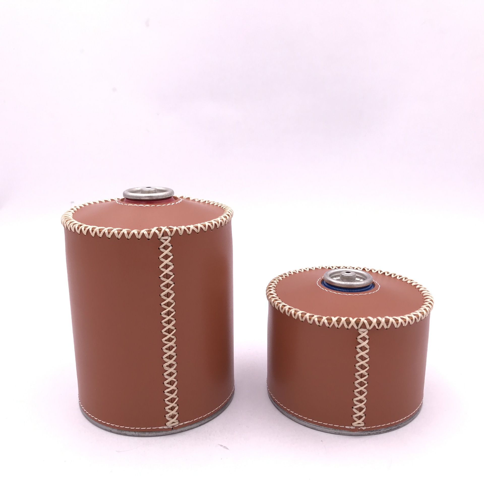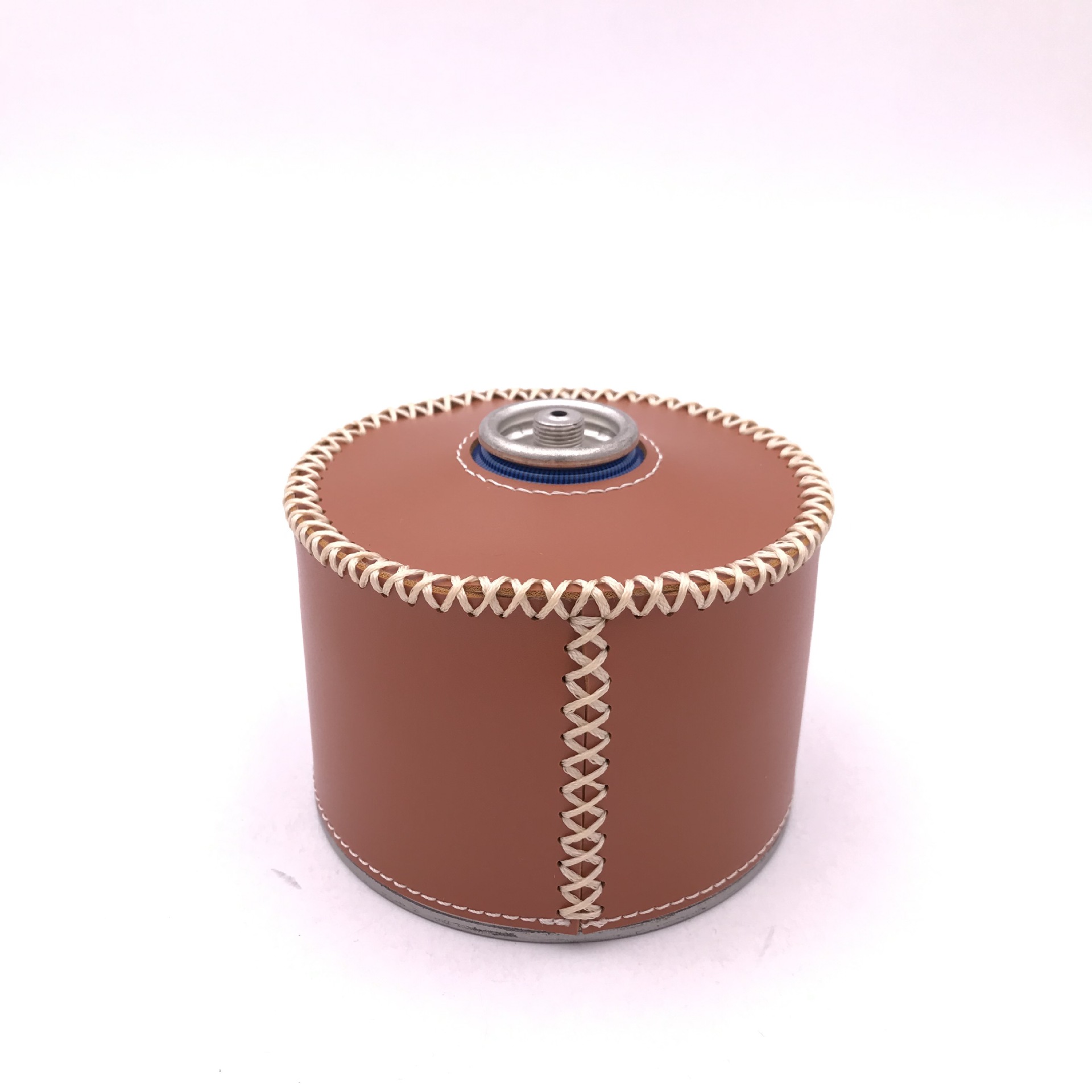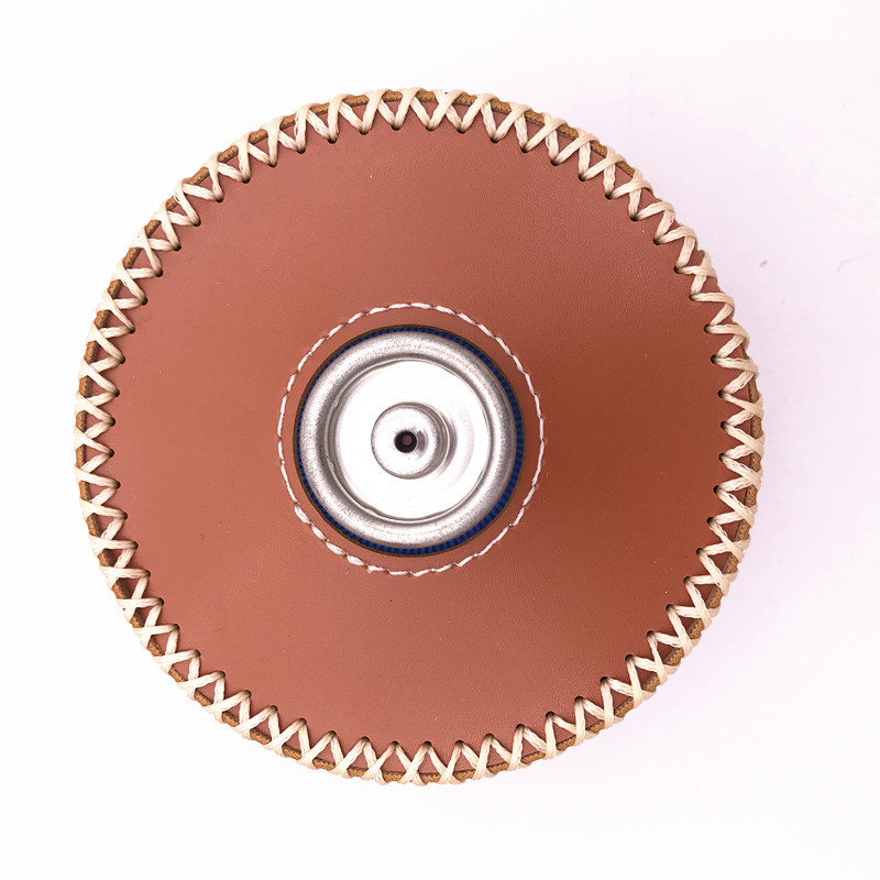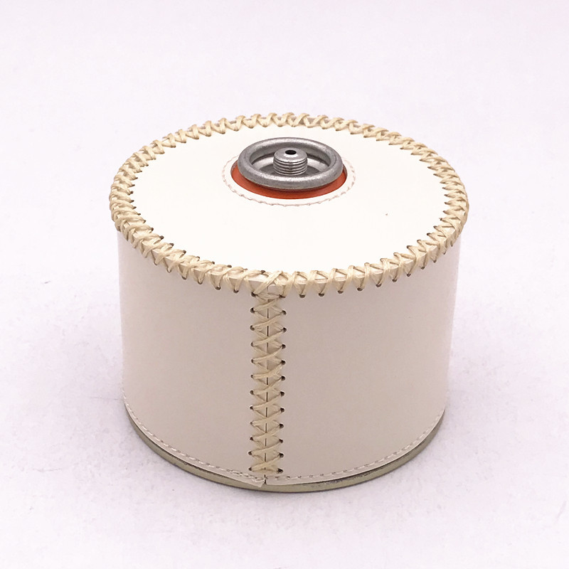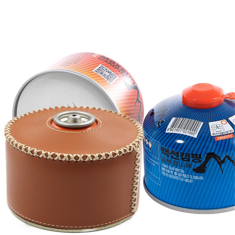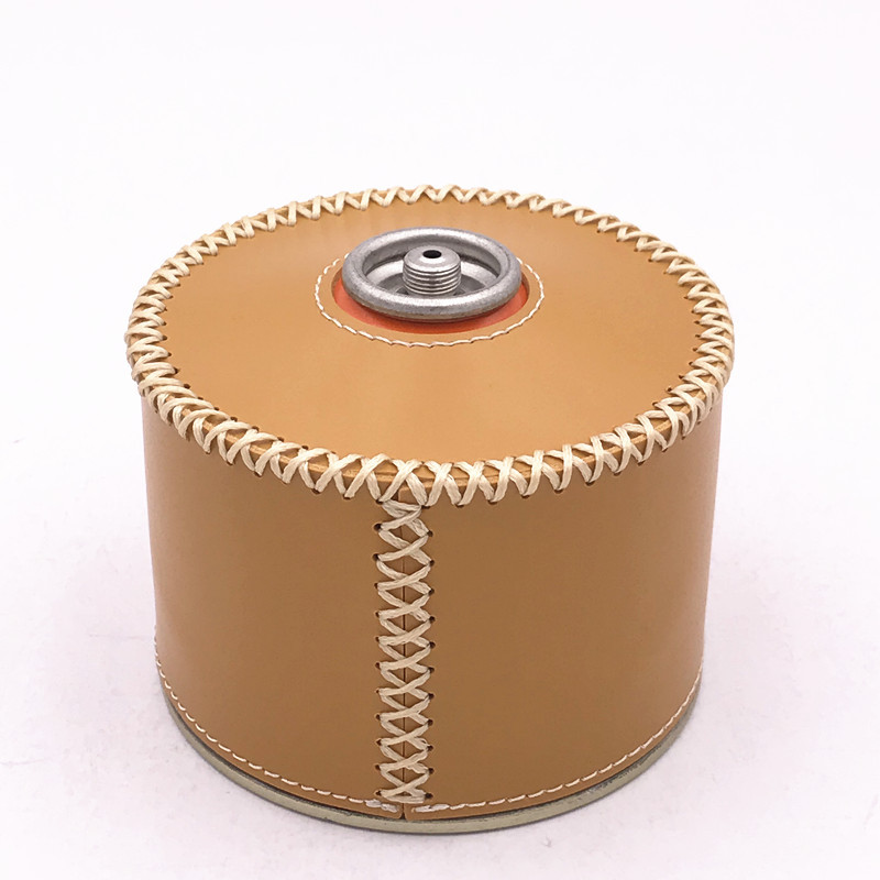 现货户外露营230g煤气罐皮套 复古蜡绳手缝PU皮革瓦斯罐保护套