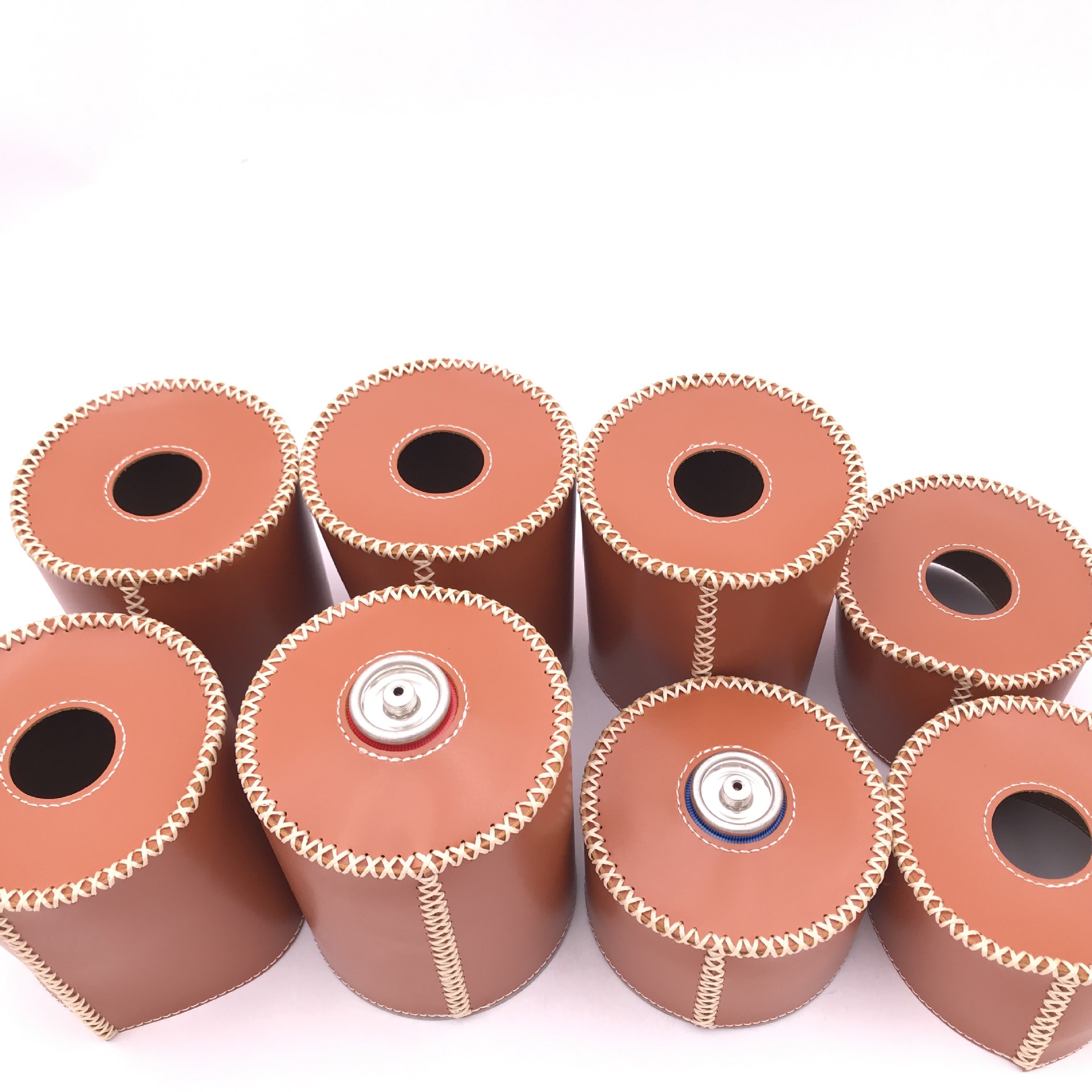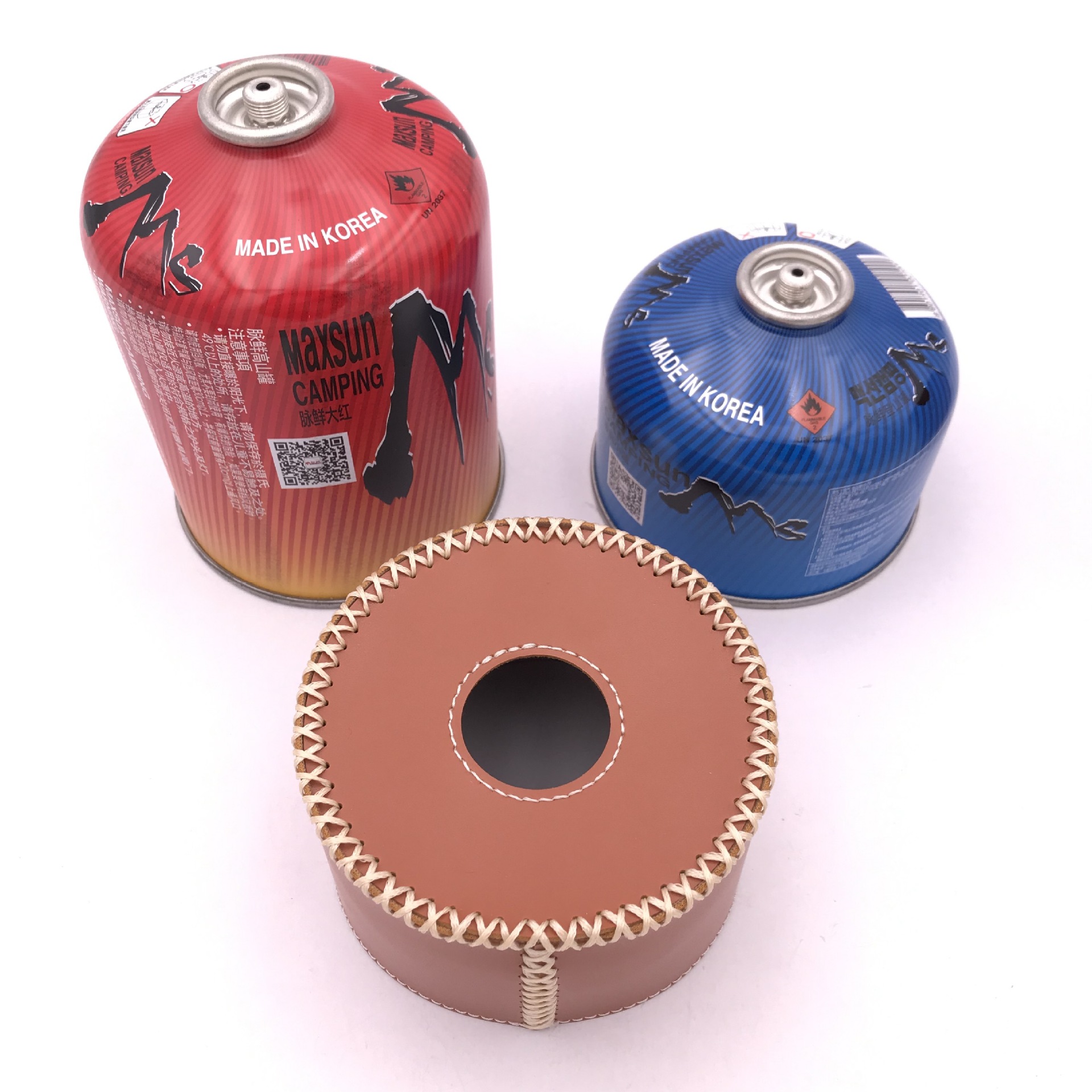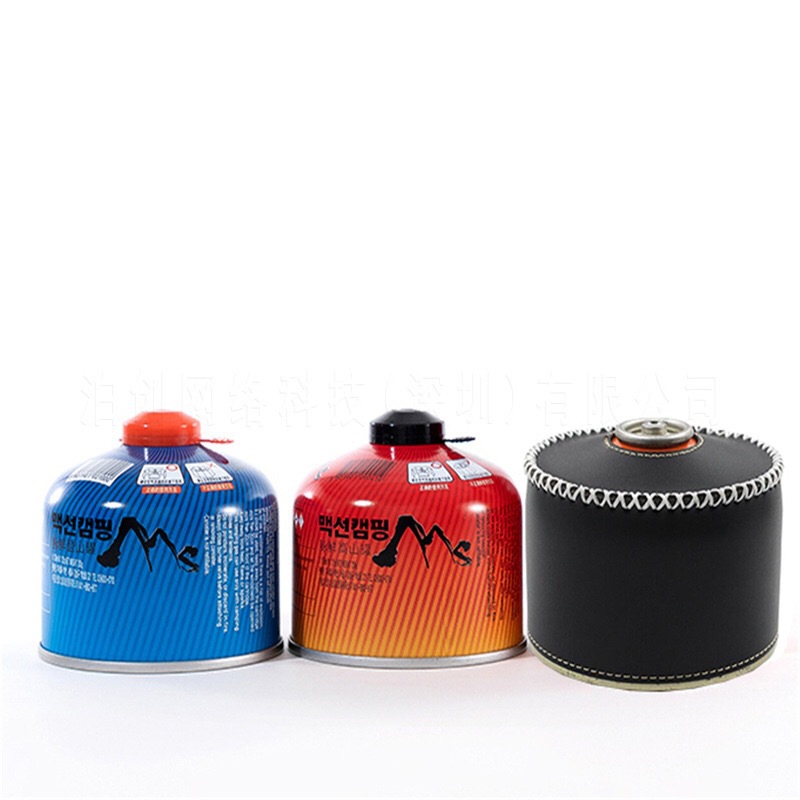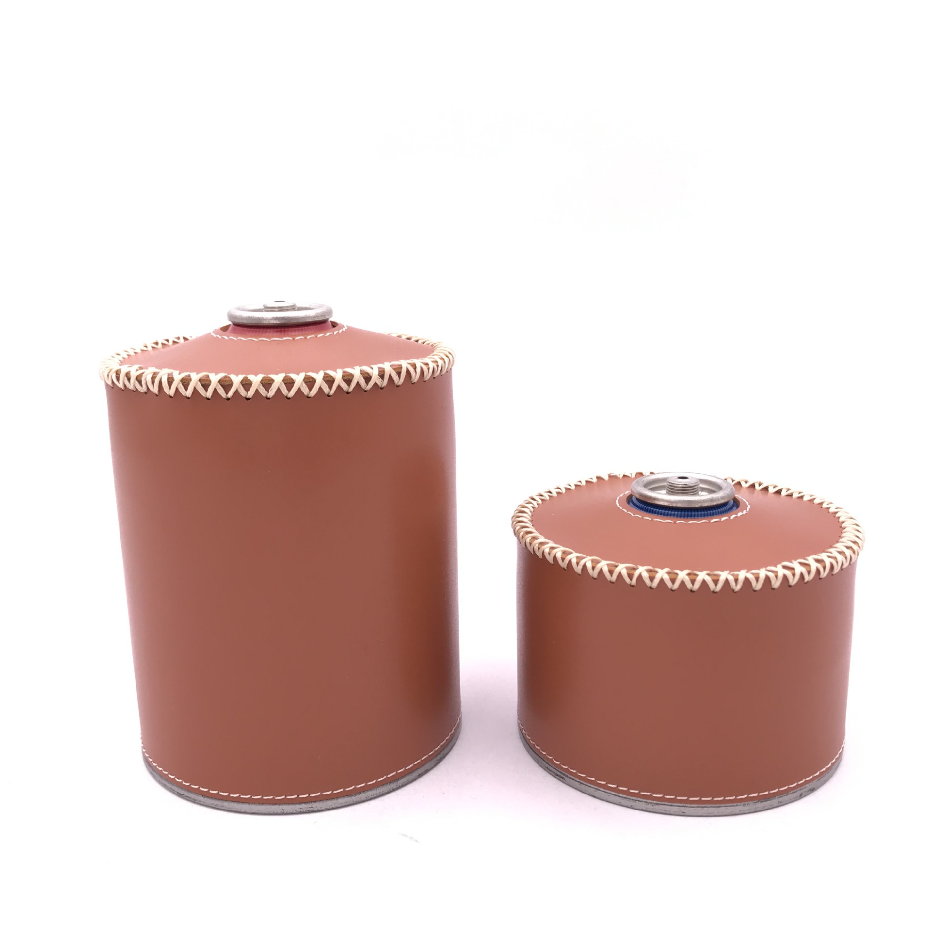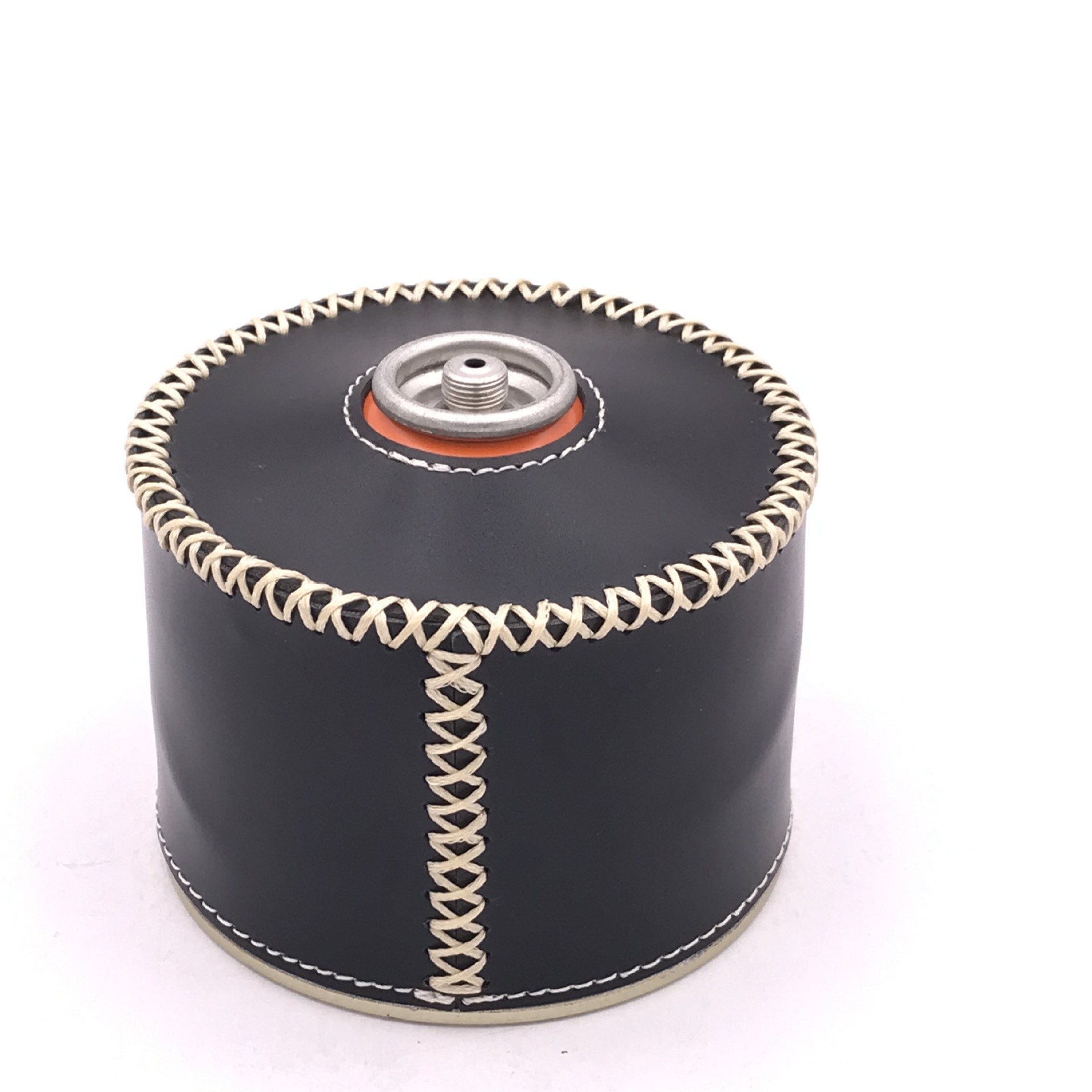 现货户外露营230g煤气罐皮套 复古蜡绳手缝PU皮革瓦斯罐保护套