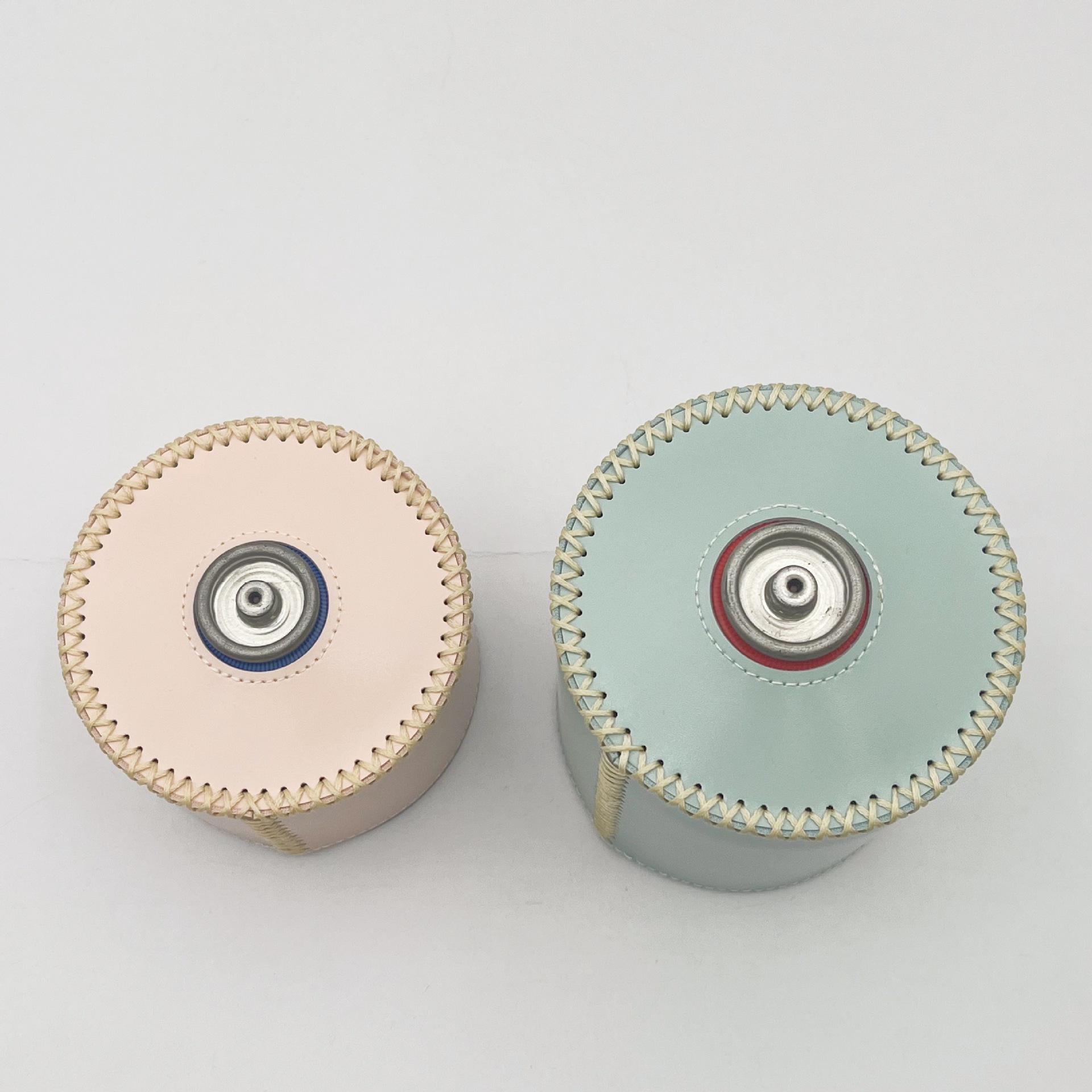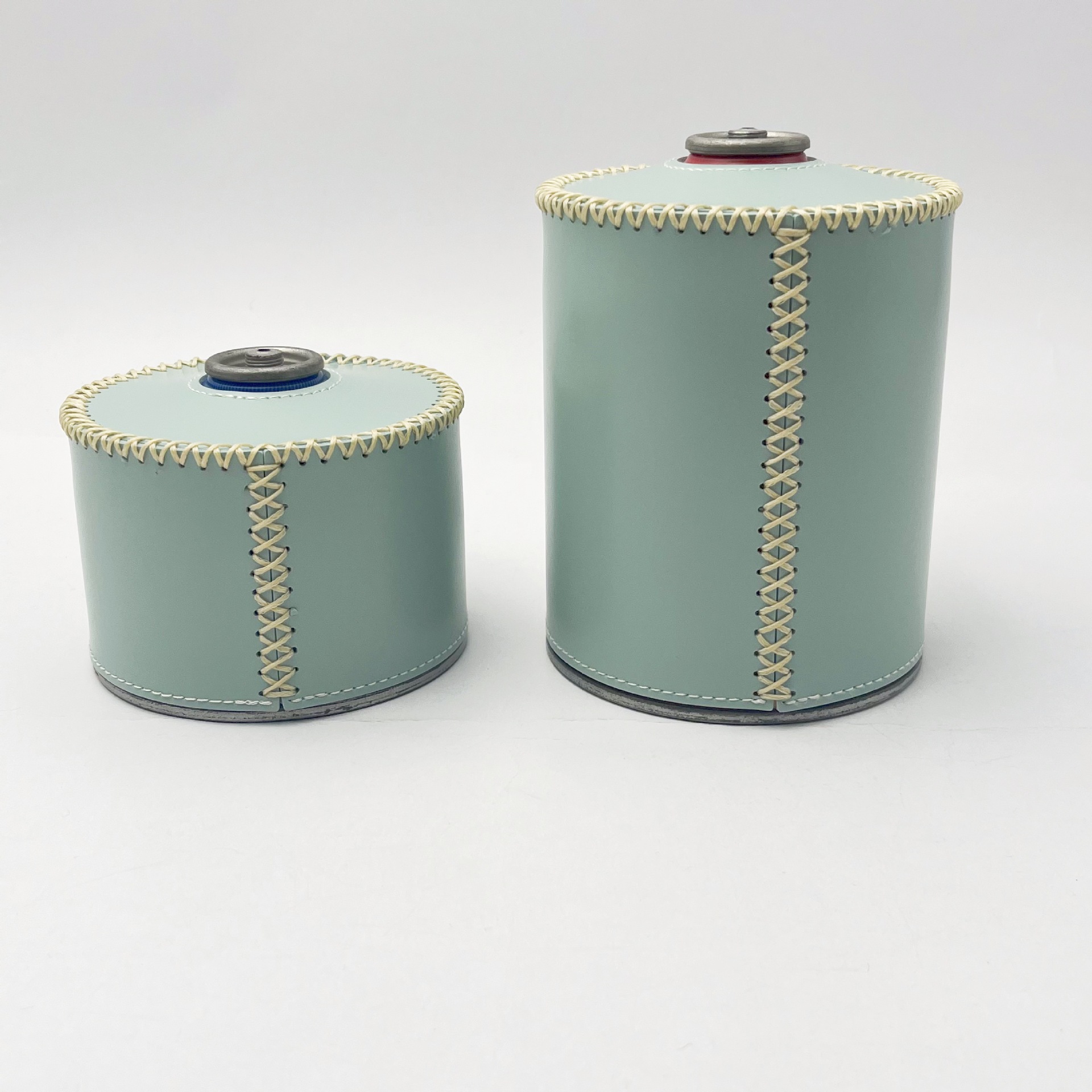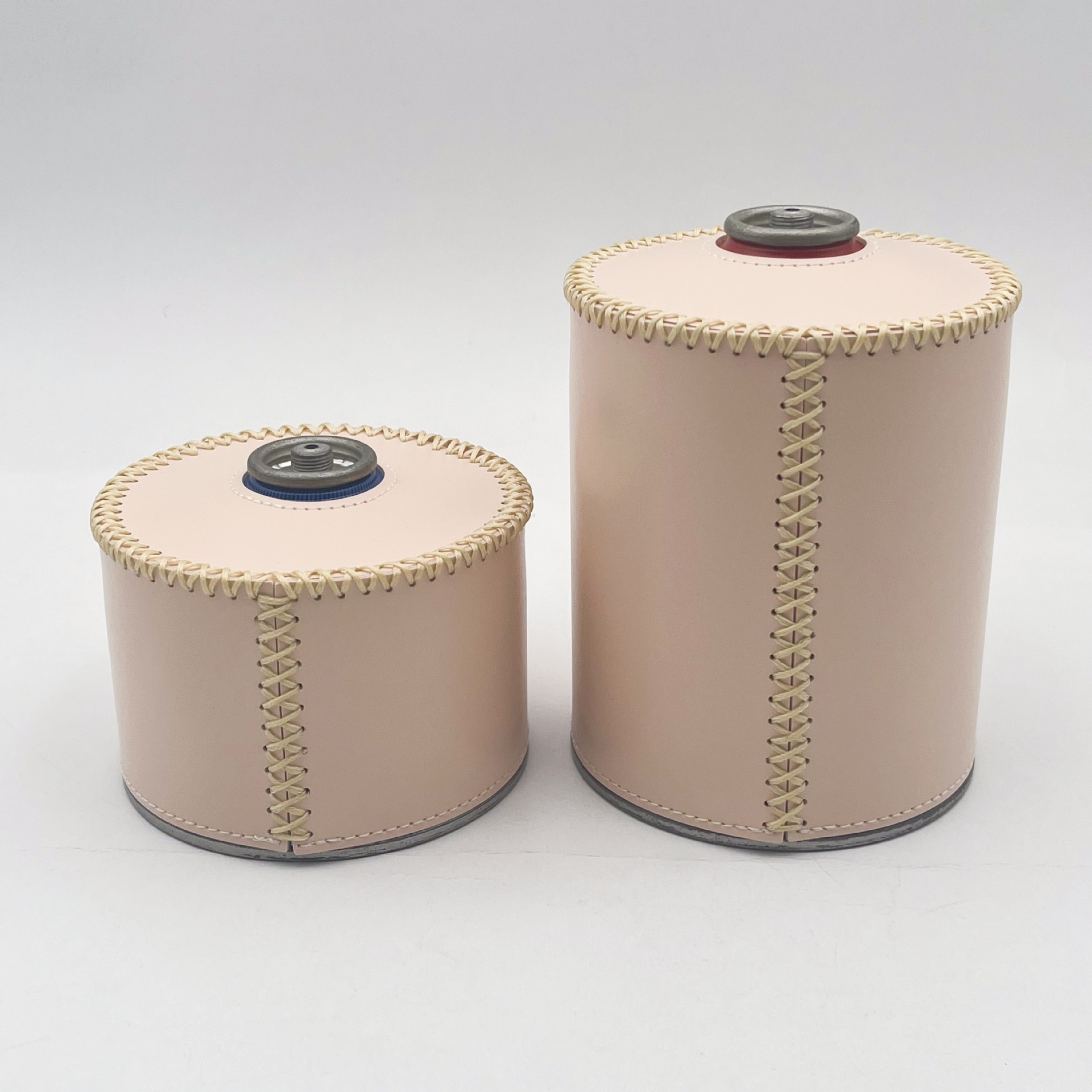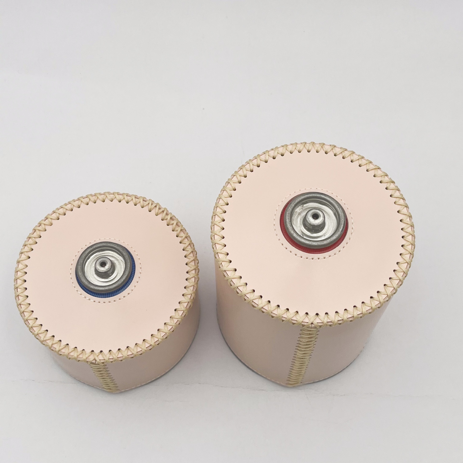 现货户外露营230g煤气罐皮套 复古蜡绳手缝PU皮革瓦斯罐保护套