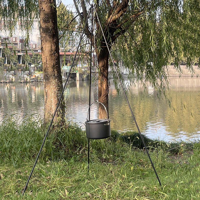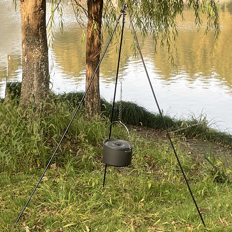 户外野营吊锅三脚架 便携式焚火炉篝火架 野炊吊锅烧烤折叠三脚架