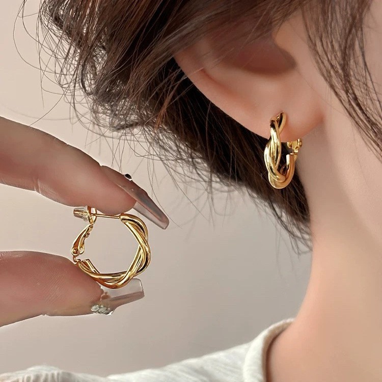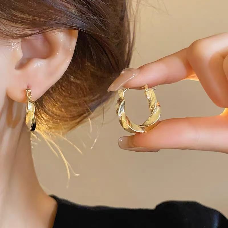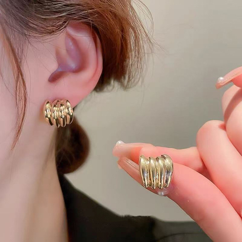 S925银针秋冬港风复古金属耳环女高级感气质耳钉小众设计耳饰批复