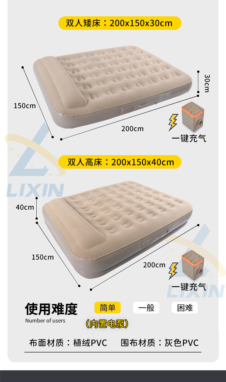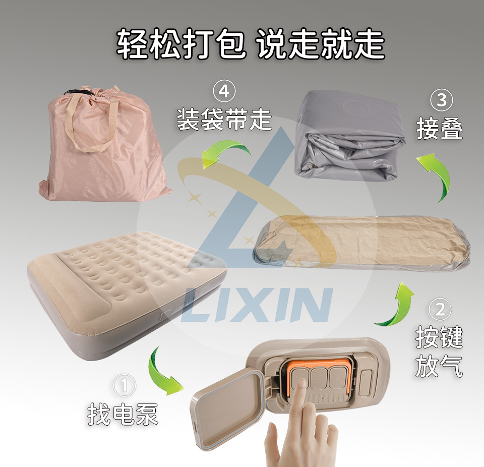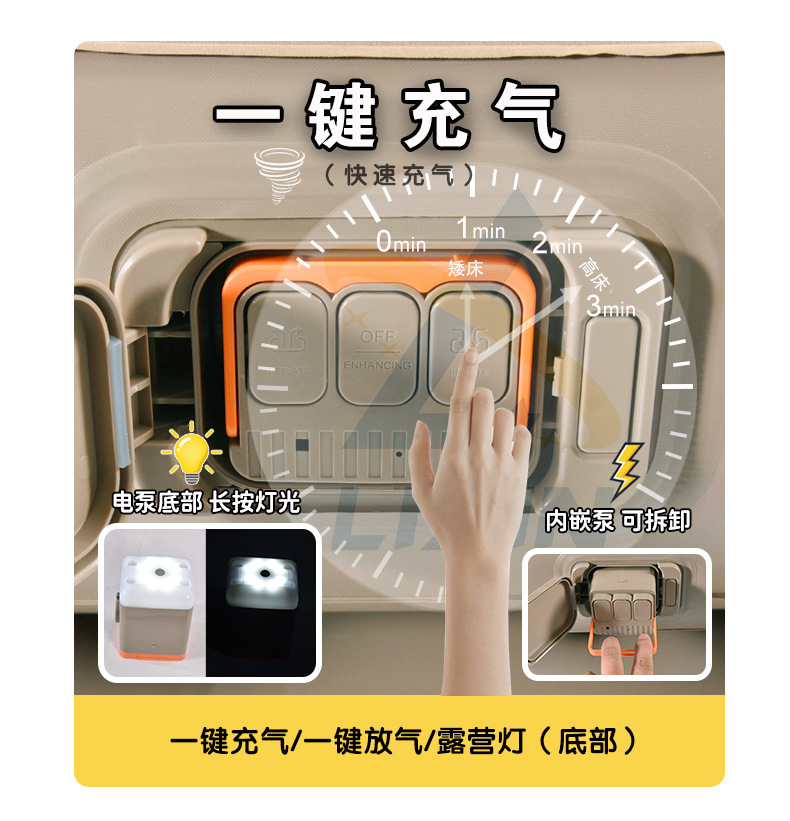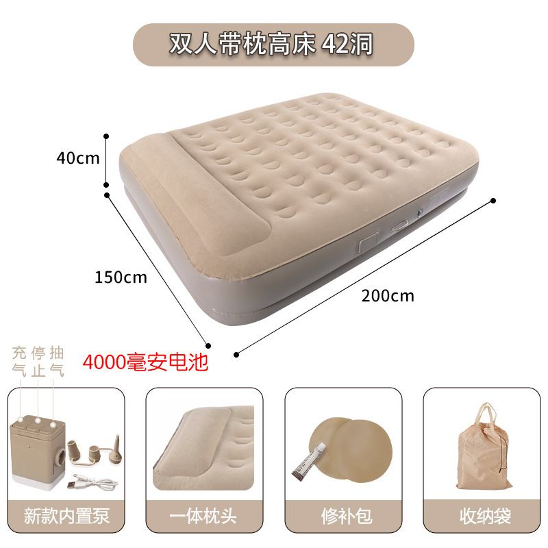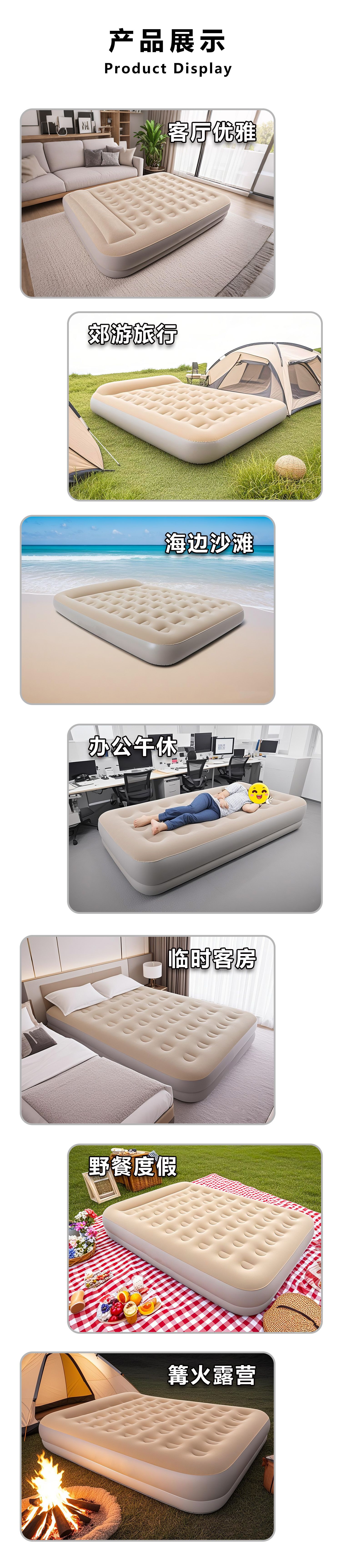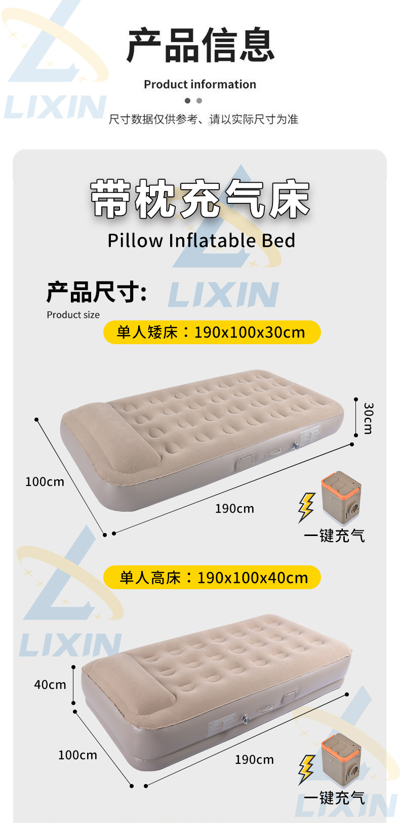 新款单人双人自动充气床垫带头枕野外折叠床沙滩露营床自懒人用品