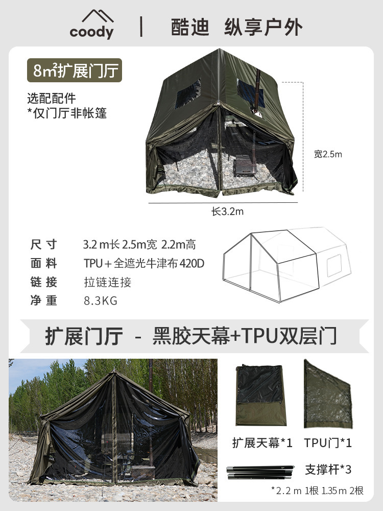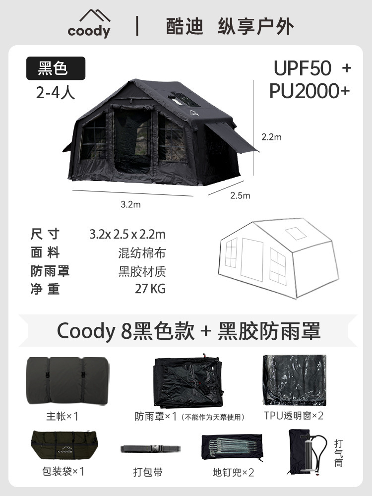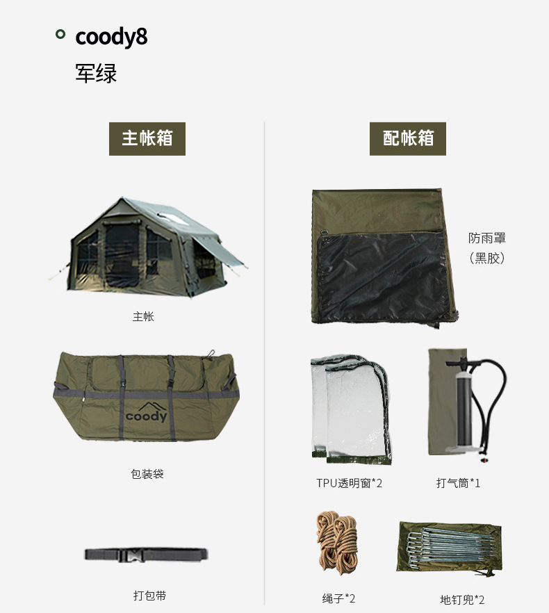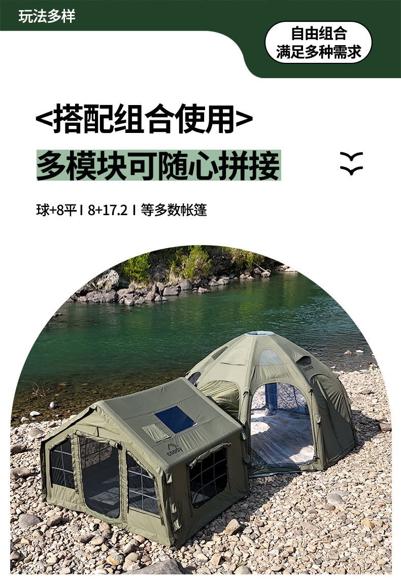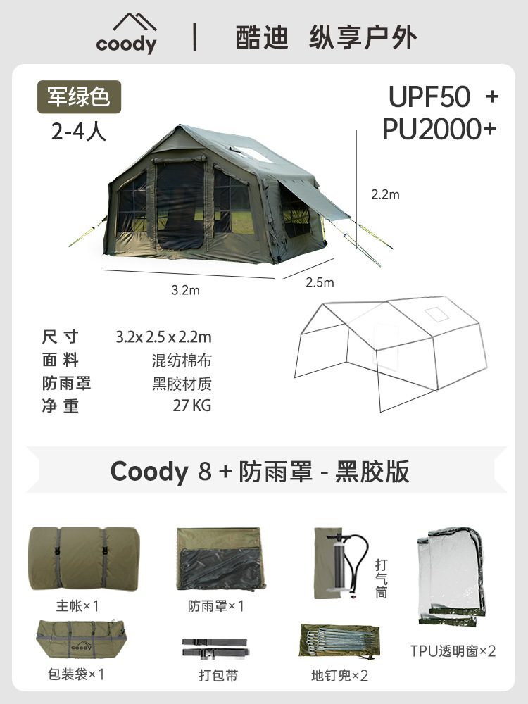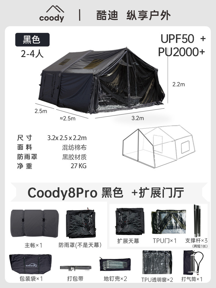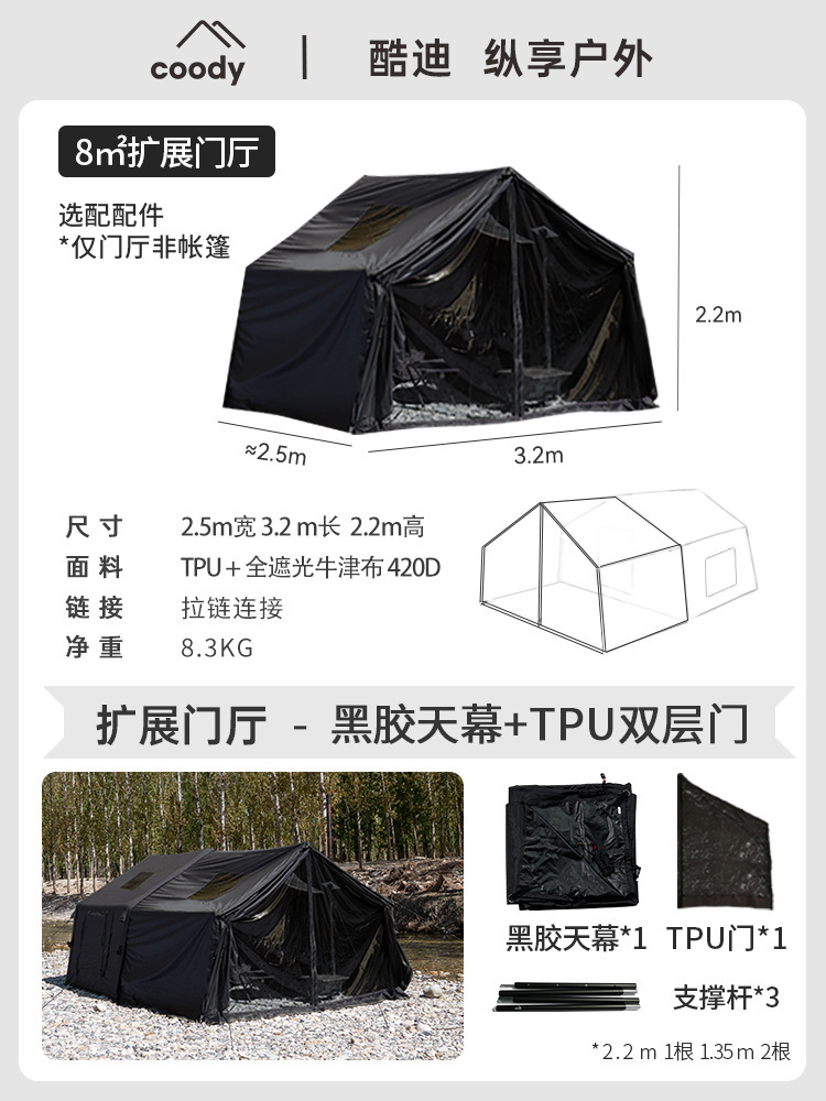 军鑫coody8充气帐篷带拓展门厅源头工厂冬季户外露营自驾过夜帐篷