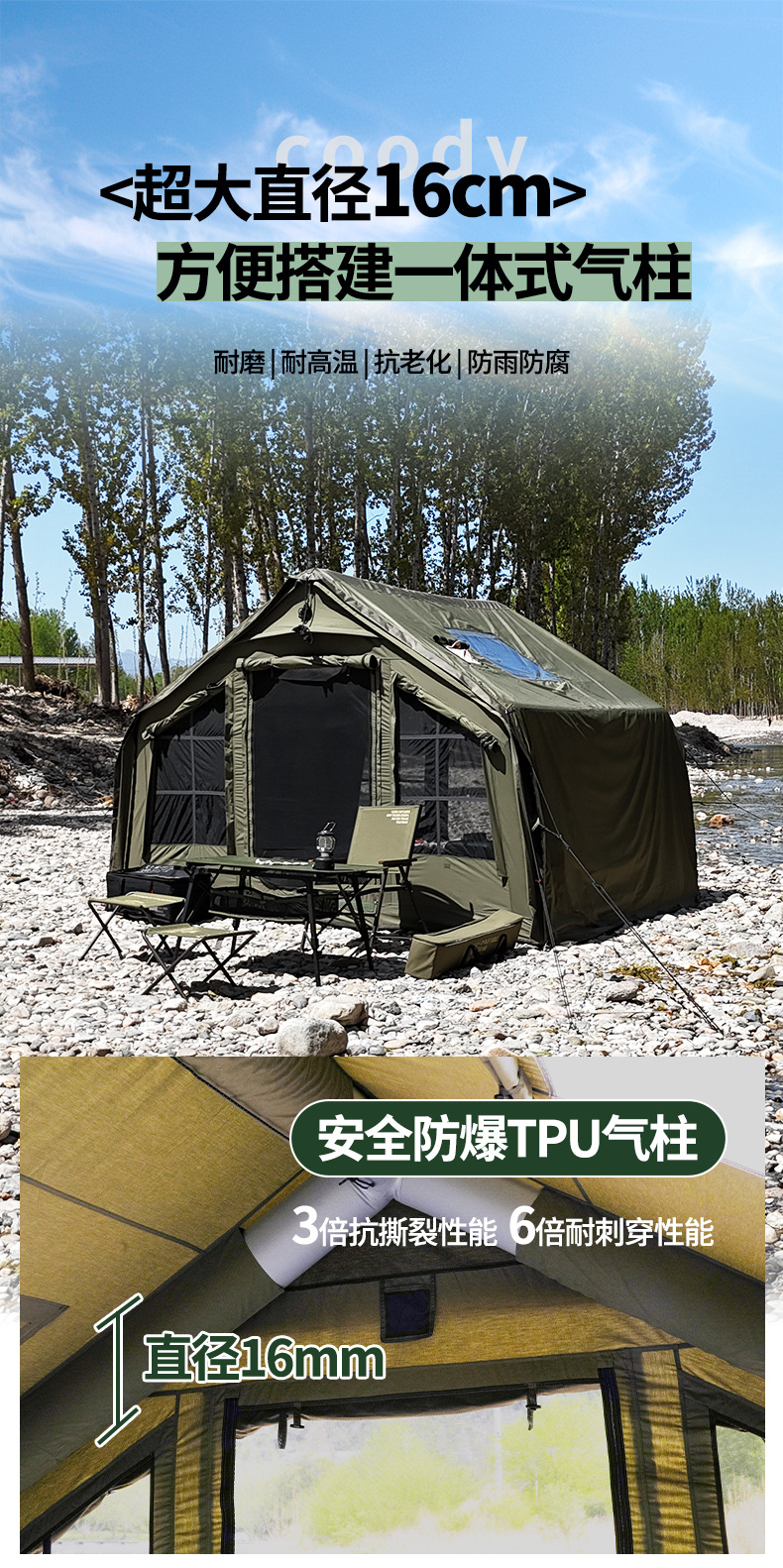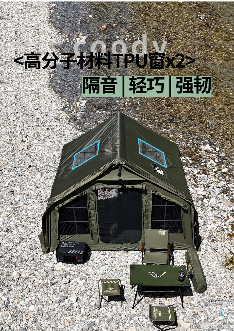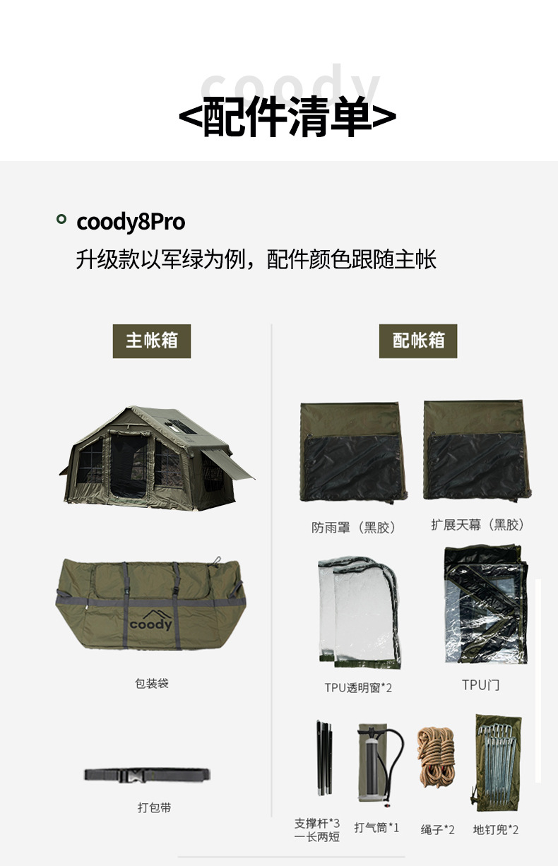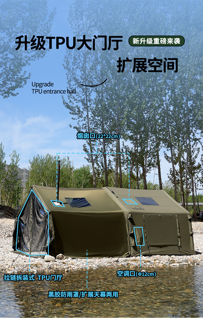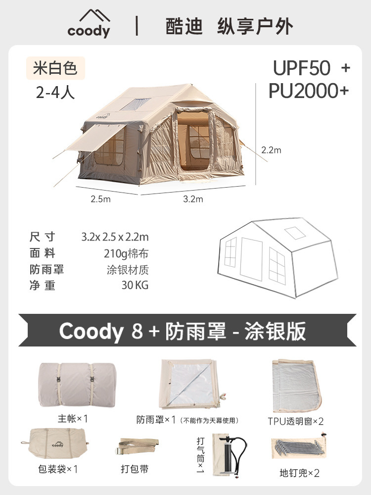 军鑫coody8充气帐篷带拓展门厅源头工厂冬季户外露营自驾过夜帐篷