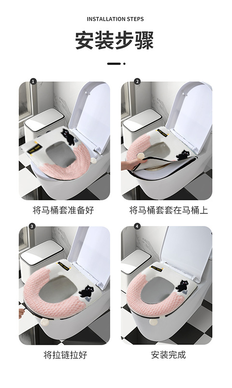 家用马桶垫厕所坐垫四季可用毛绒加厚拉链保暖秋冬马桶座圈坐便垫