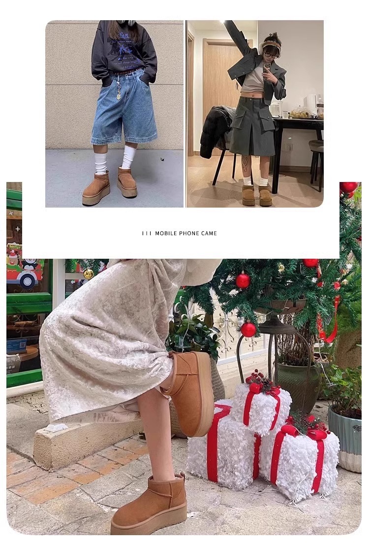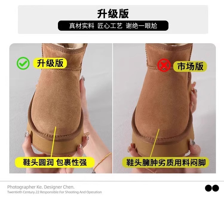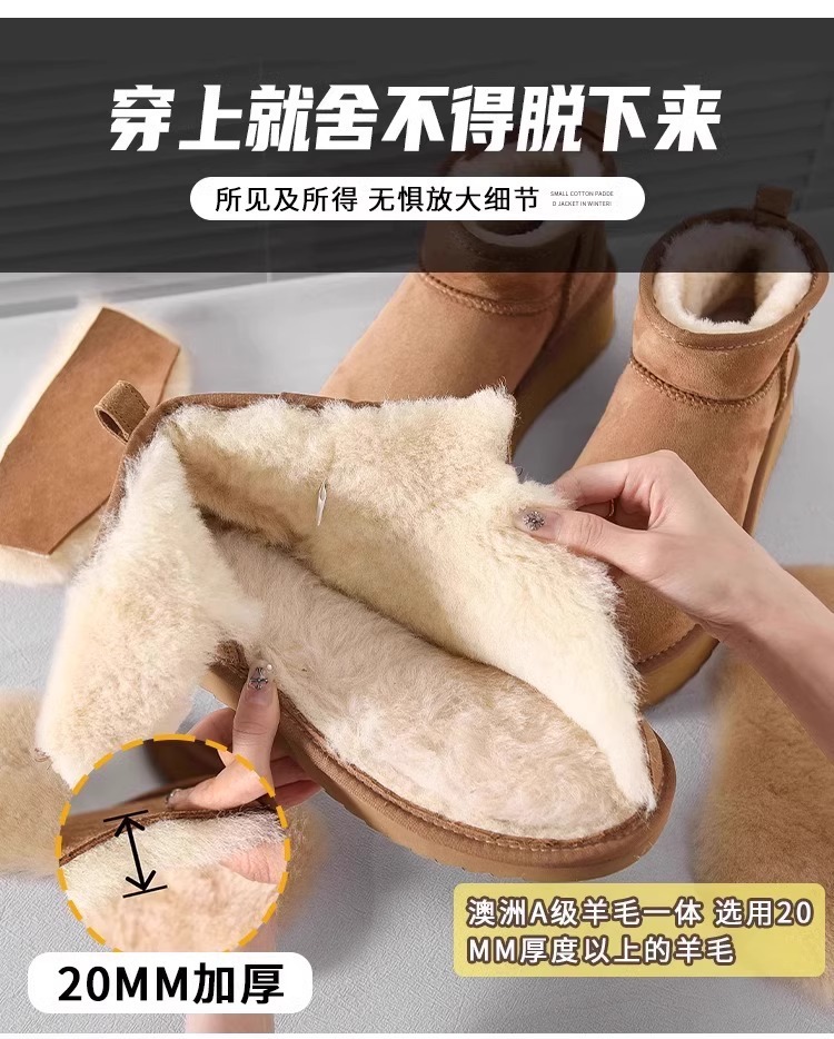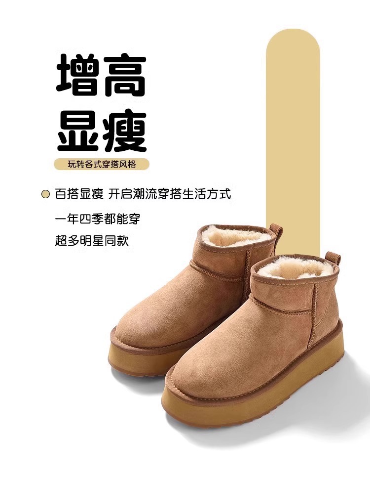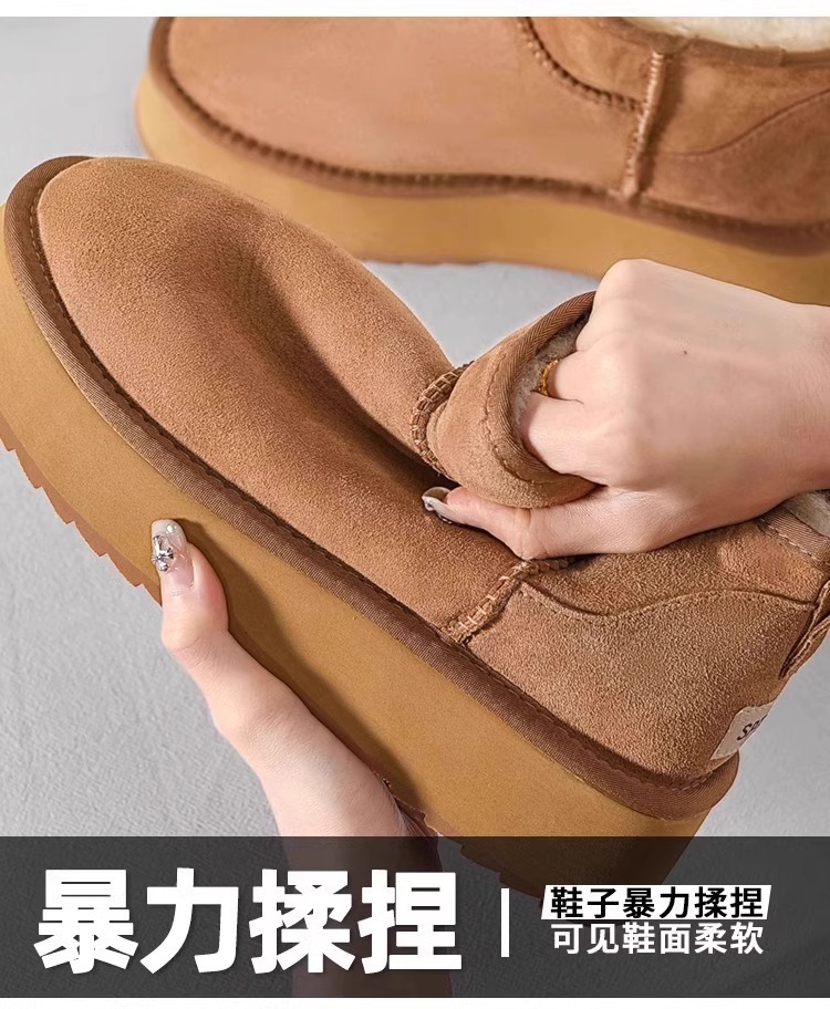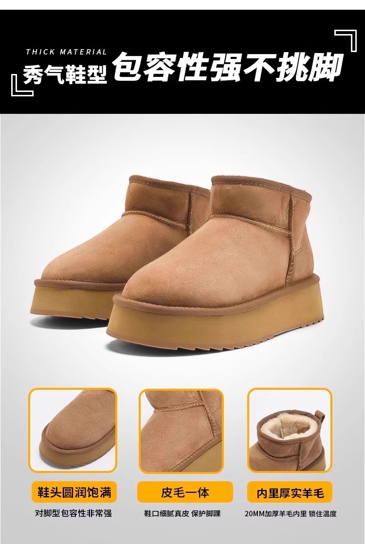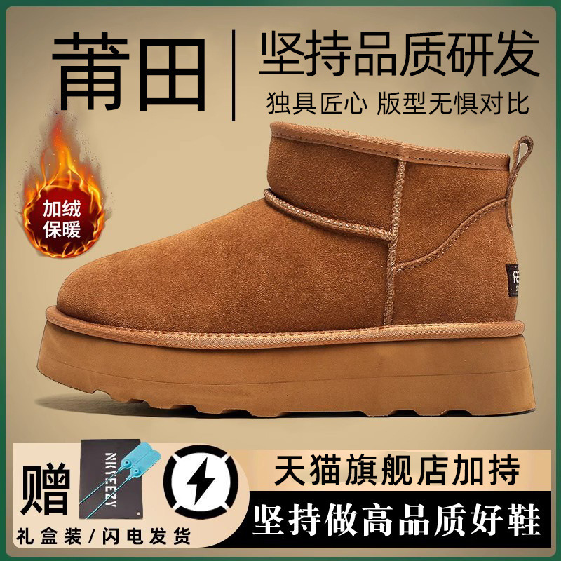桑坡村真皮雪地靴25新款冬季加绒加厚底皮毛一体男女户外保暖棉鞋