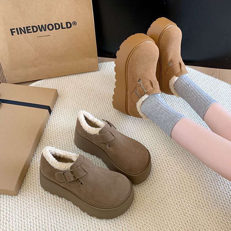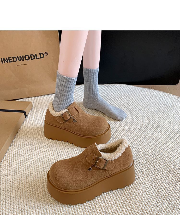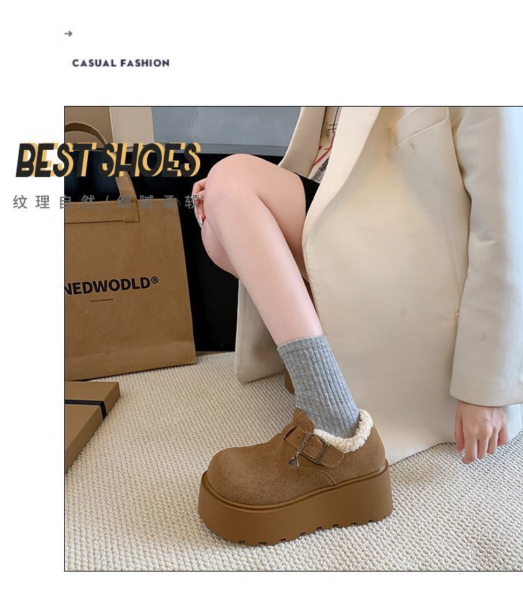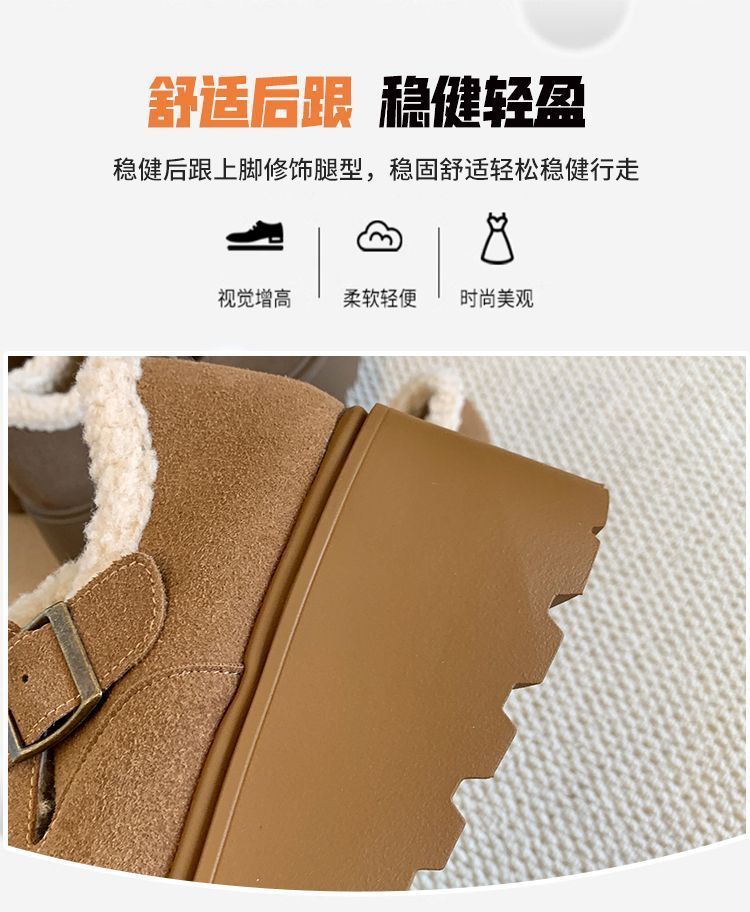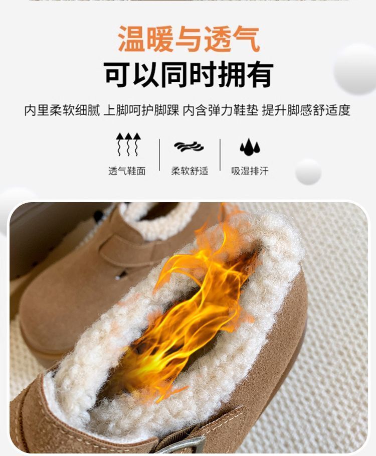 加绒松糕增高一脚蹬大头丑萌勃肯棉鞋女冬新款厚底保暖雪地靴