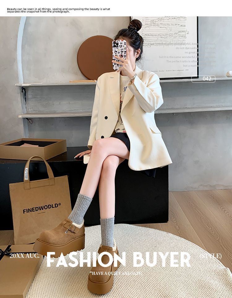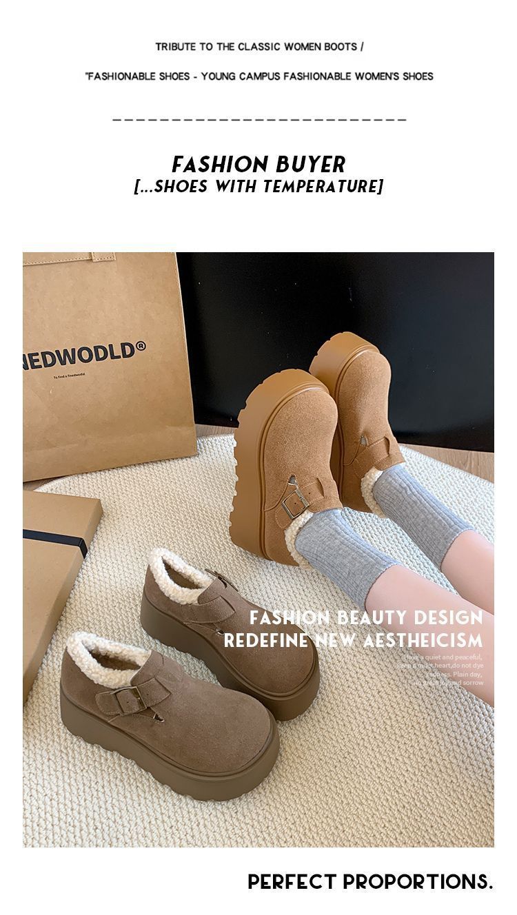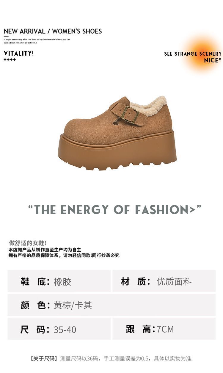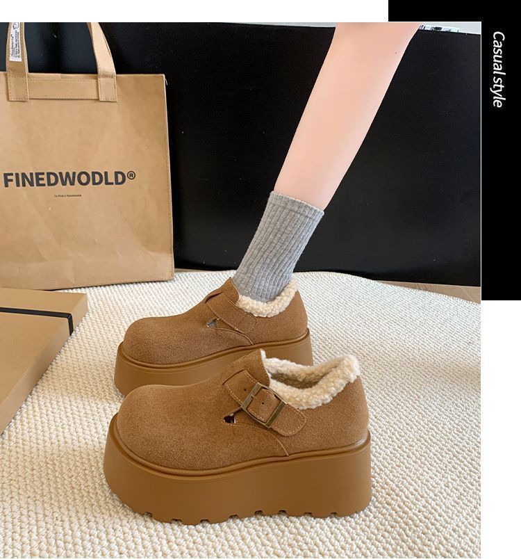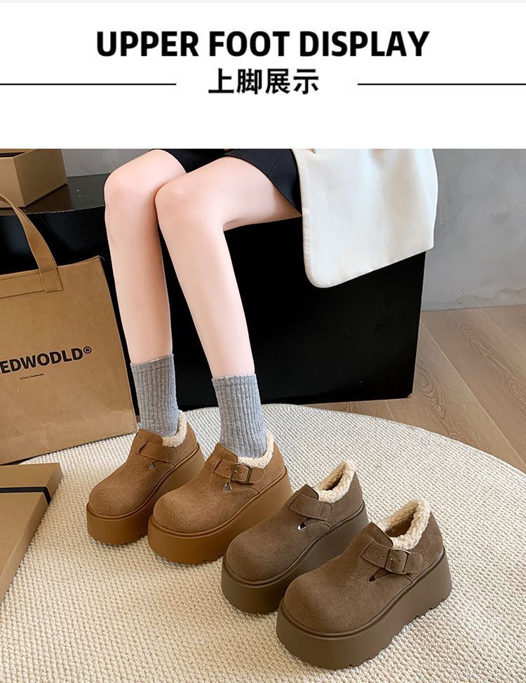 加绒松糕增高一脚蹬大头丑萌勃肯棉鞋女冬新款厚底保暖雪地靴