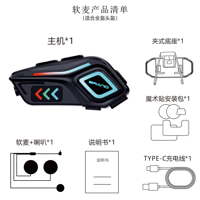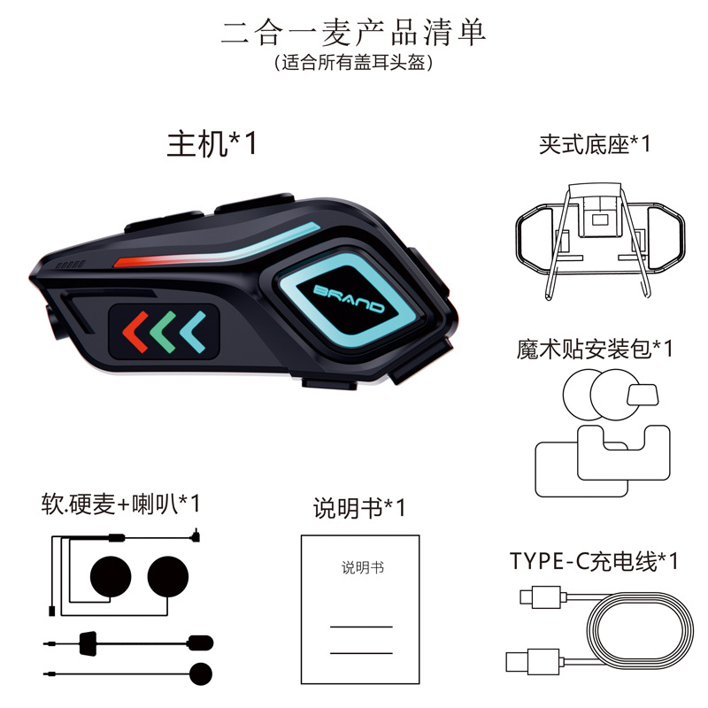 跨境摩托车头盔蓝牙对讲耳机骑行听歌防水长续航高清音质无线耳机