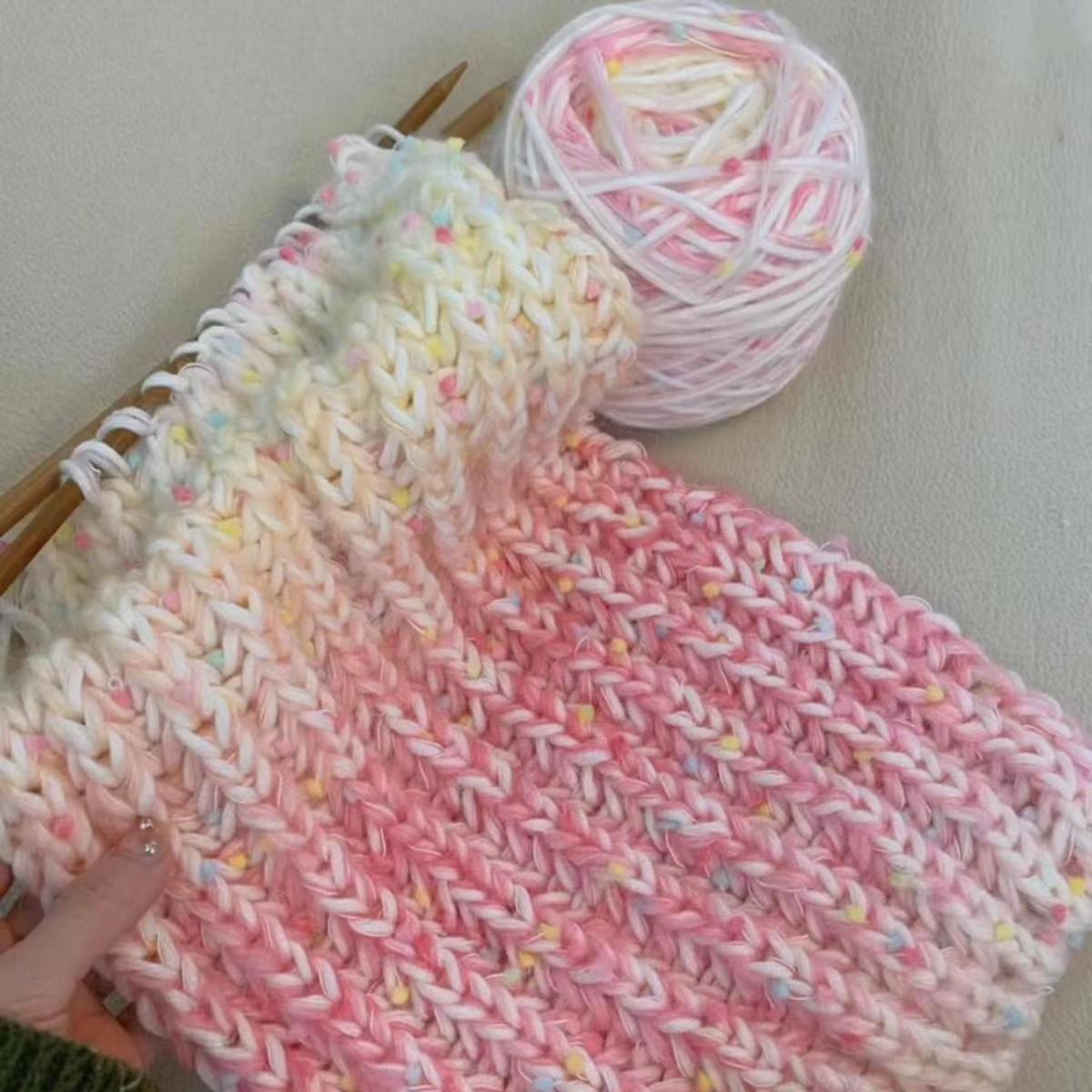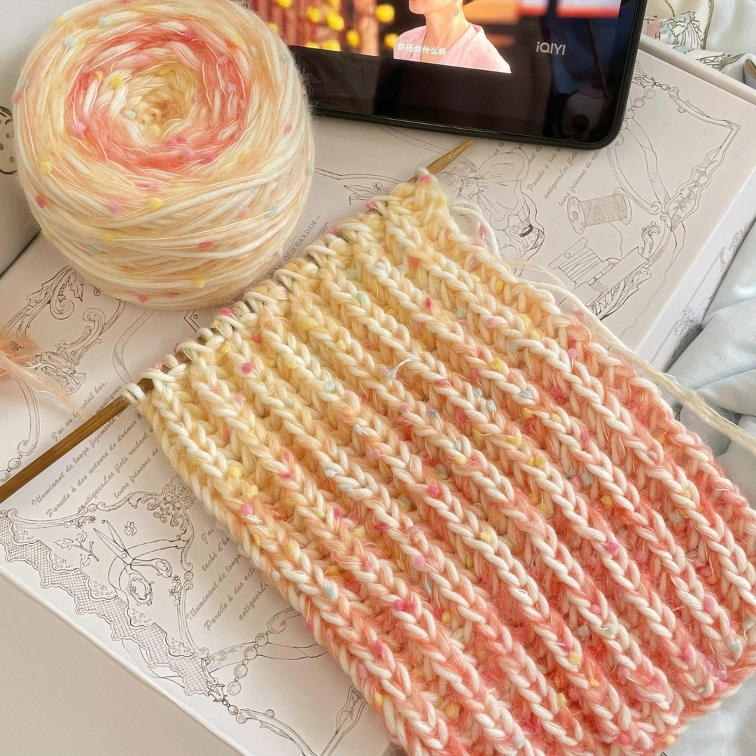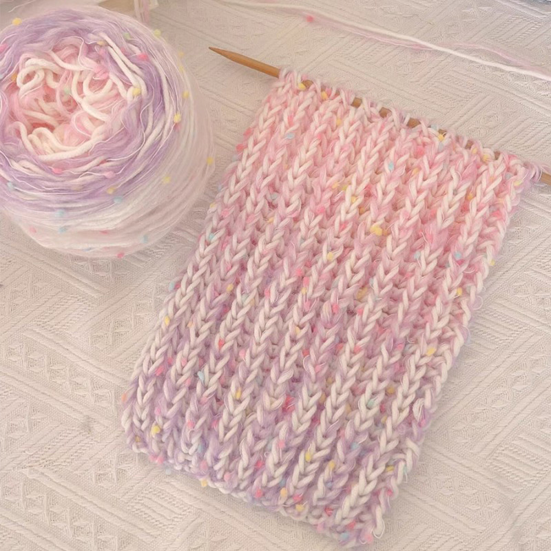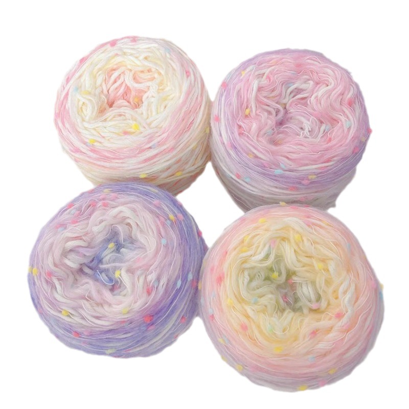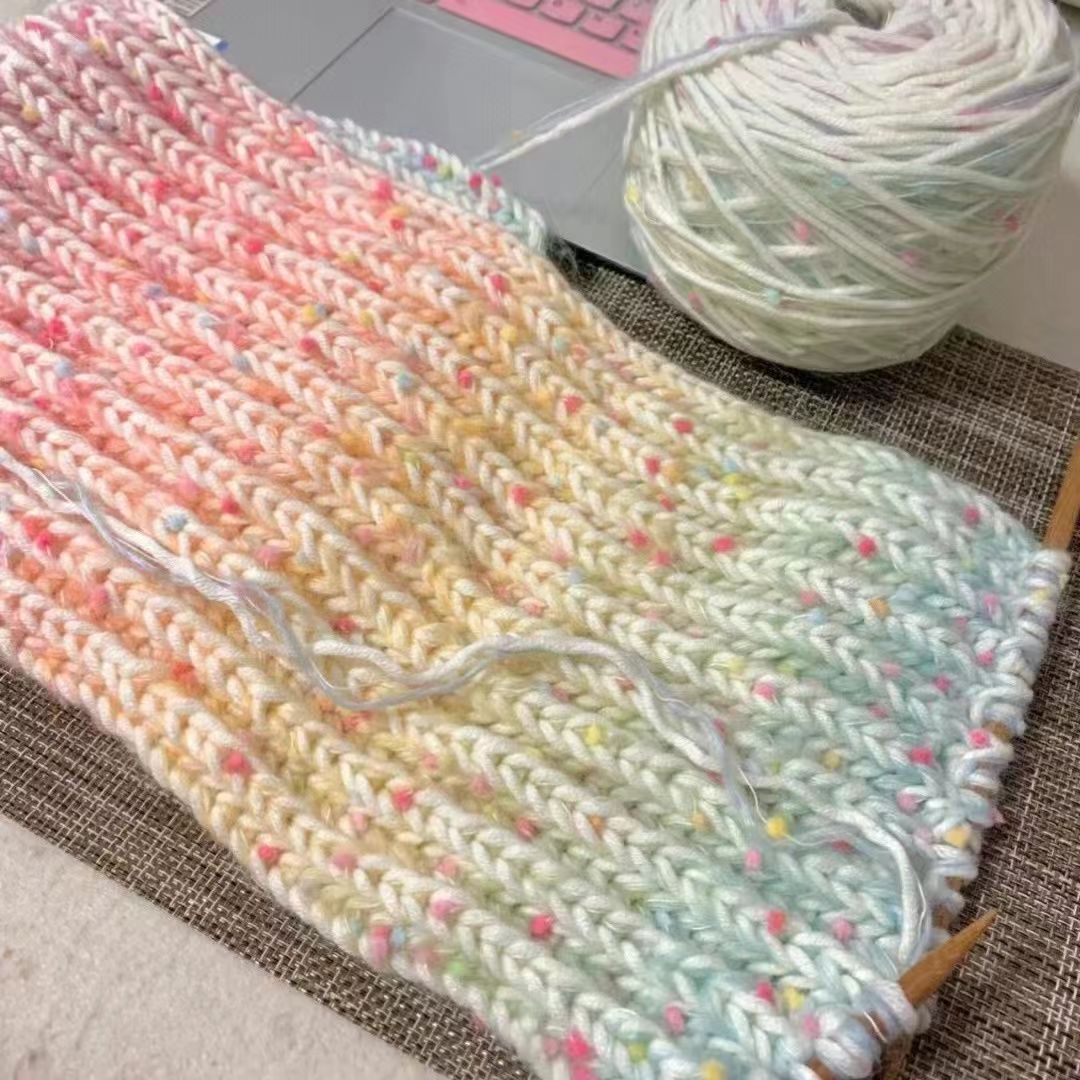 批发2024渐变彩虹围巾线毛线马海毛豆豆线彩点DIY材料包新款