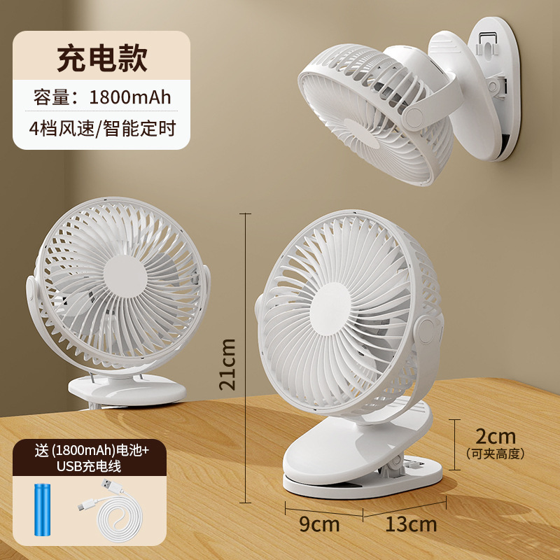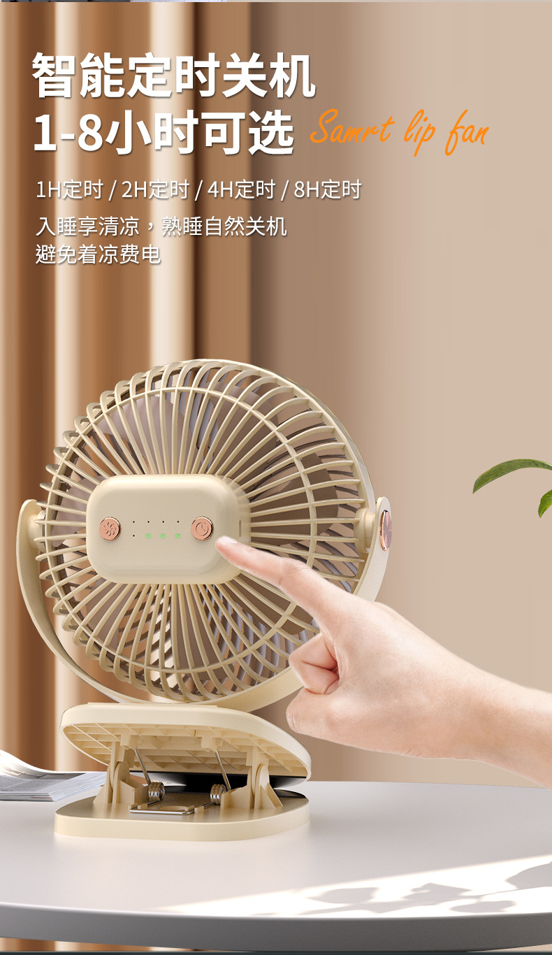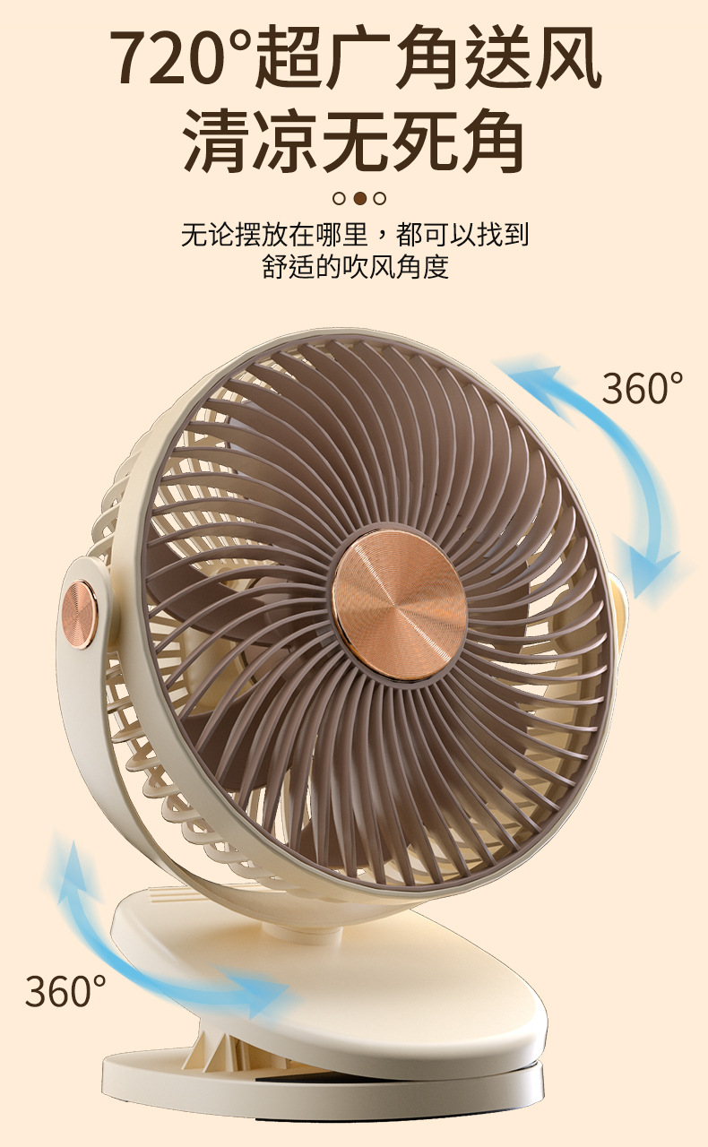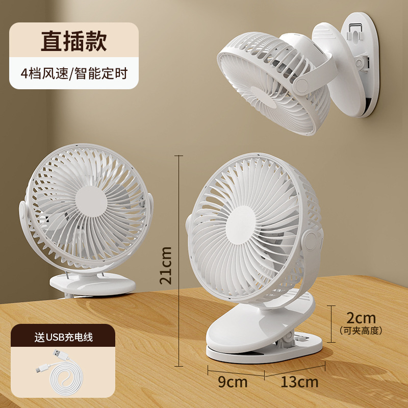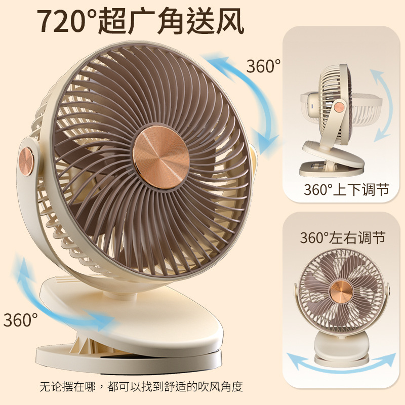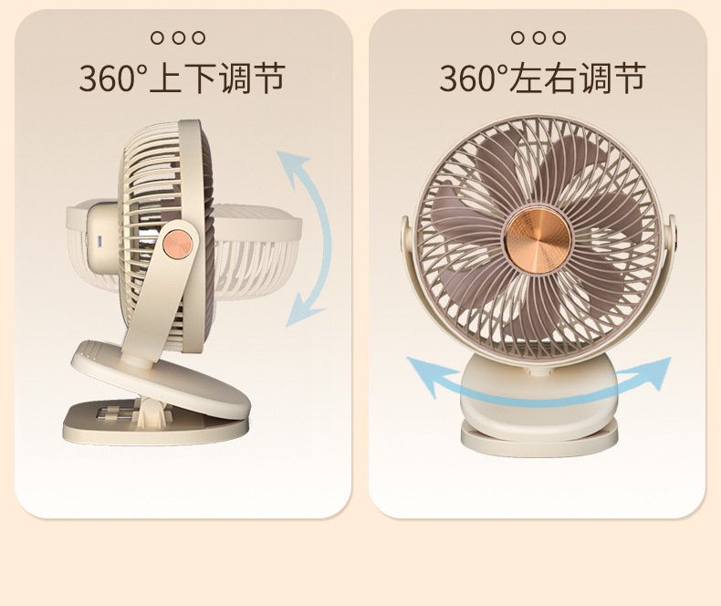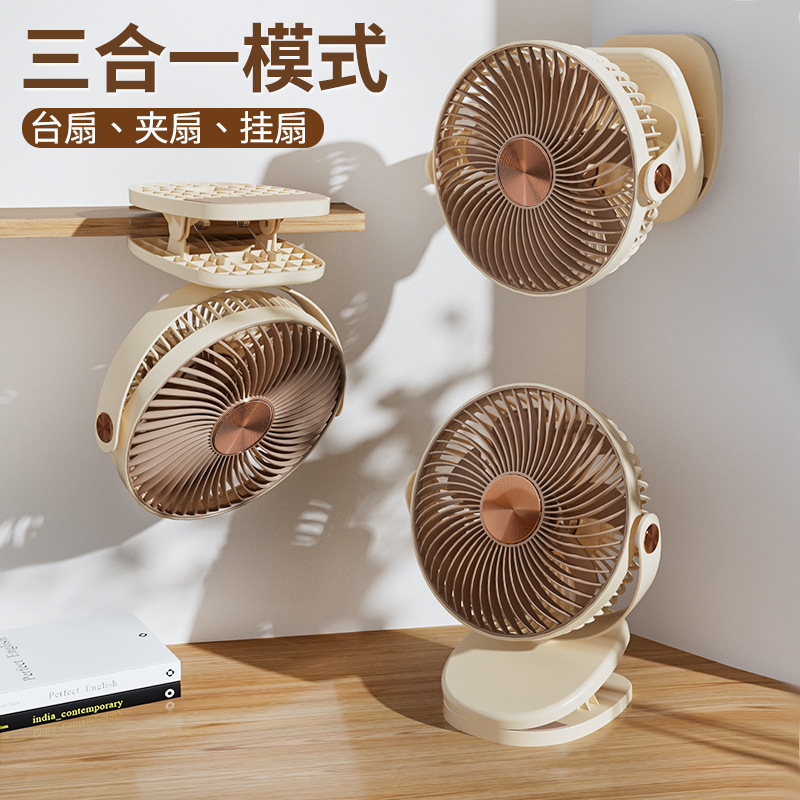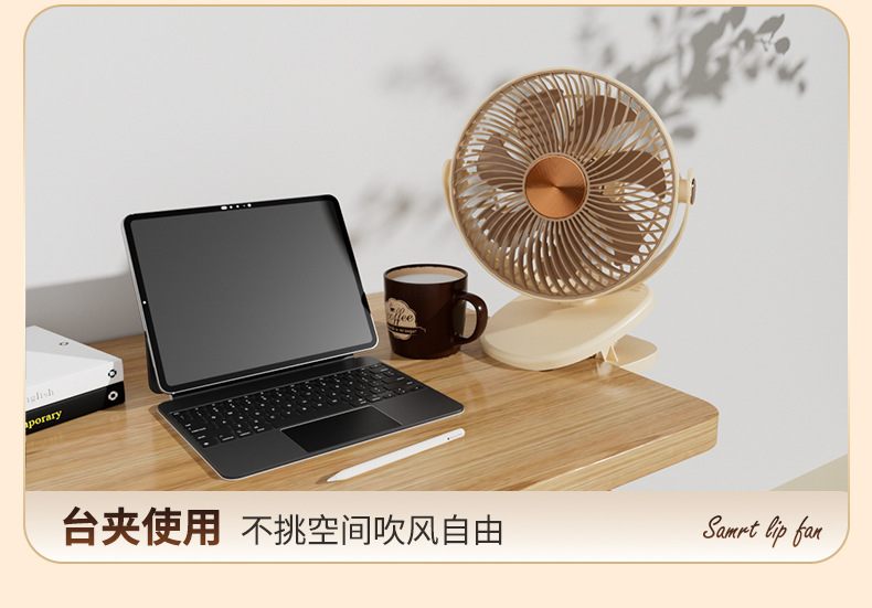 跨境卡西道夫办公桌面充电小风扇大风力8寸USB夹子挂壁两用床头扇