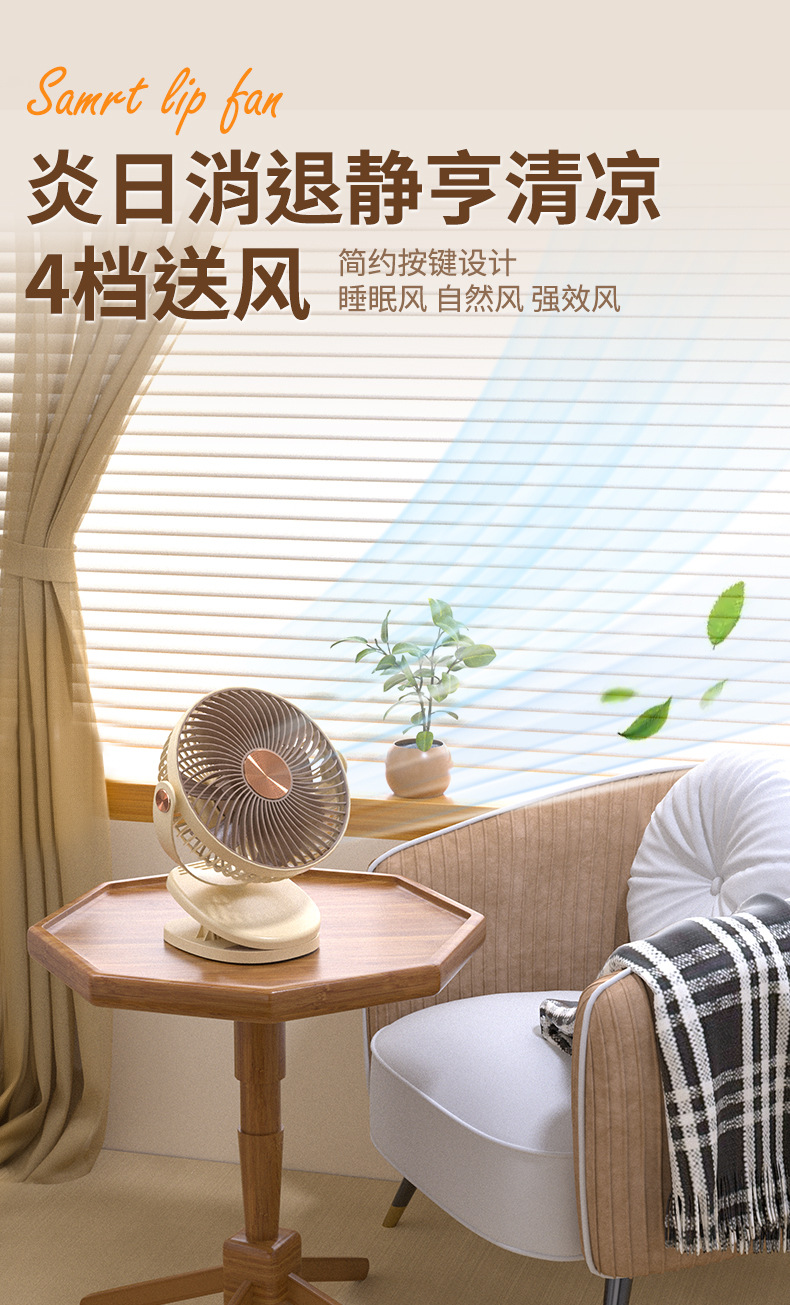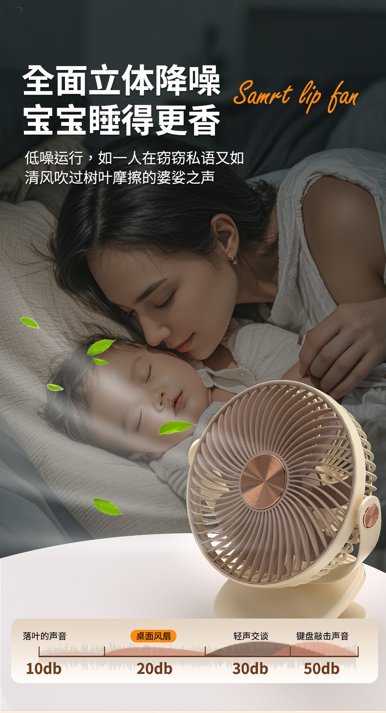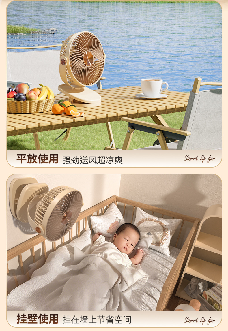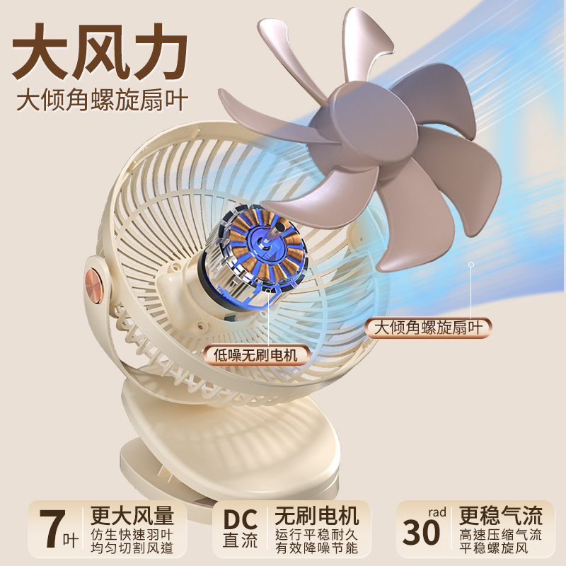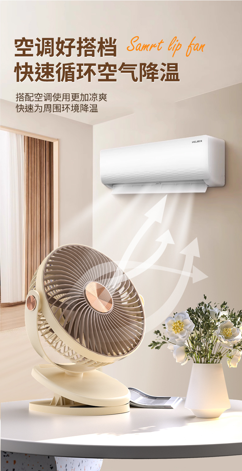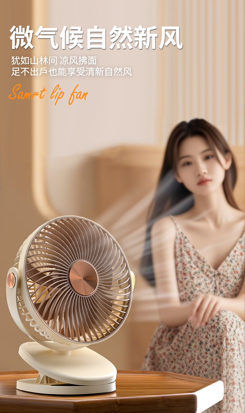 跨境卡西道夫办公桌面充电小风扇大风力8寸USB夹子挂壁两用床头扇