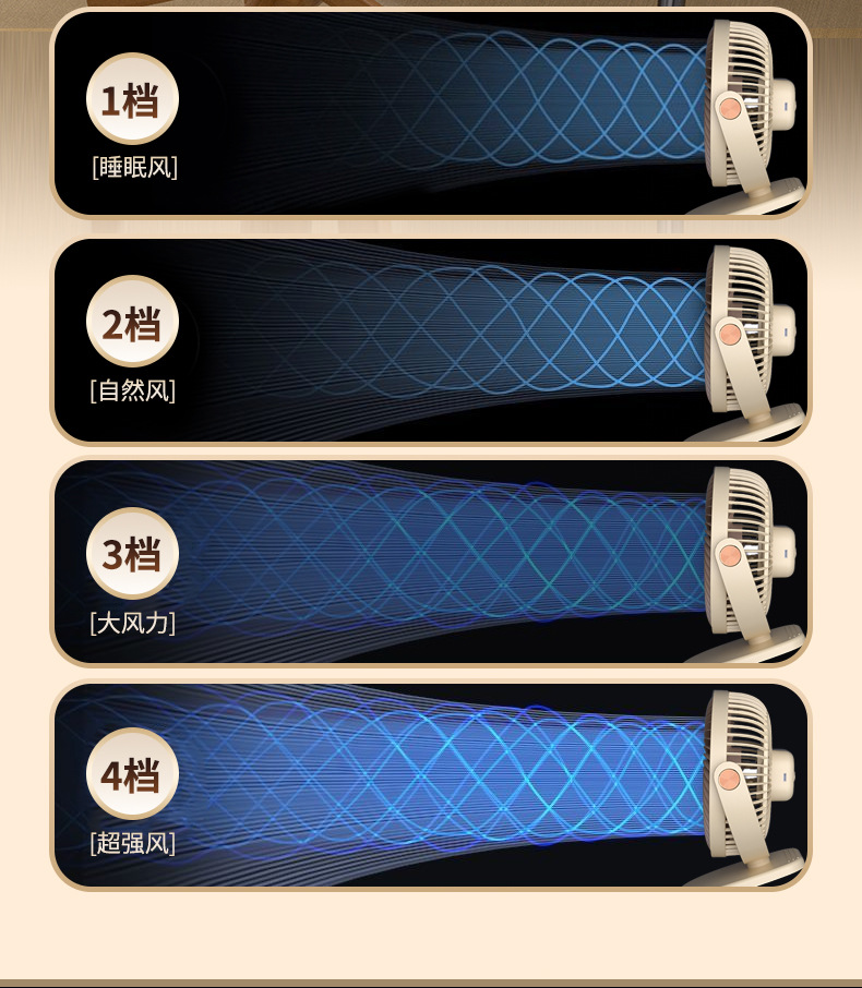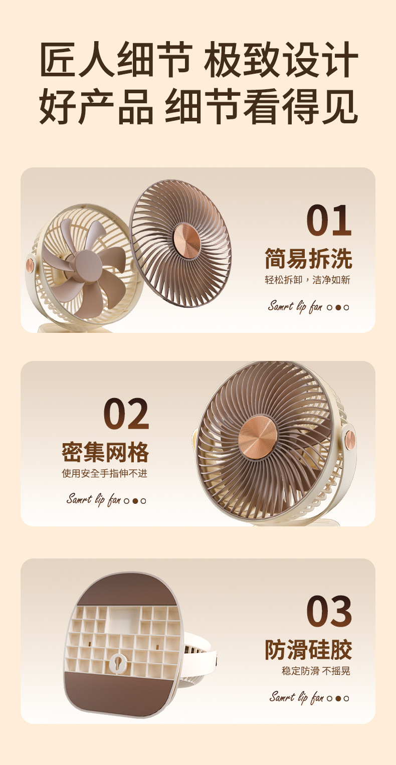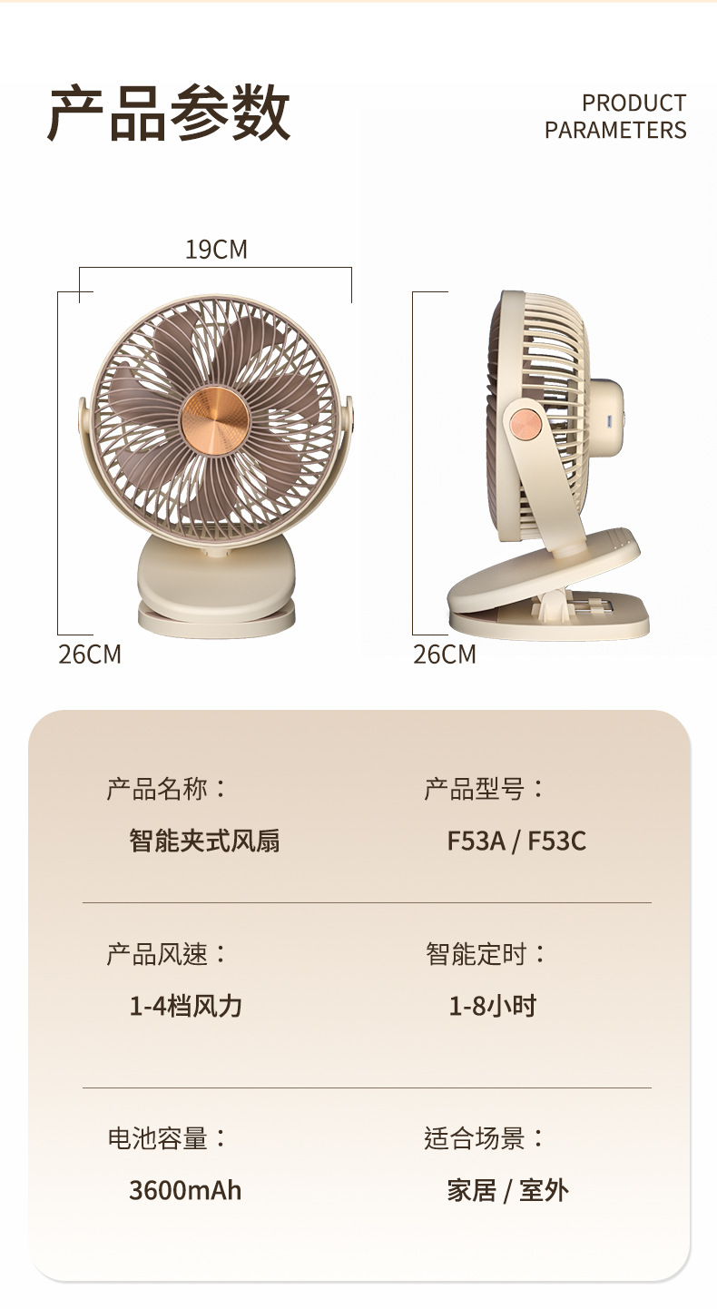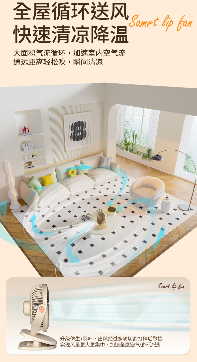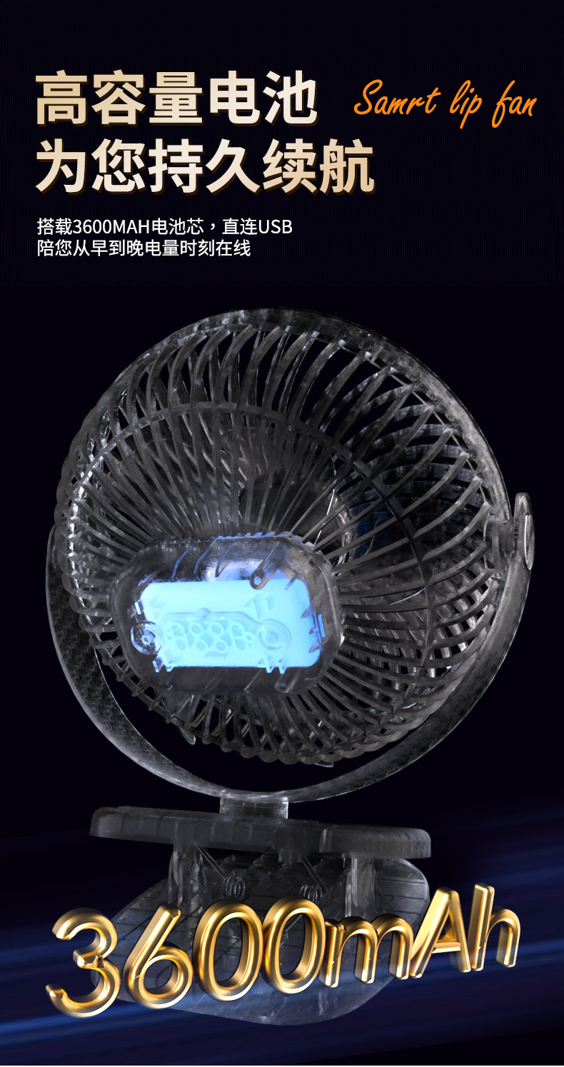 跨境卡西道夫办公桌面充电小风扇大风力8寸USB夹子挂壁两用床头扇