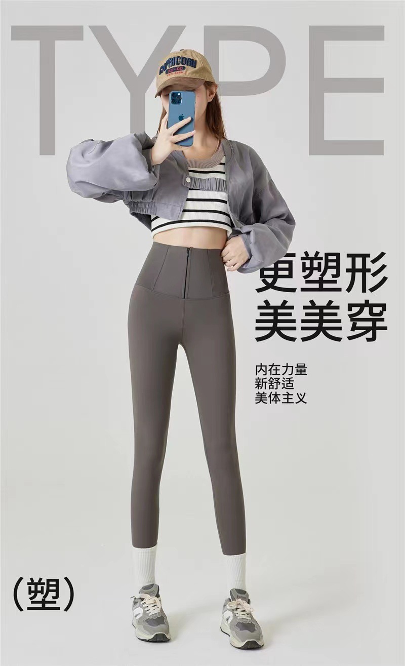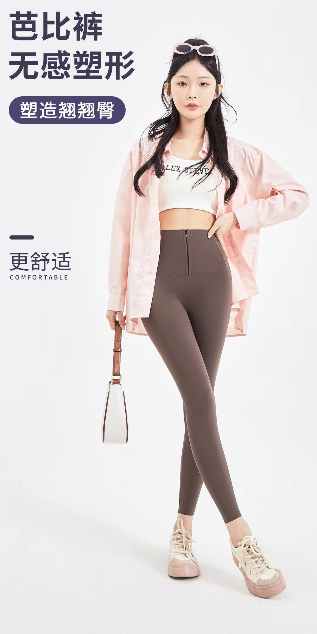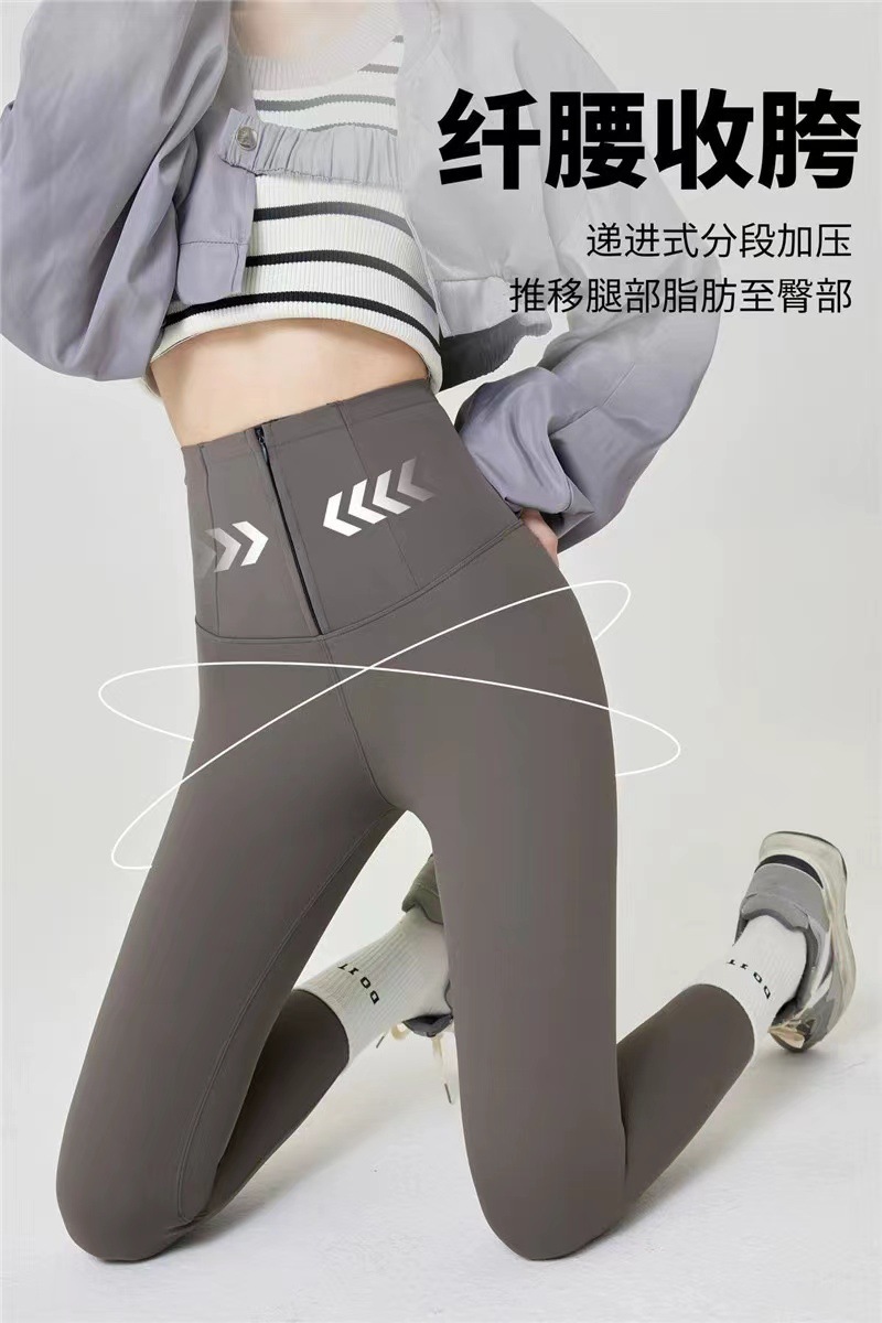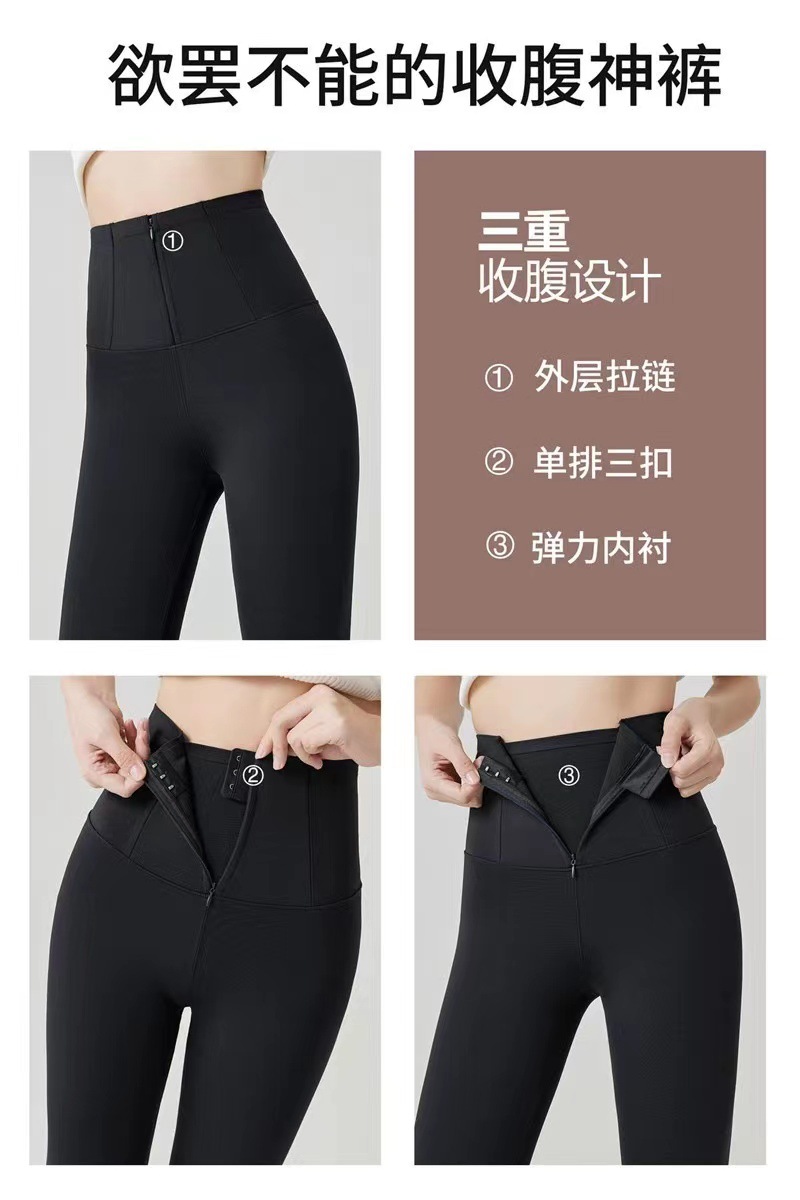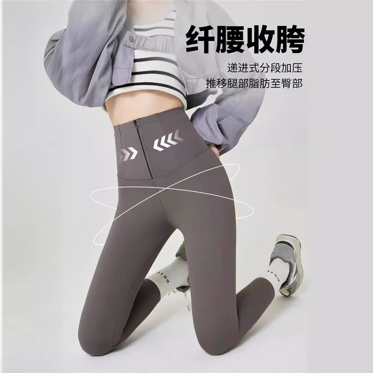 拉链鲨鱼裤三层收腹高腰显鲨鱼皮打底裤女芭比裤九分瑜伽裤显瘦