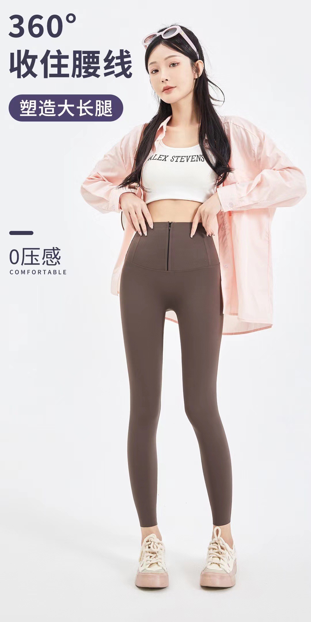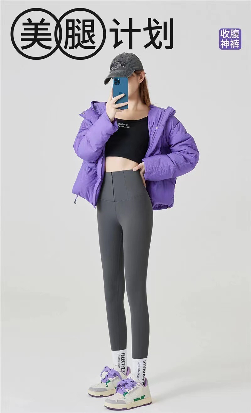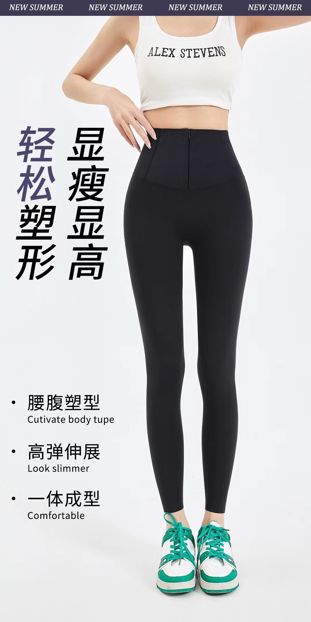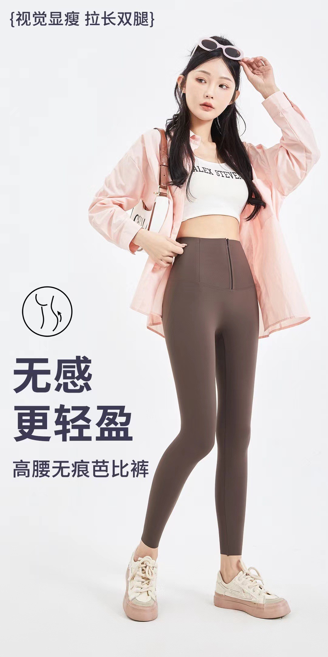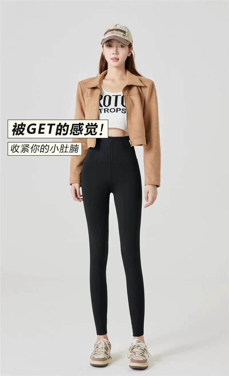 拉链鲨鱼裤三层收腹高腰显鲨鱼皮打底裤女芭比裤九分瑜伽裤显瘦