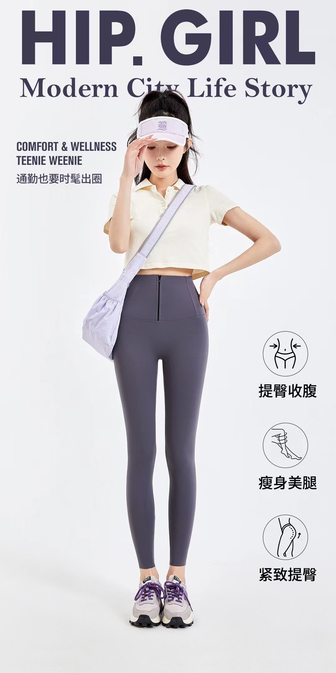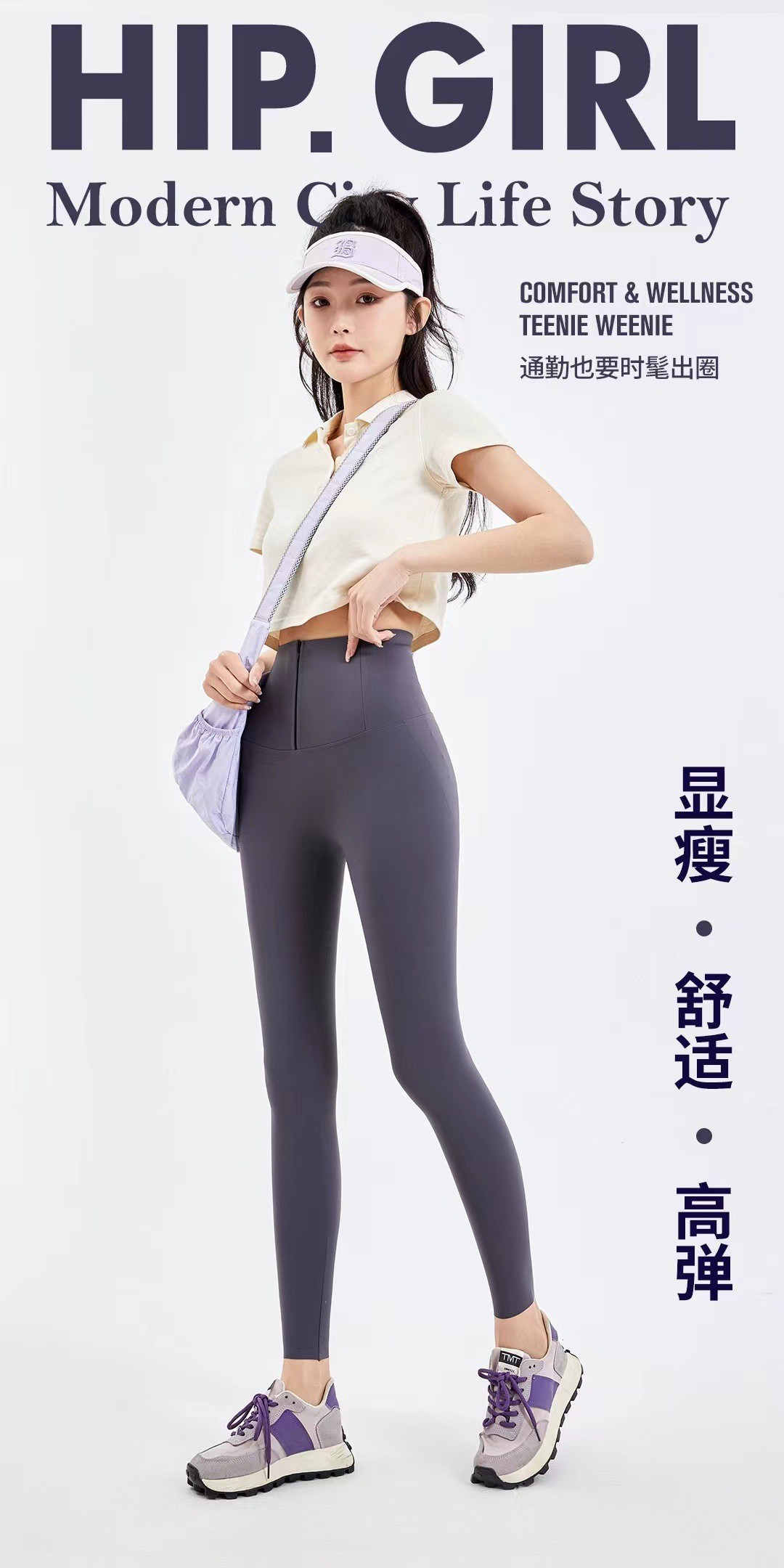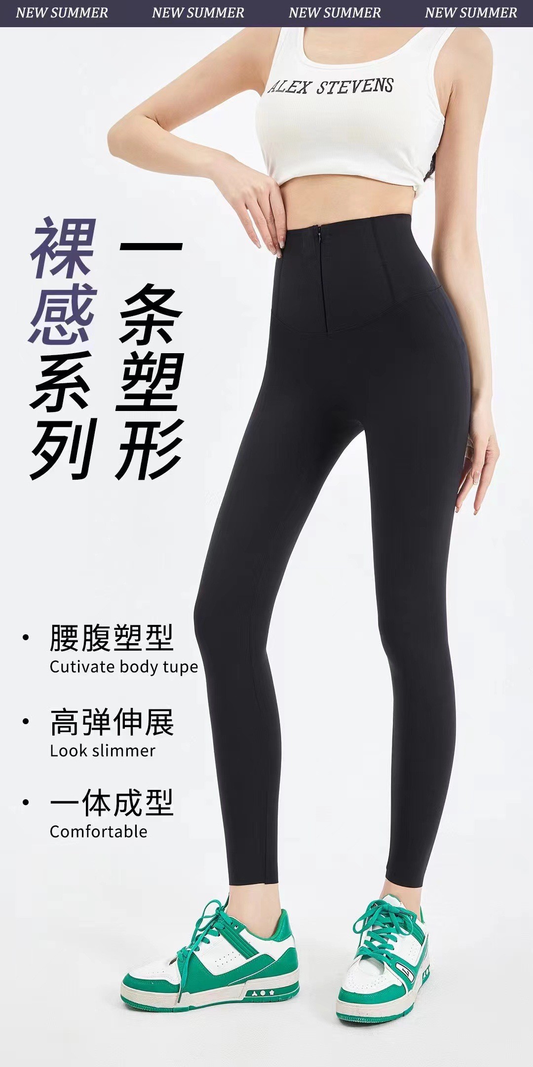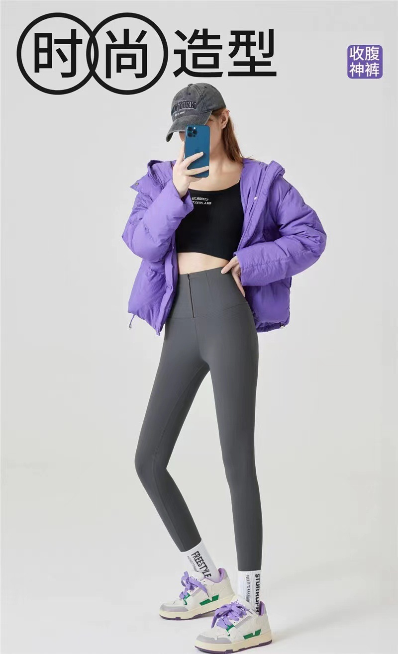 拉链鲨鱼裤三层收腹高腰显鲨鱼皮打底裤女芭比裤九分瑜伽裤显瘦