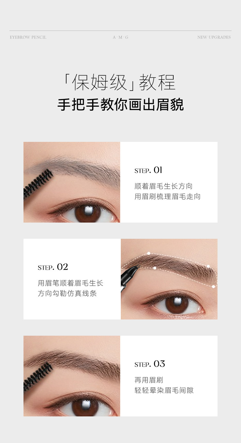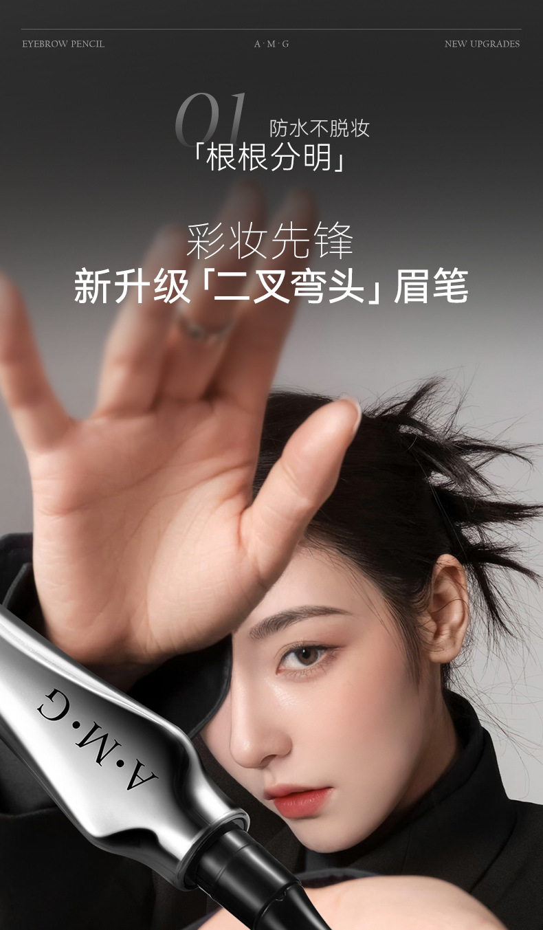 A.M.G二叉眉笔防水防汗不掉色持久自然立体野生眉一笔多用水眉笔