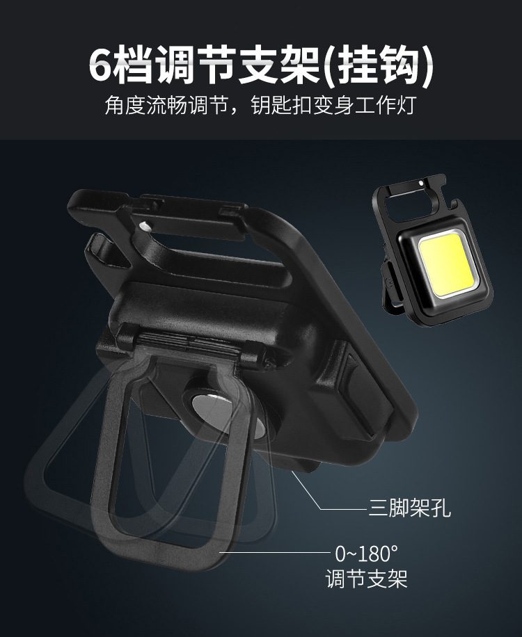 多功能强光钥匙扣灯小手电筒充电工作灯应急随身灯500户外野营灯