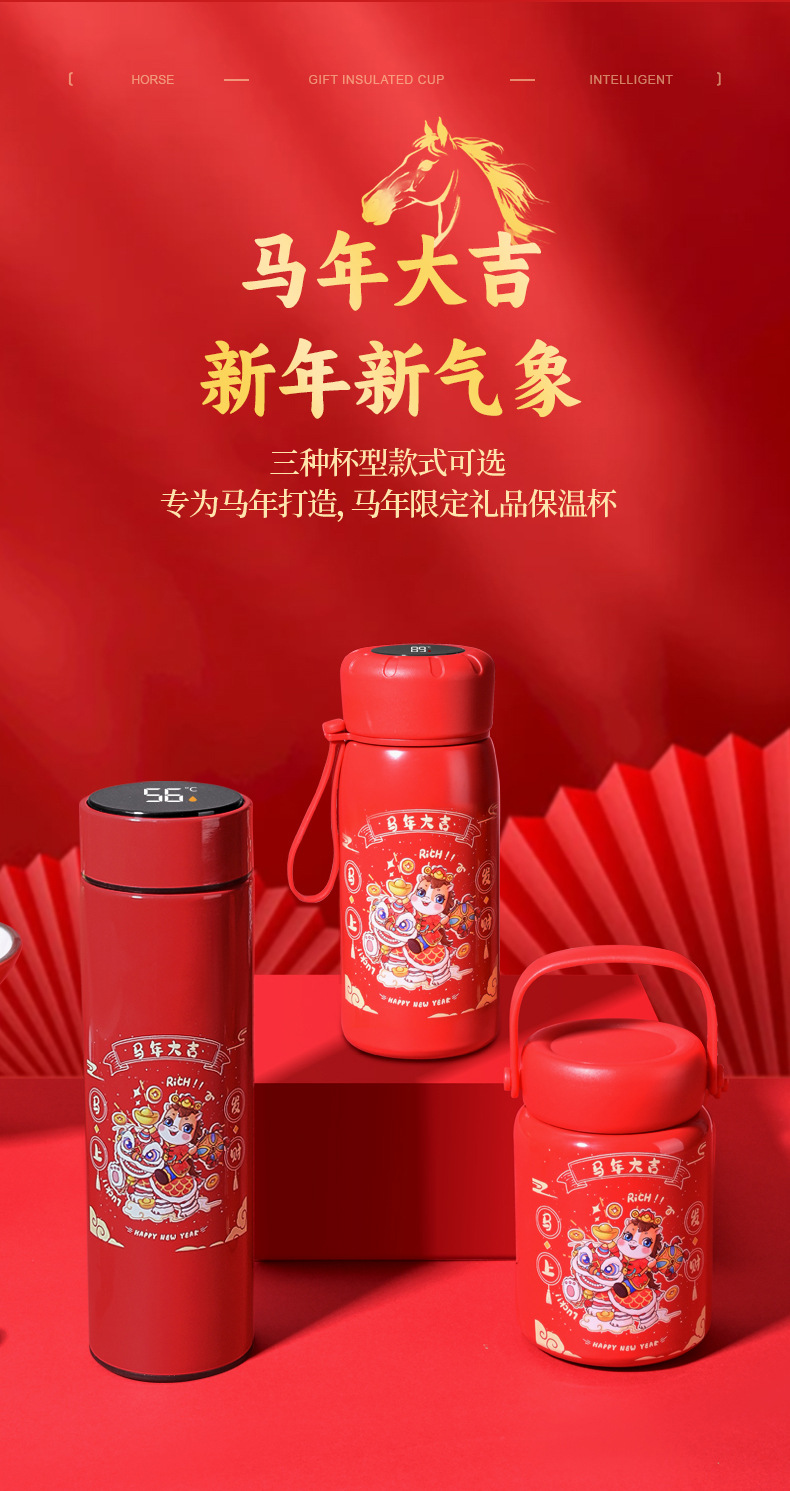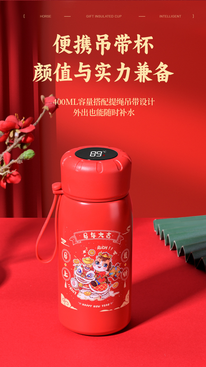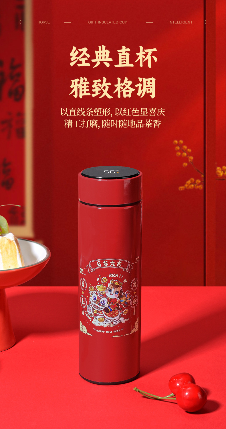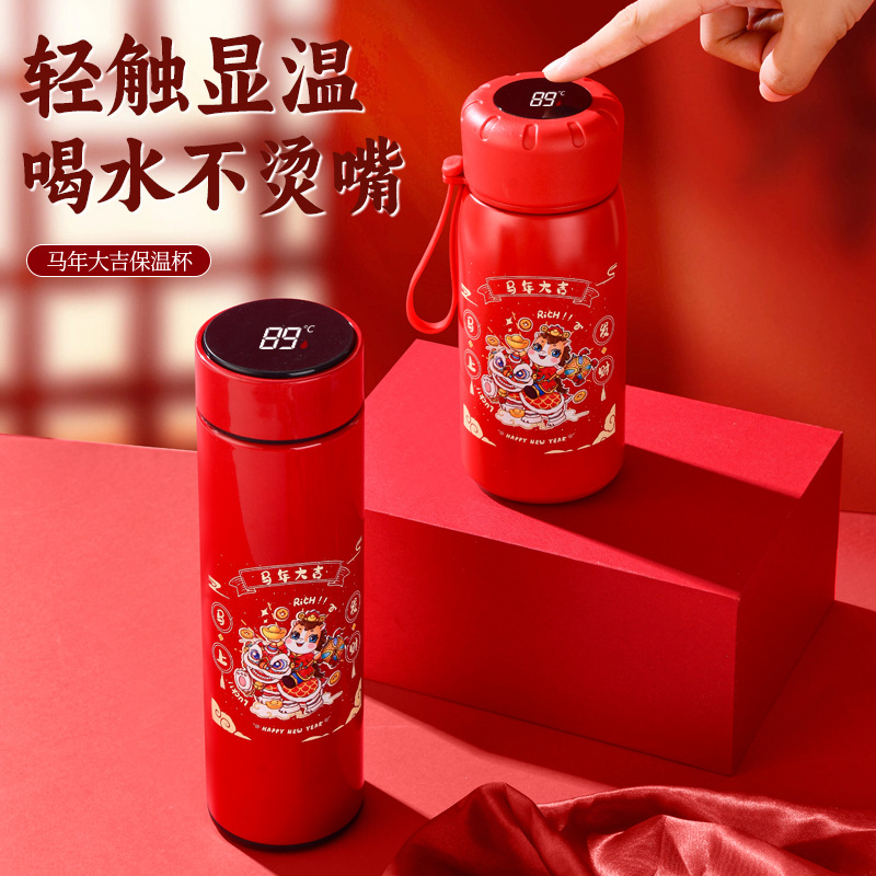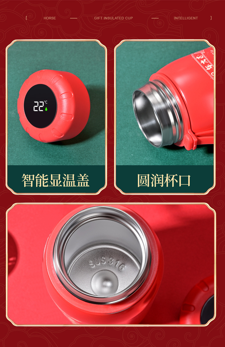 马年开门红保温杯316不锈钢智能 水杯国潮商务年会伴手礼杯子定制