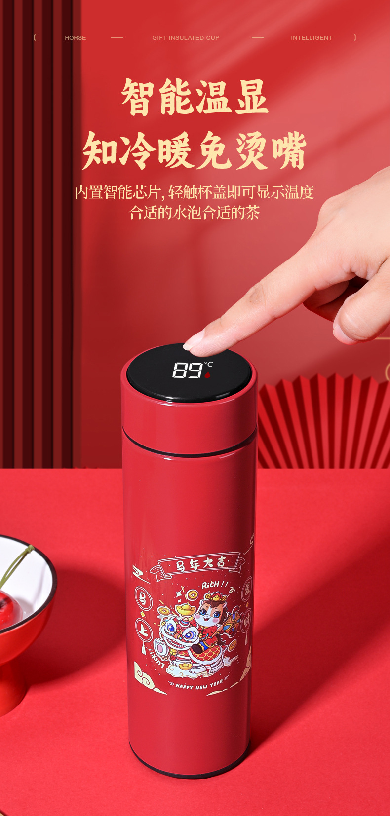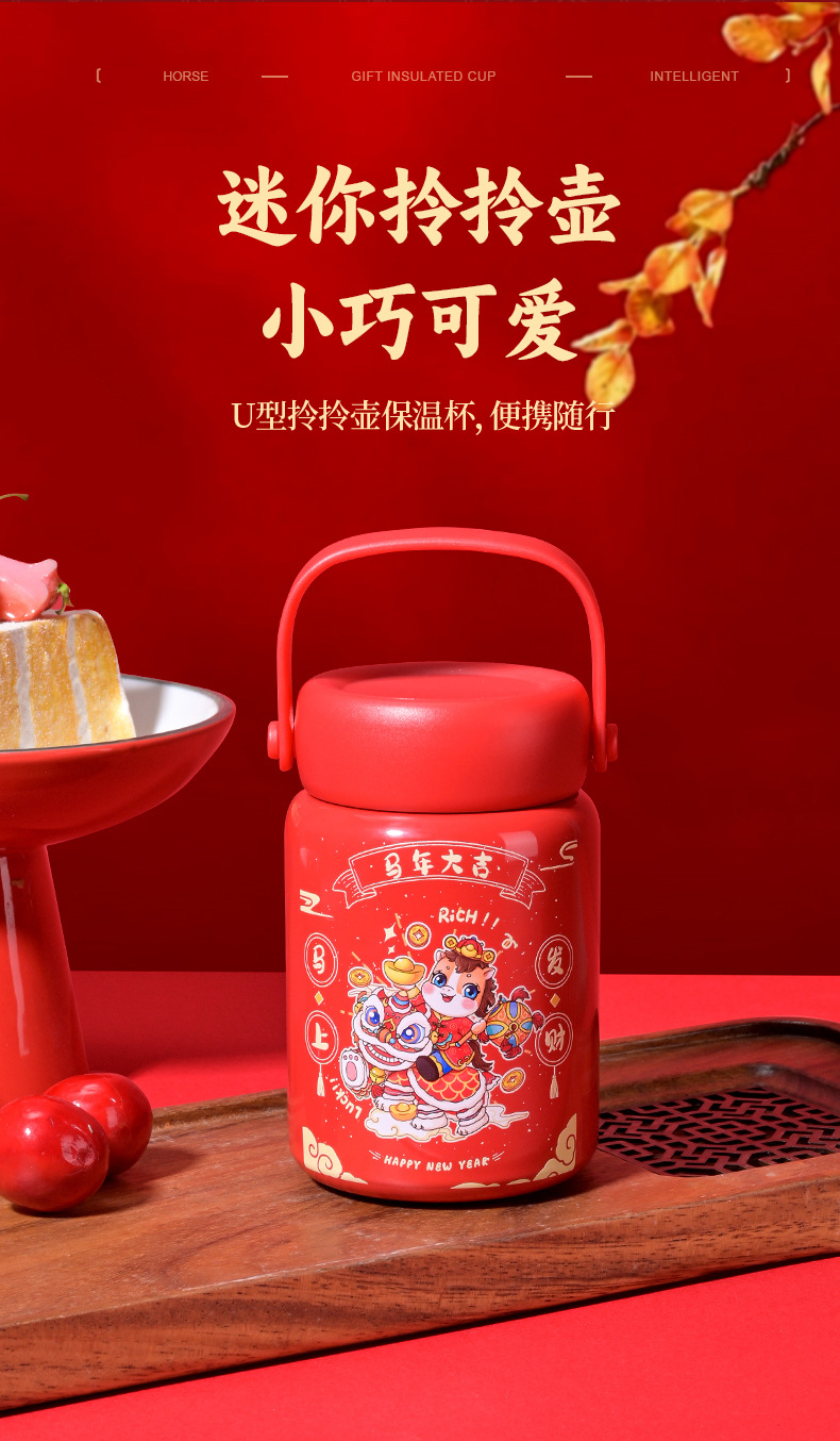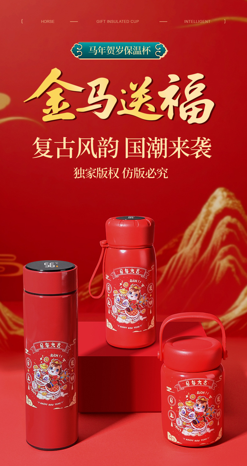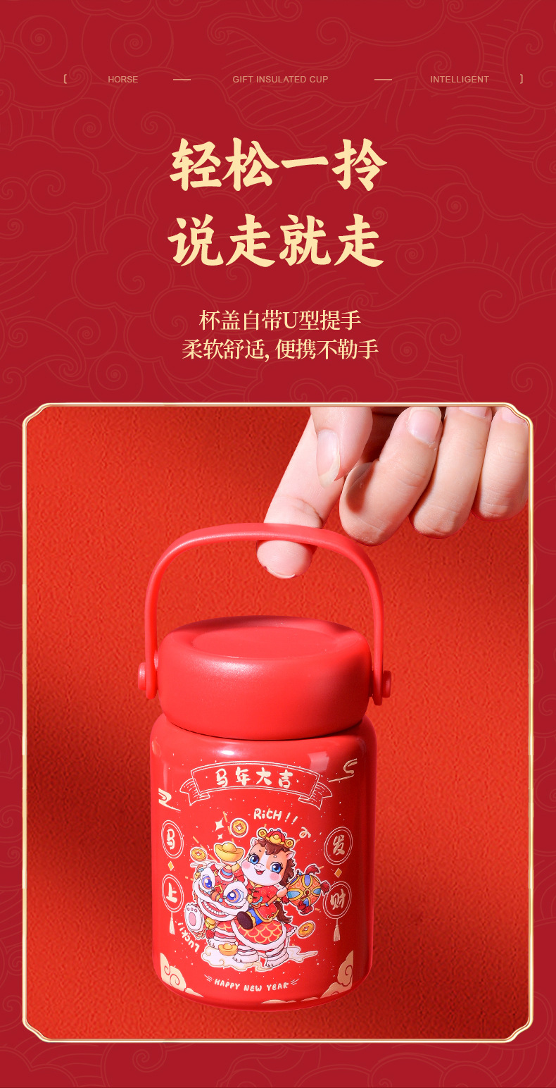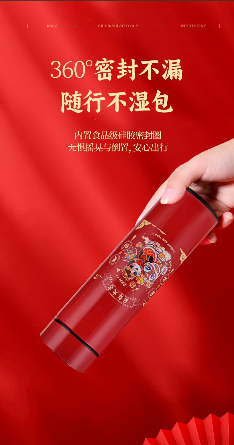 马年开门红保温杯316不锈钢智能 水杯国潮商务年会伴手礼杯子定制