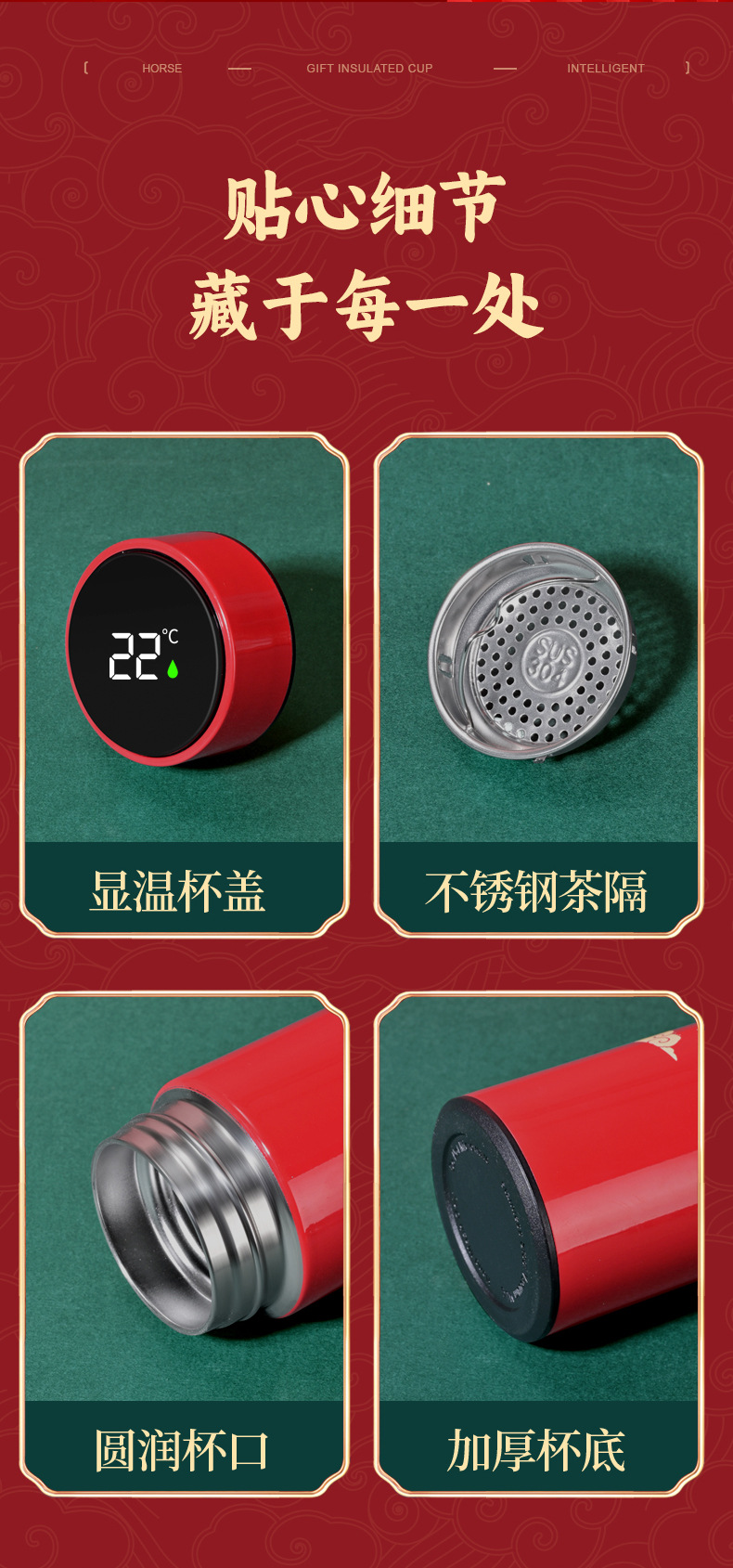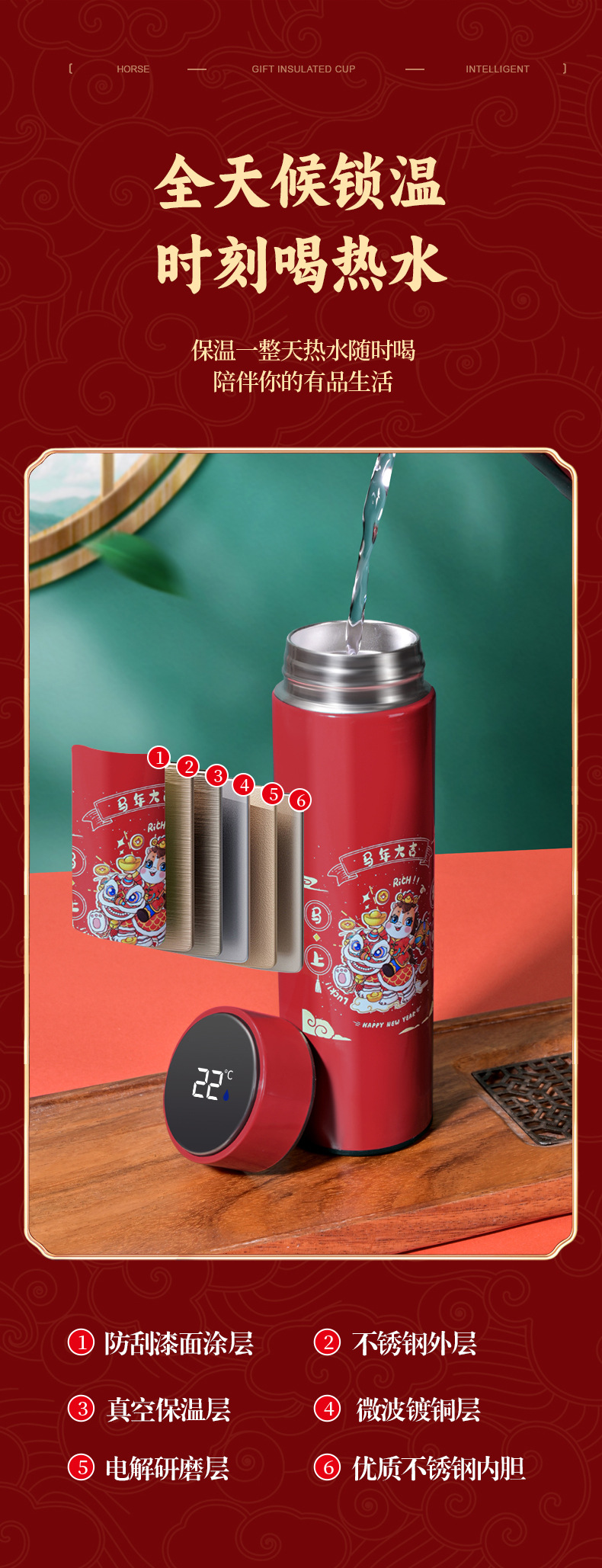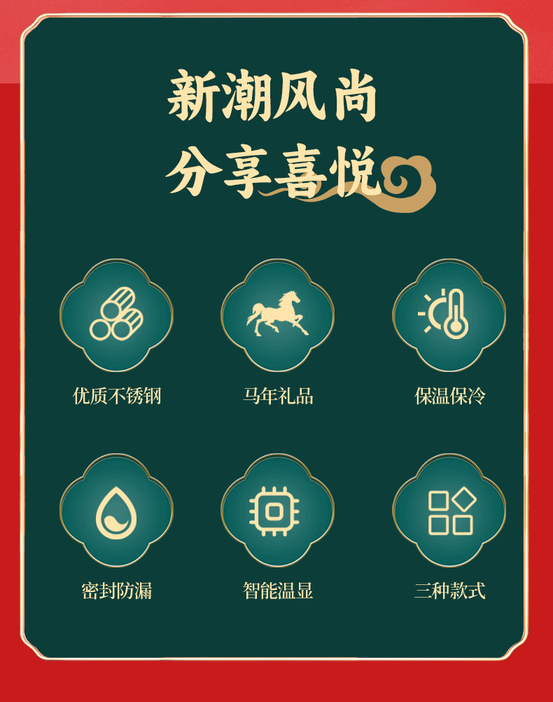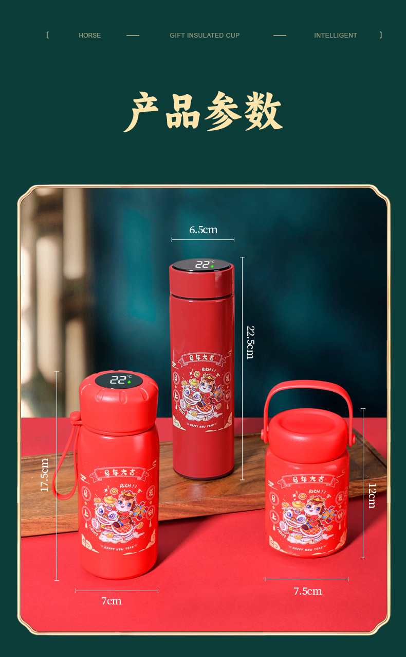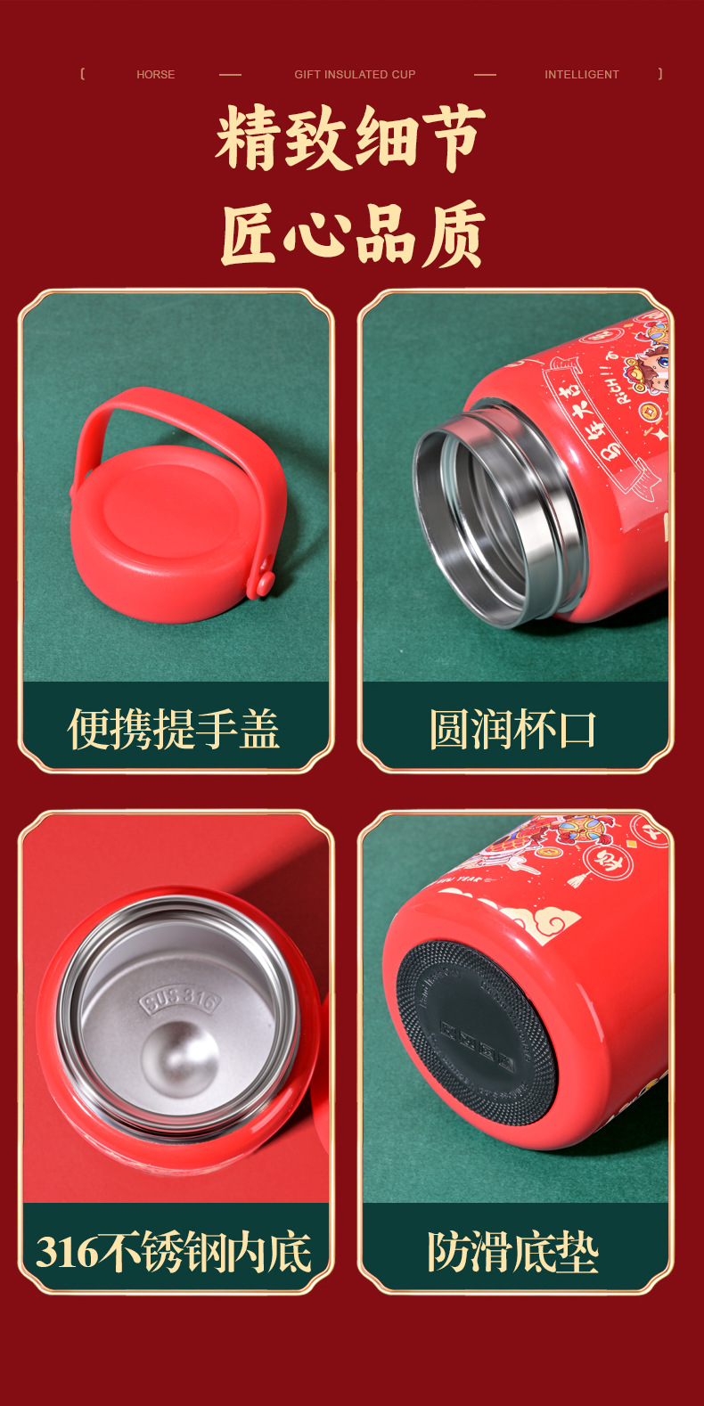 马年开门红保温杯316不锈钢智能 水杯国潮商务年会伴手礼杯子定制
