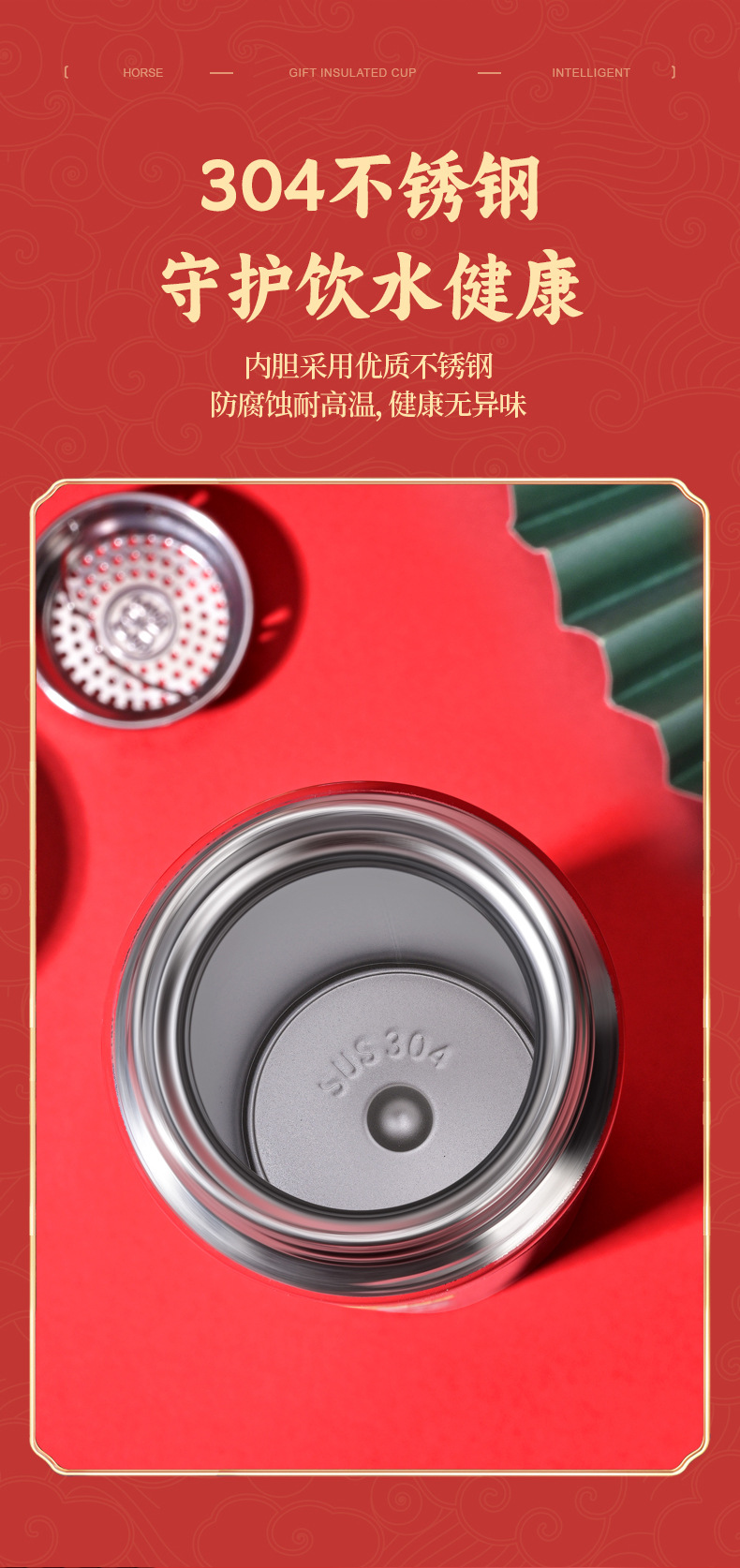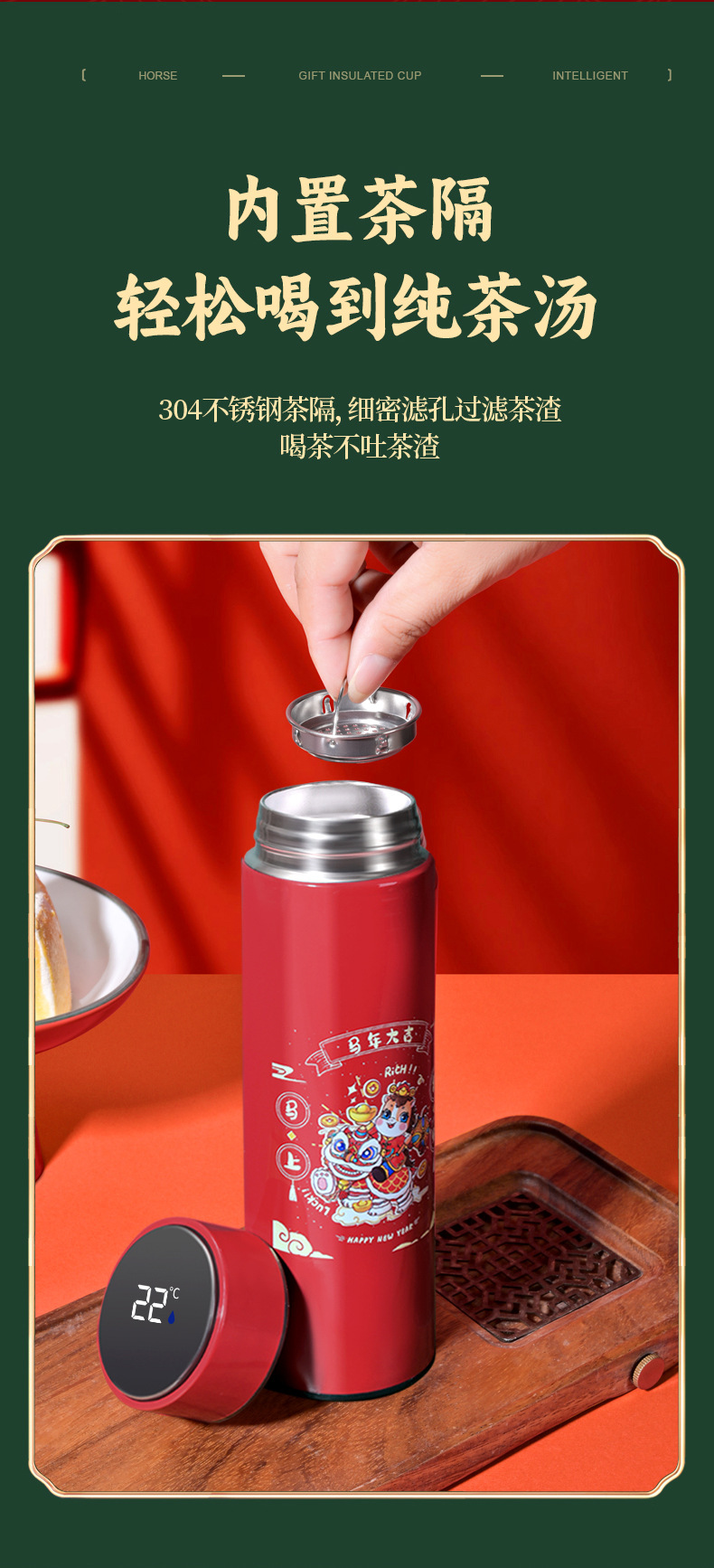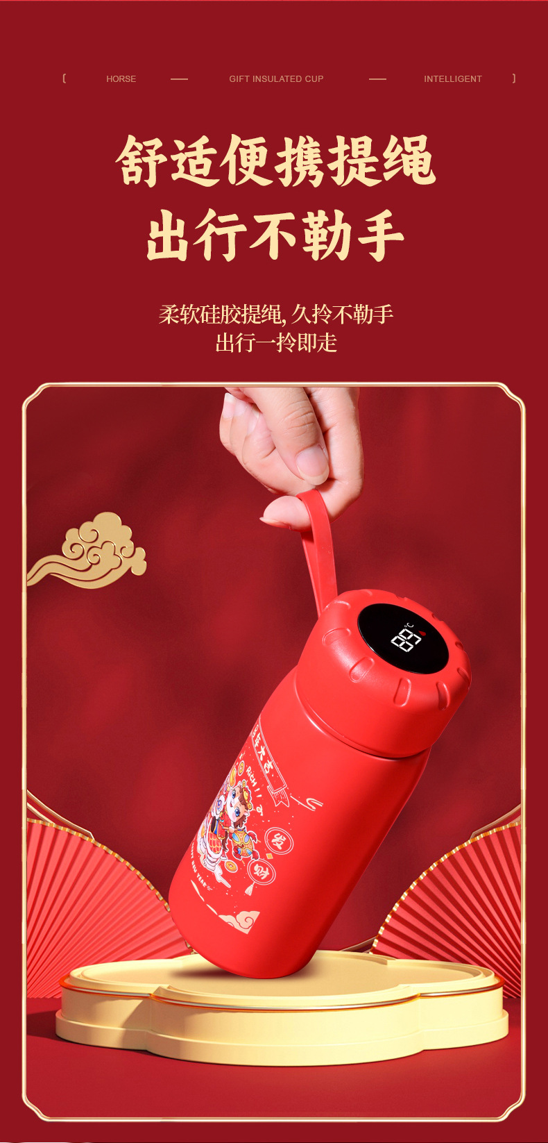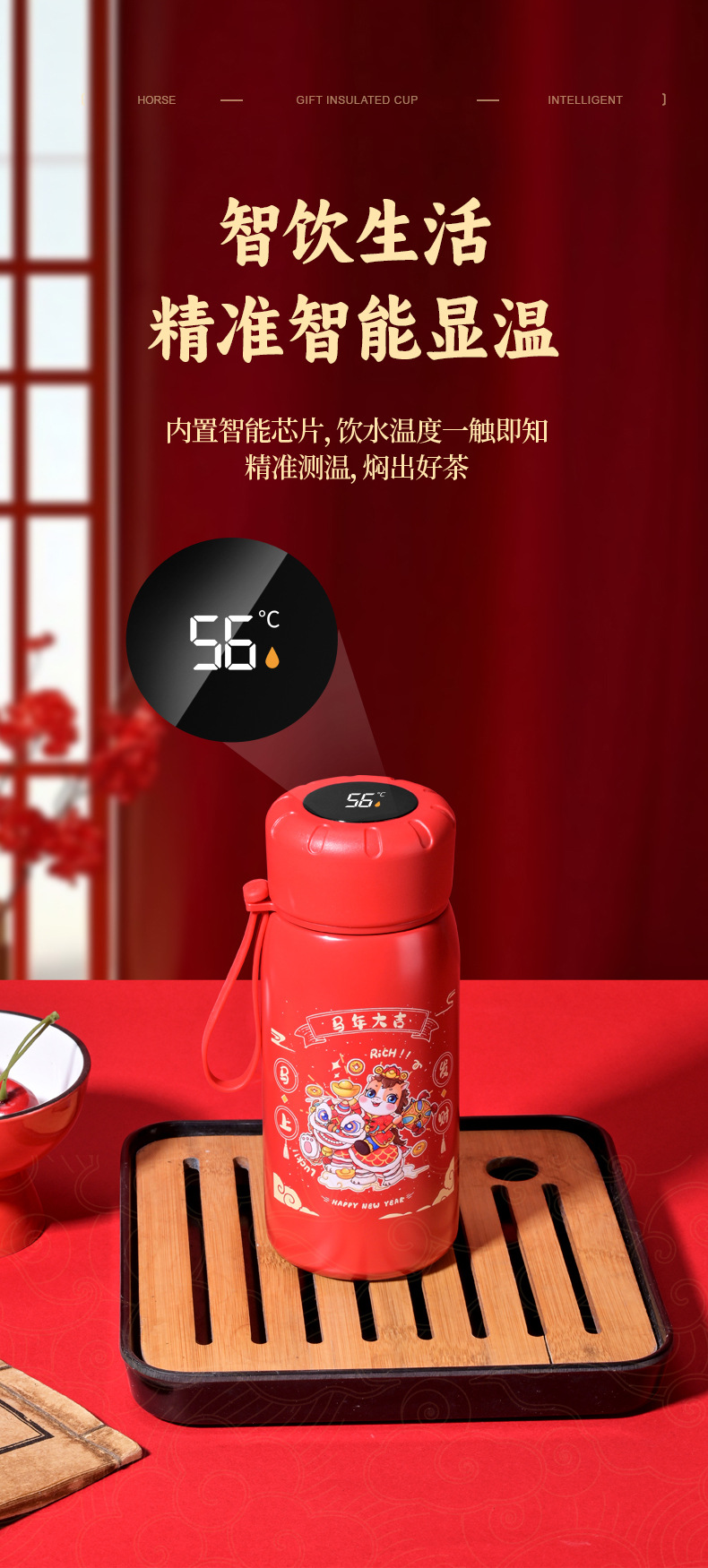 马年开门红保温杯316不锈钢智能 水杯国潮商务年会伴手礼杯子定制
