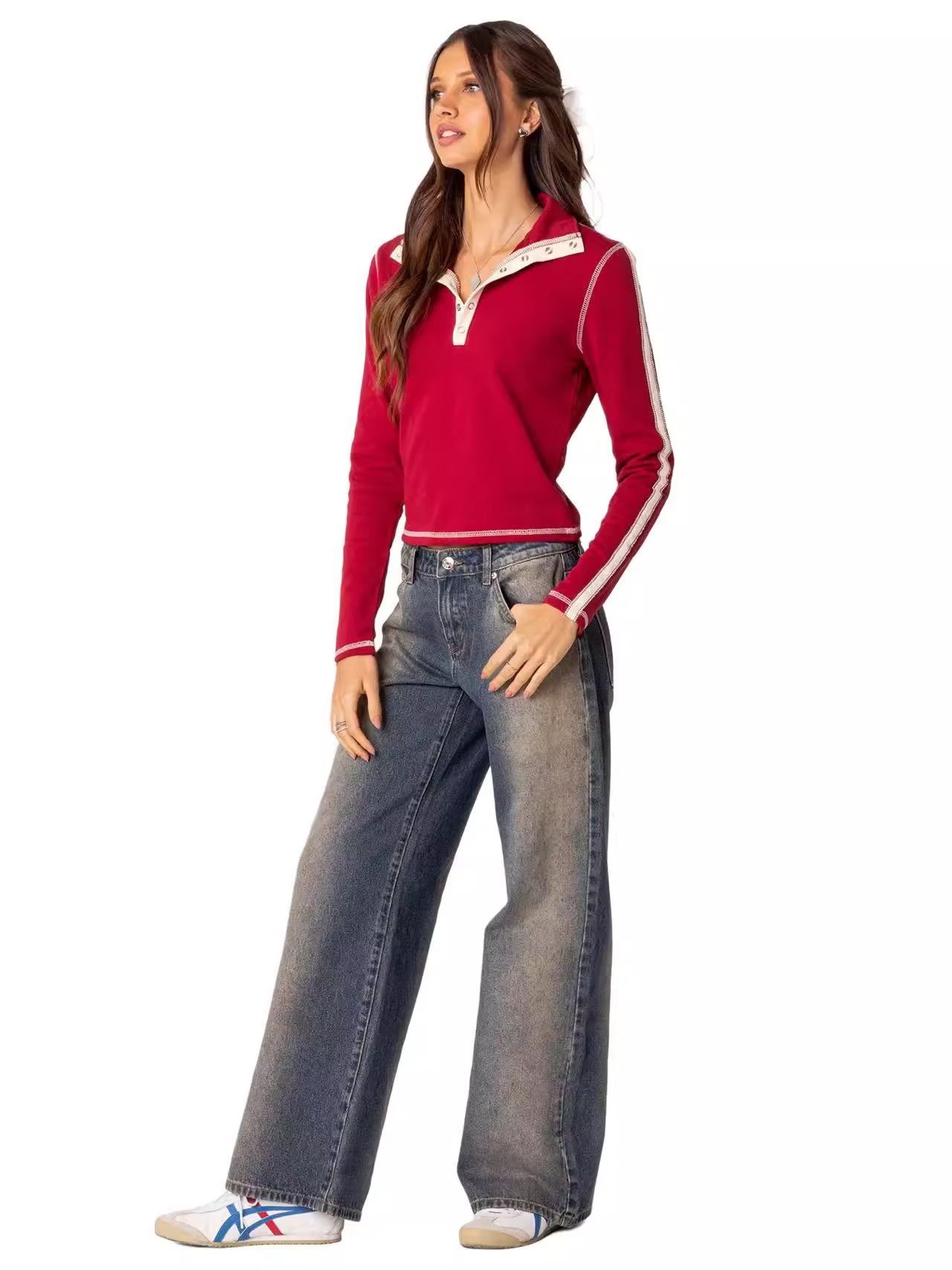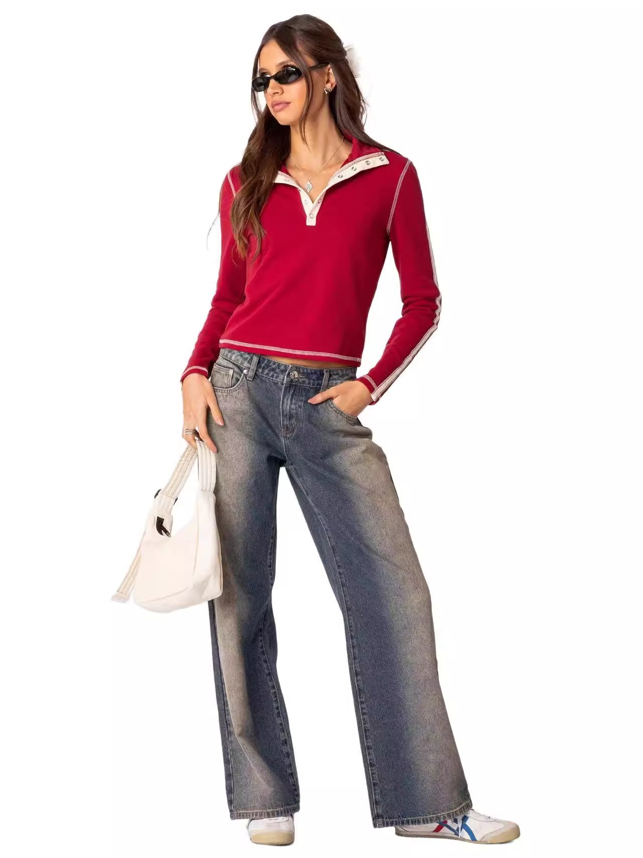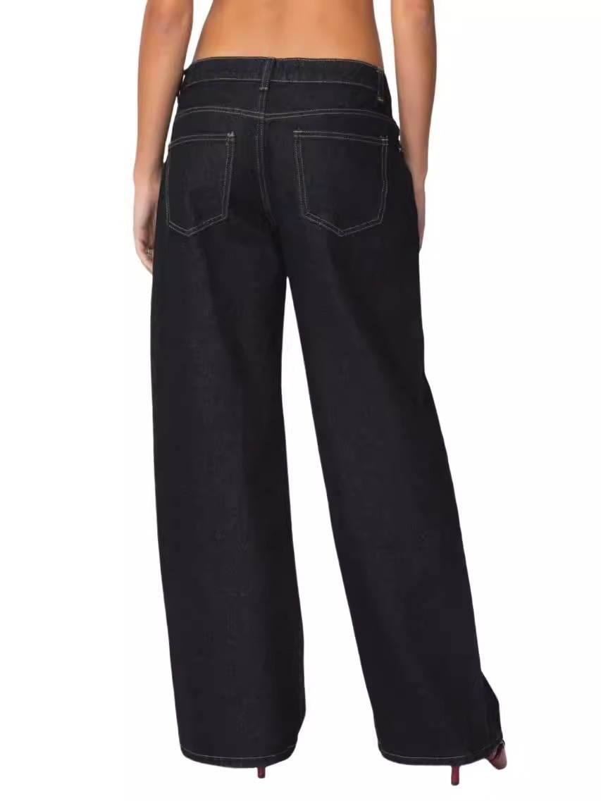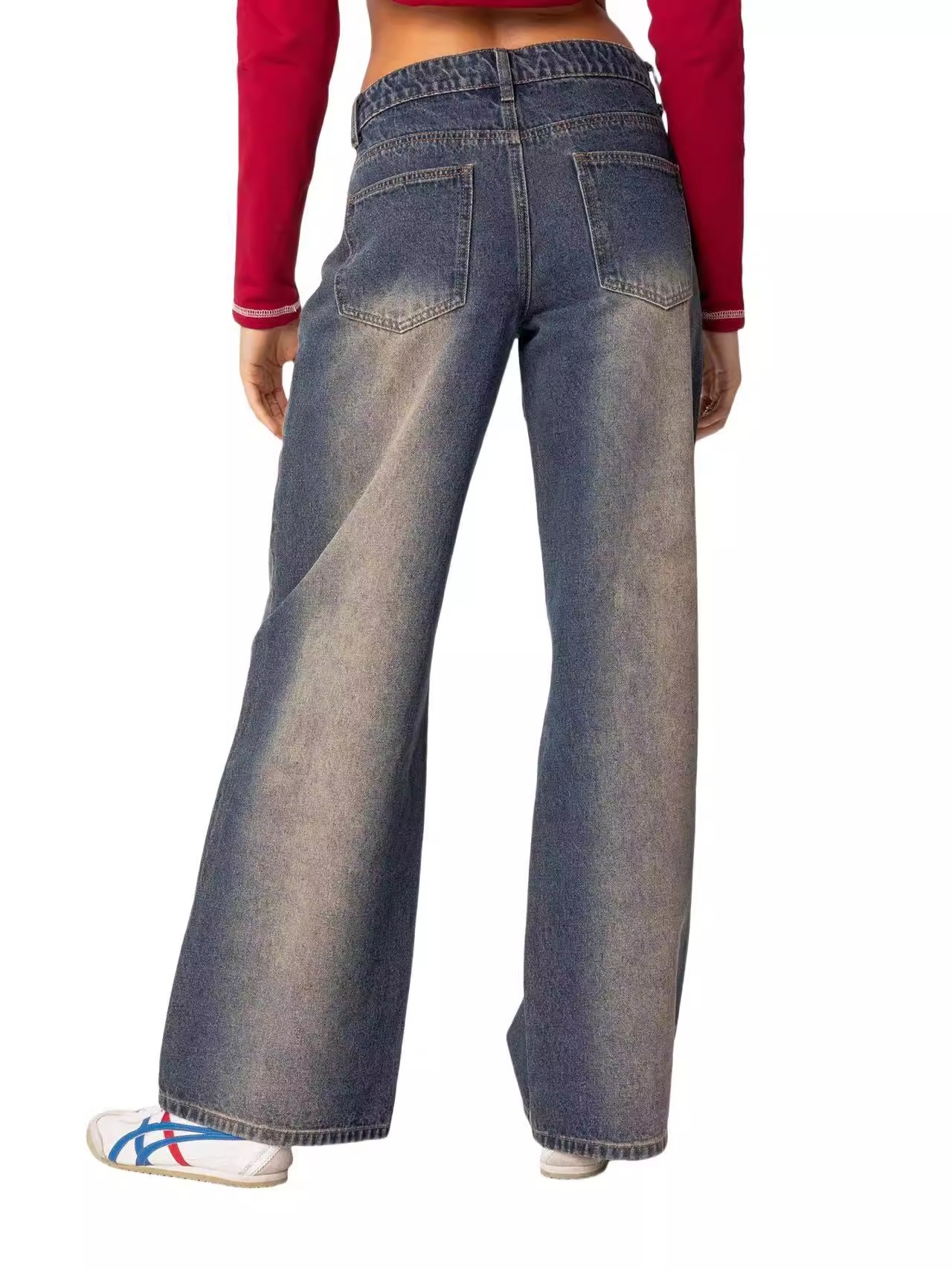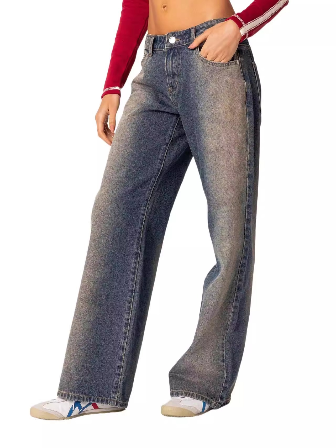 edikted 美式 复古辣妹 低腰直筒 洗水休闲腰显瘦牛仔裤 百搭潮女