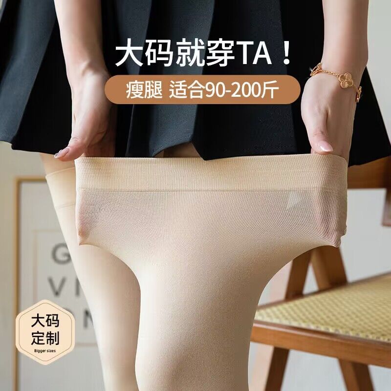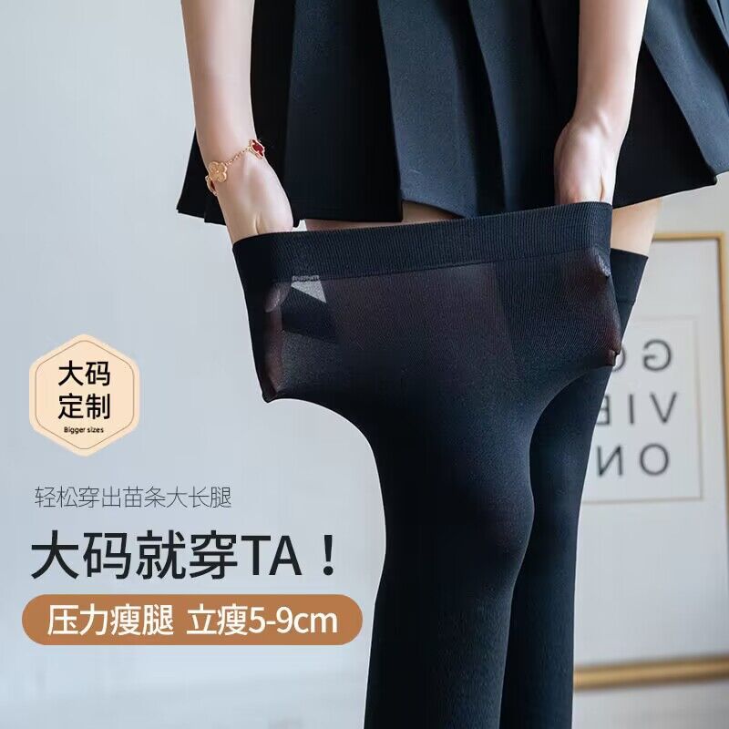 长筒袜女过膝丝袜春夏加肥加大码胖mm200斤夏季高筒黑色大腿袜