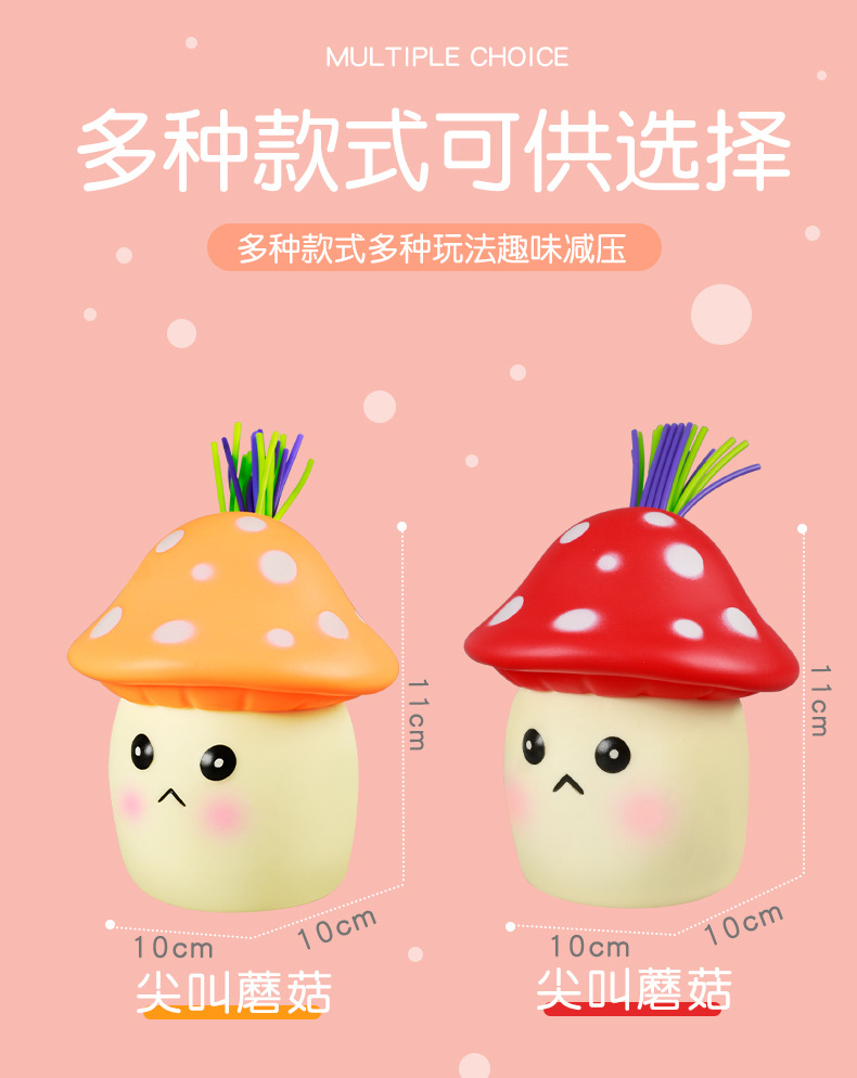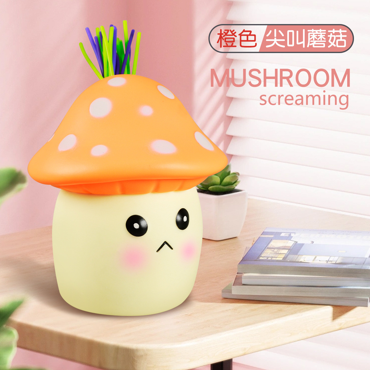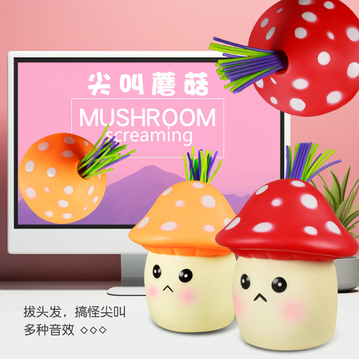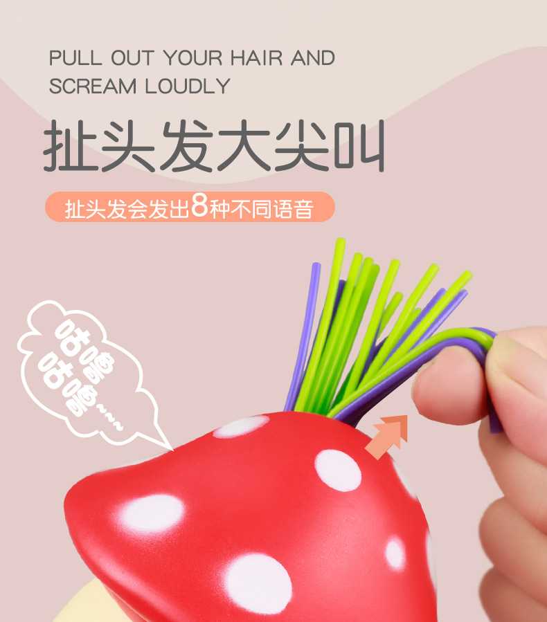 跨境解压玩具尖叫蘑菇新奇玩具软胶扯头发尖叫趣味解压发声玩具