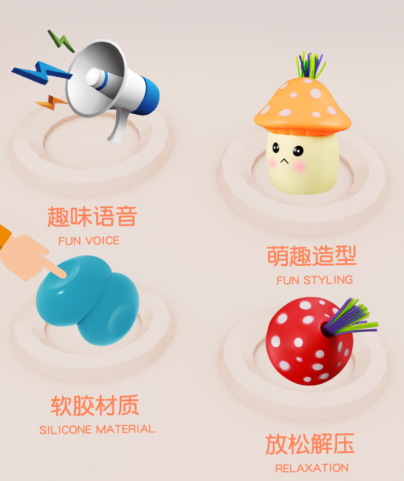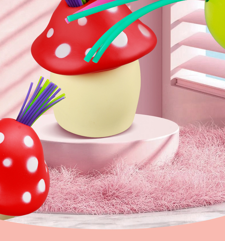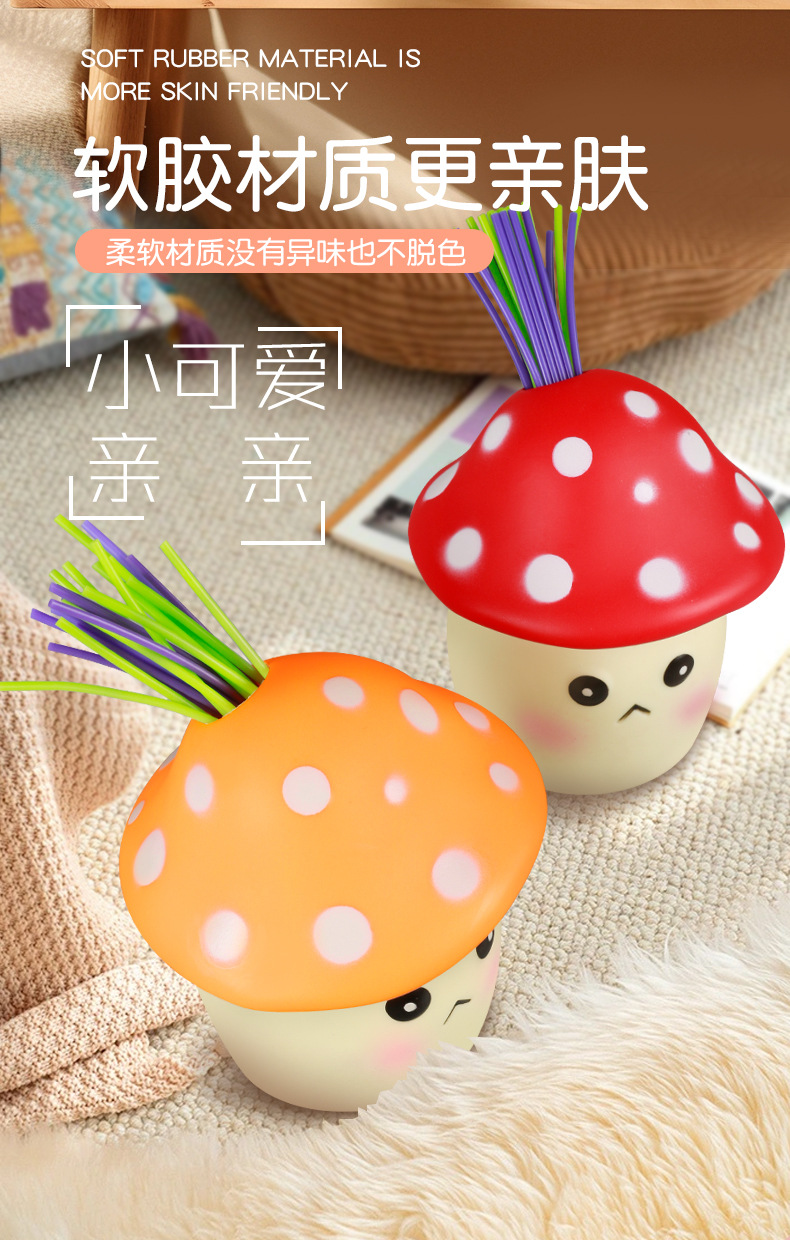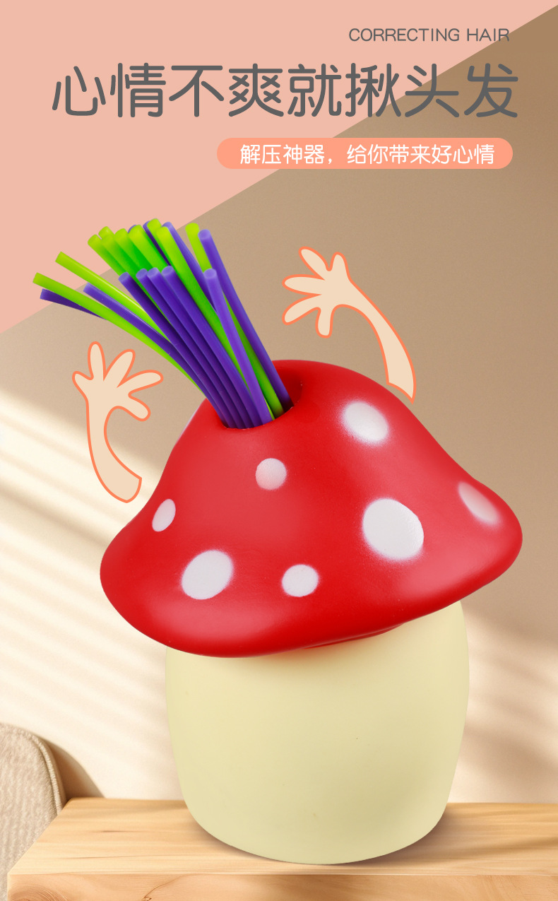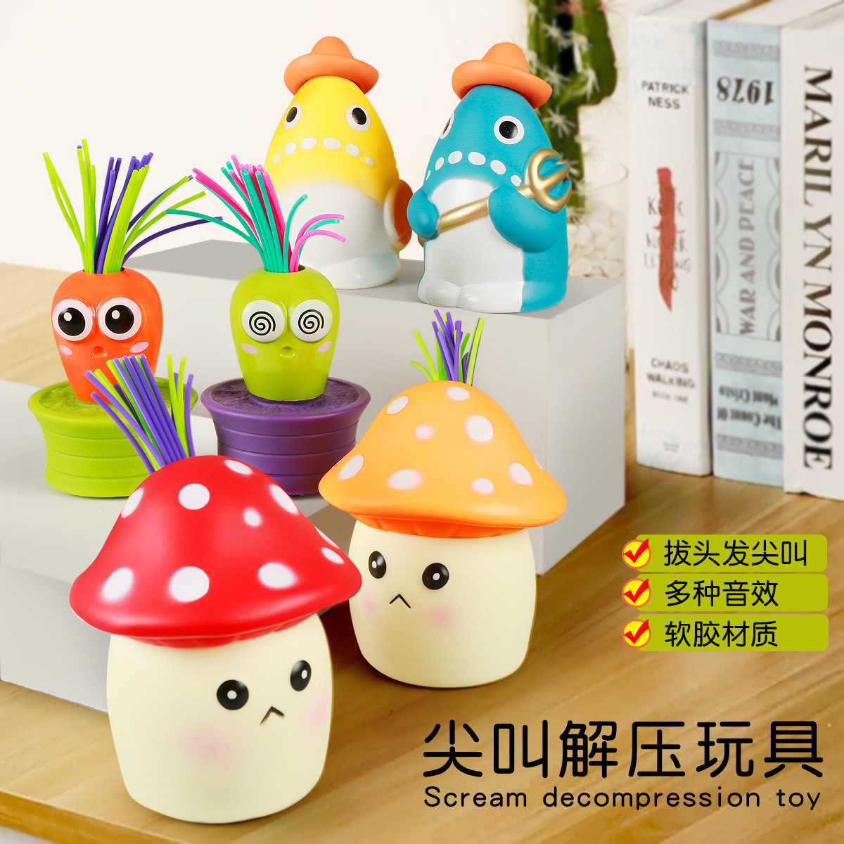 跨境解压玩具尖叫蘑菇新奇玩具软胶扯头发尖叫趣味解压发声玩具