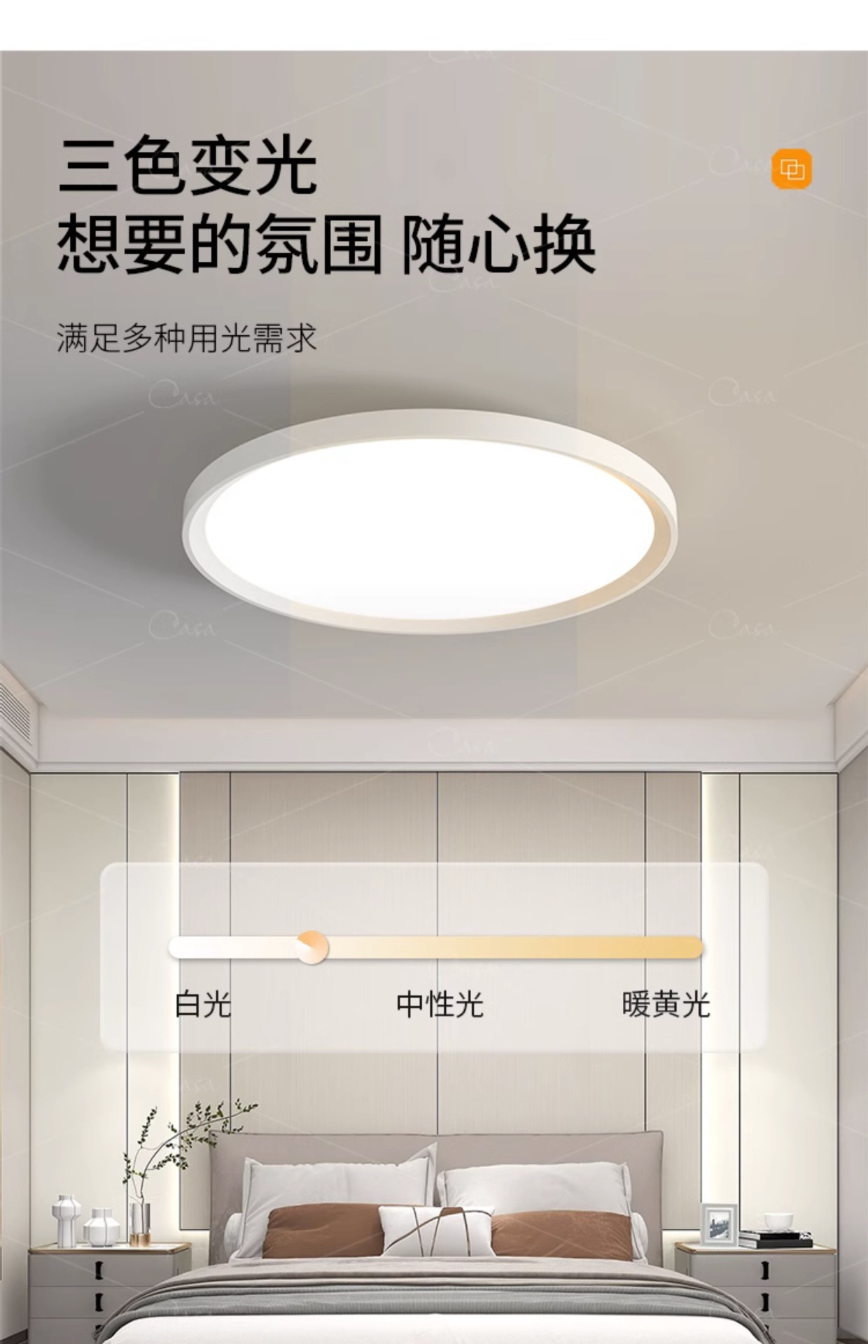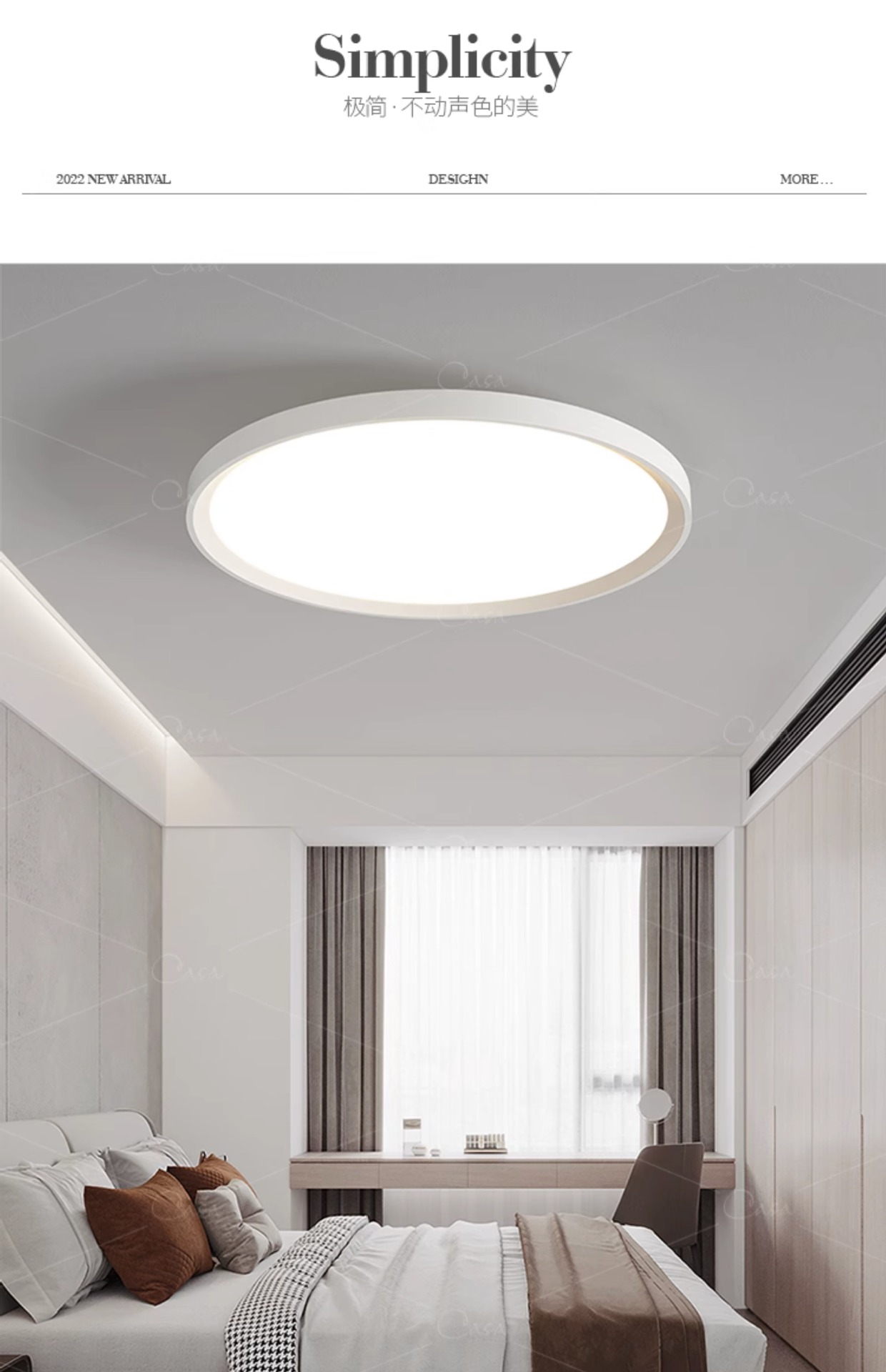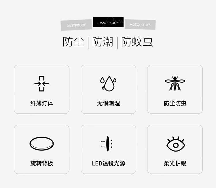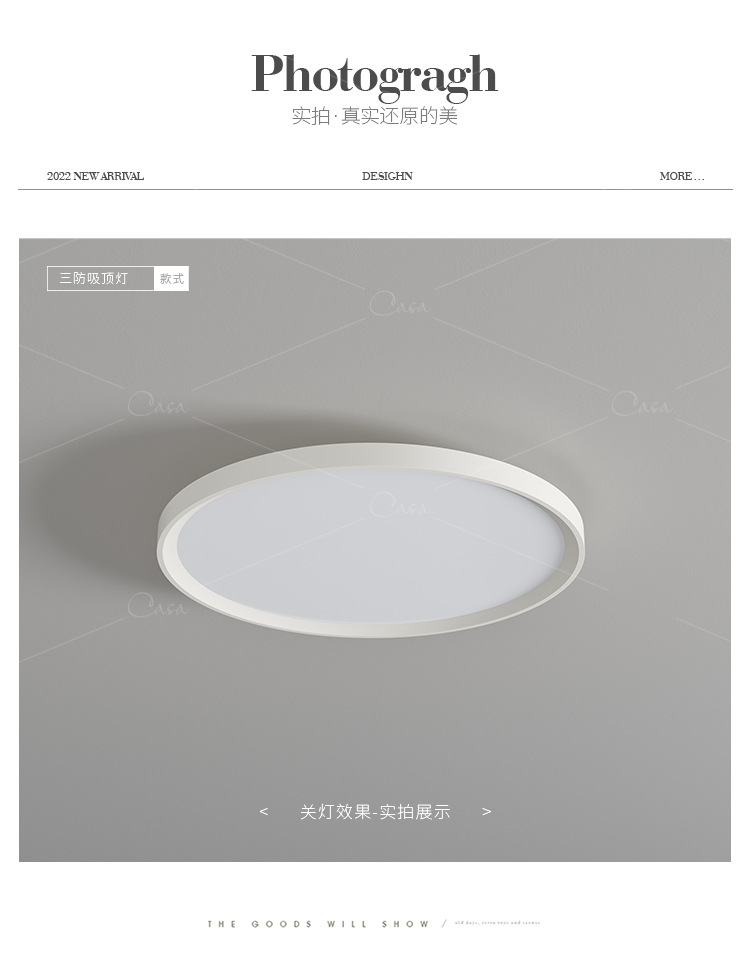 北欧极简卧室超薄三防吸顶灯简约轻奢客厅卫生间圆形灯具casagd