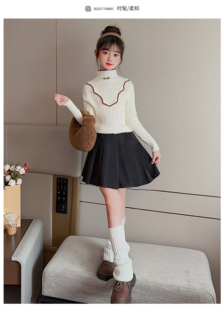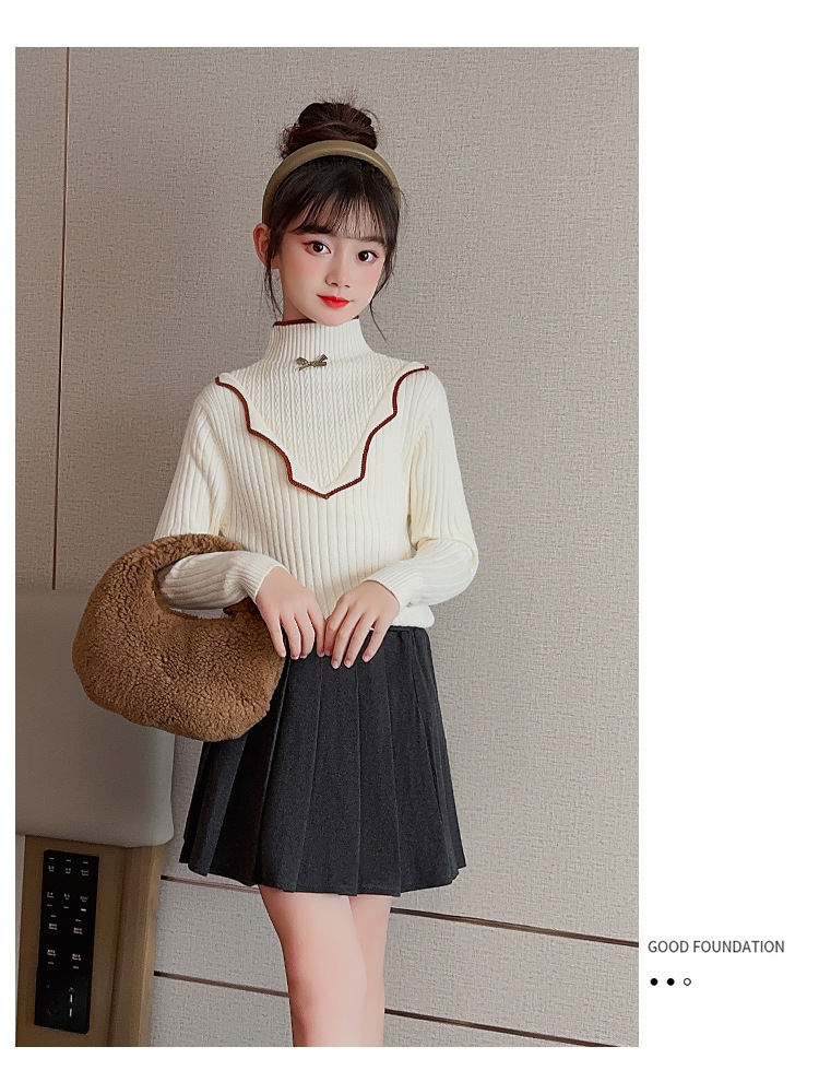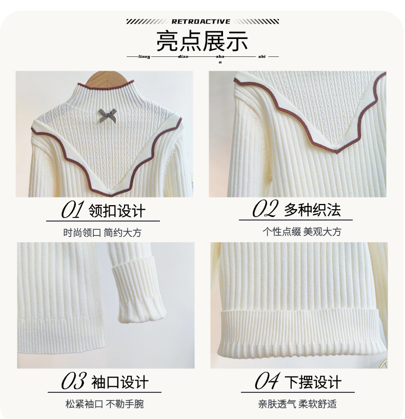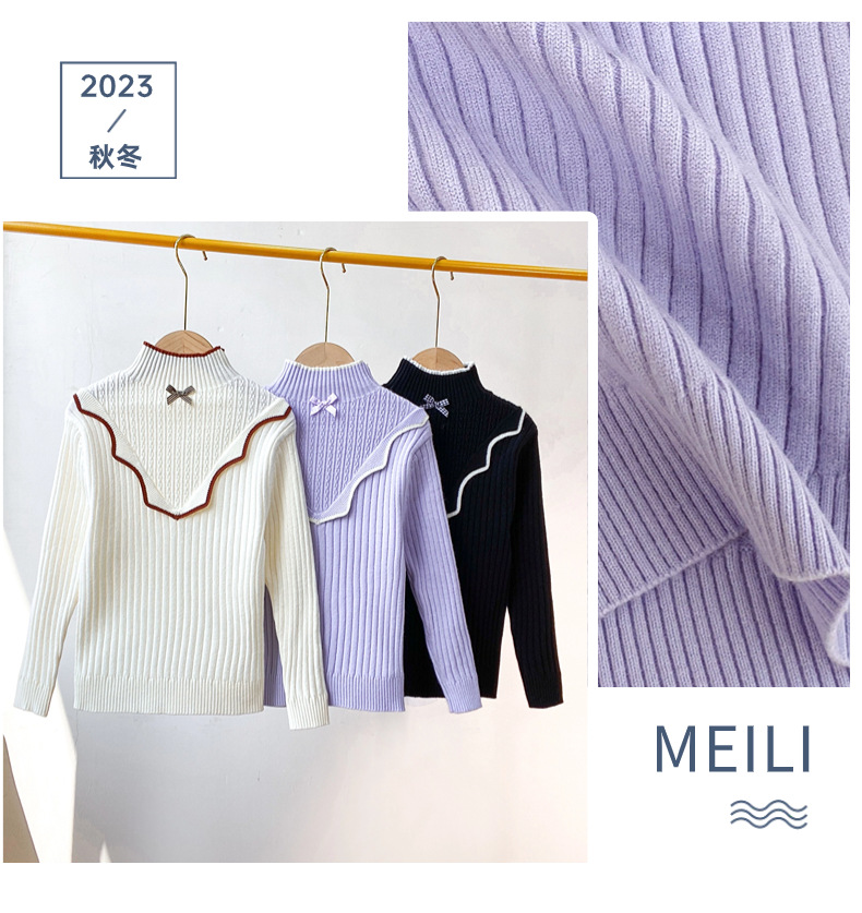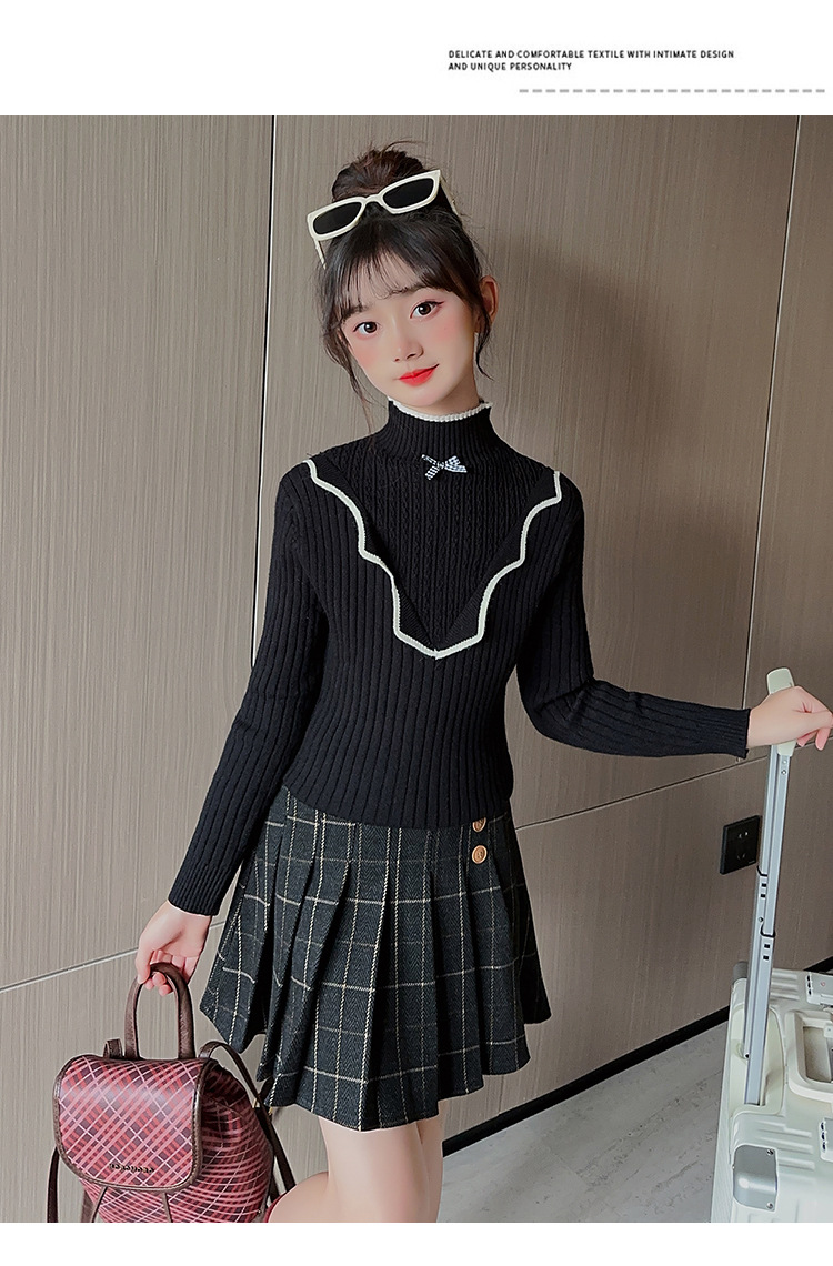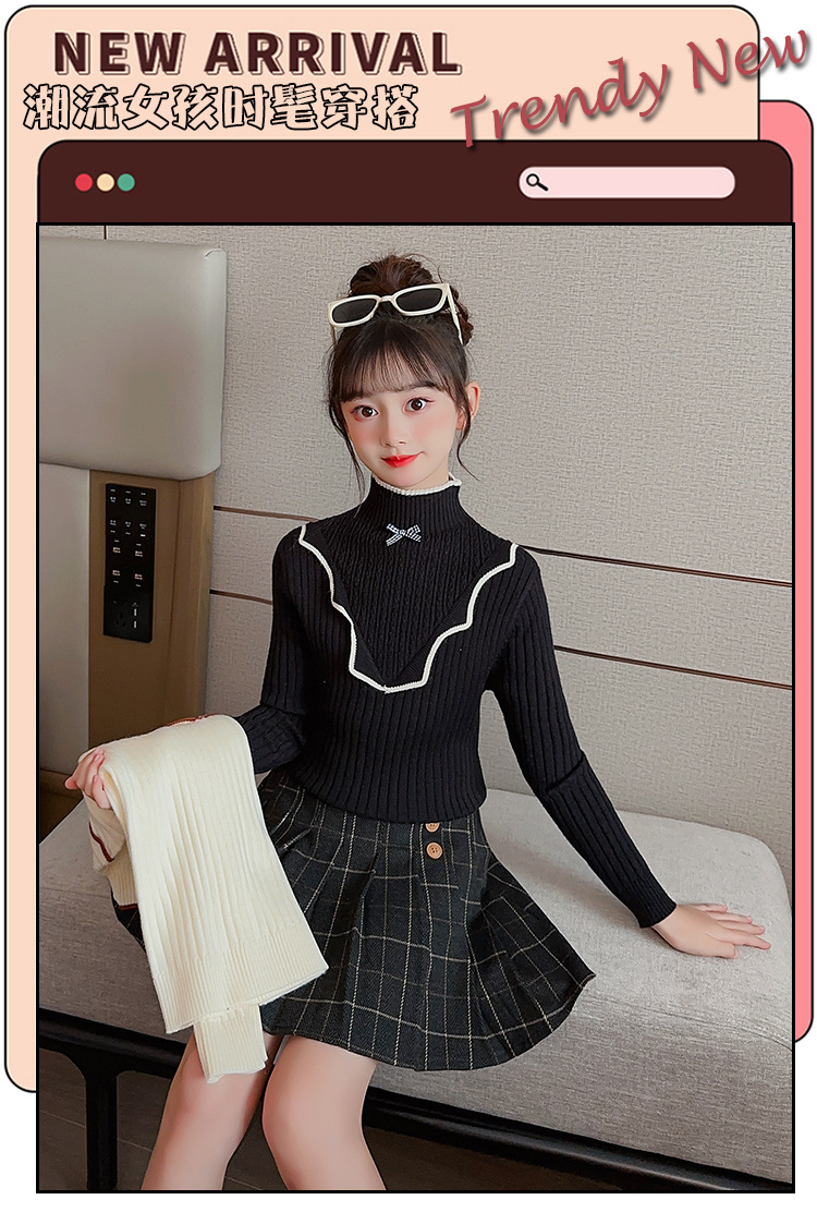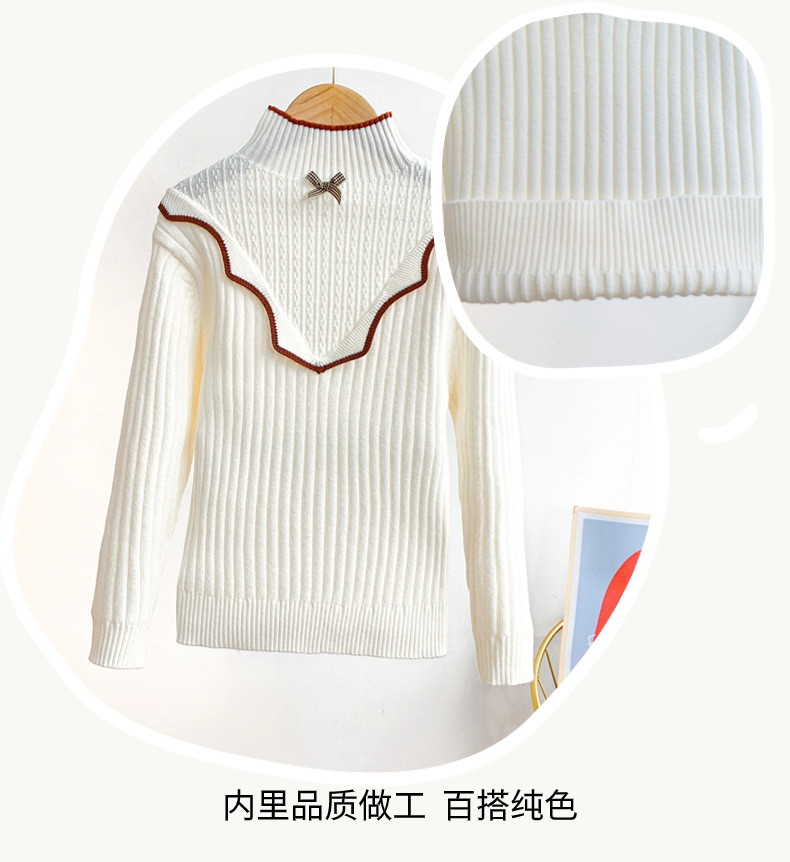 女童针织打底衫秋冬2024新款童装女孩洋气秋装上衣中大童时髦上衣