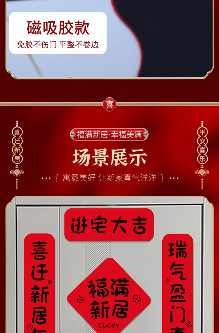 磁吸乔迁新居对联入宅搬家新房布置仪式入户门贴乔迁之喜装饰用品