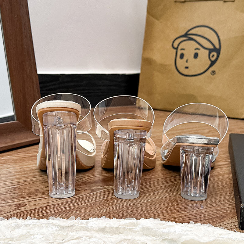 水晶拖鞋女夏季外穿仙女风小众高级感凉拖法式透明高跟鞋粗跟凉鞋