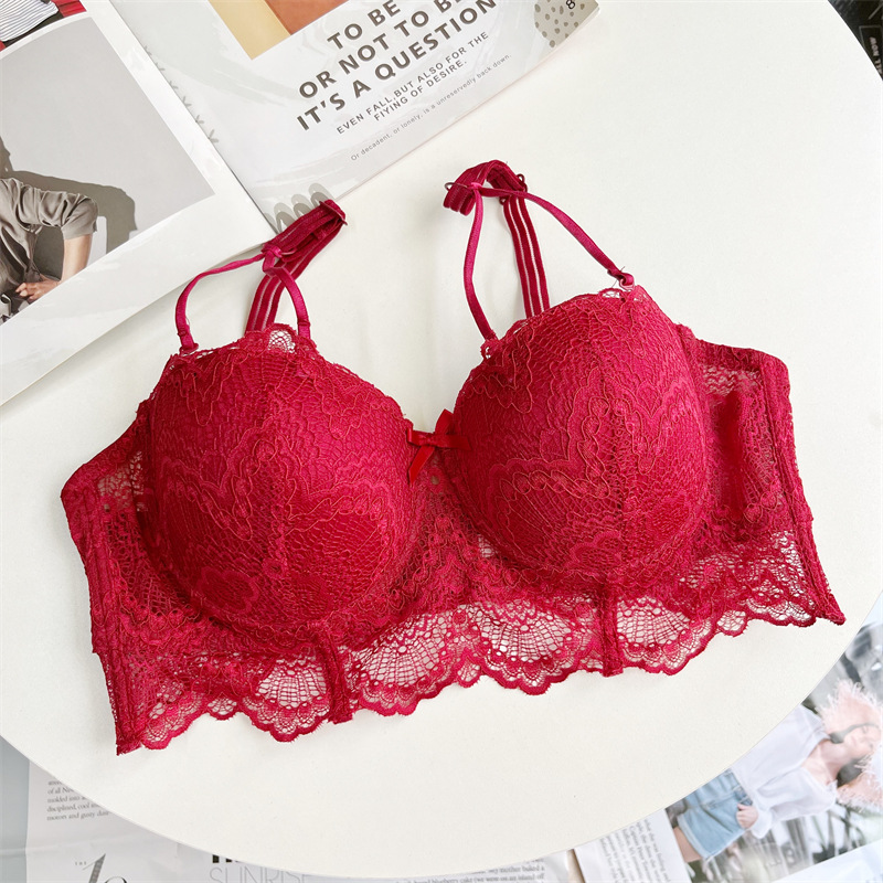 纯欲系200斤大码性感蕾丝少女甜美调整型内衣文胸套装 可拆无肩带