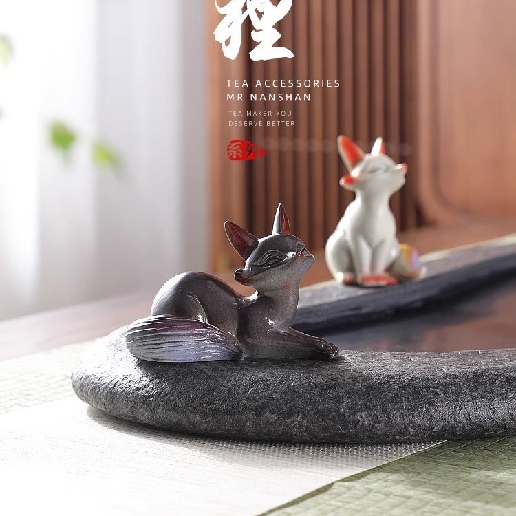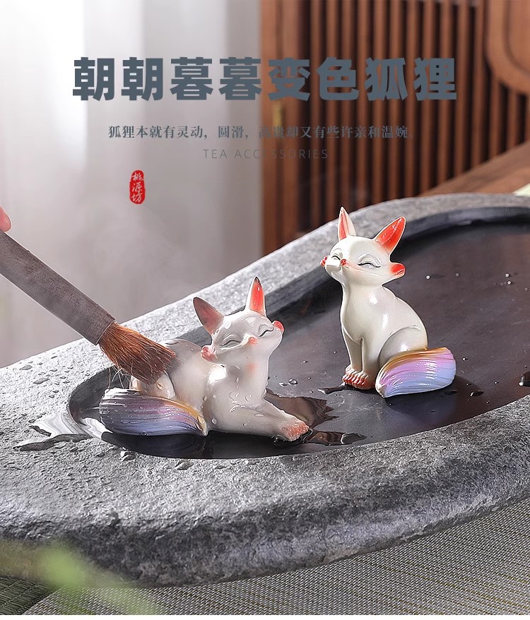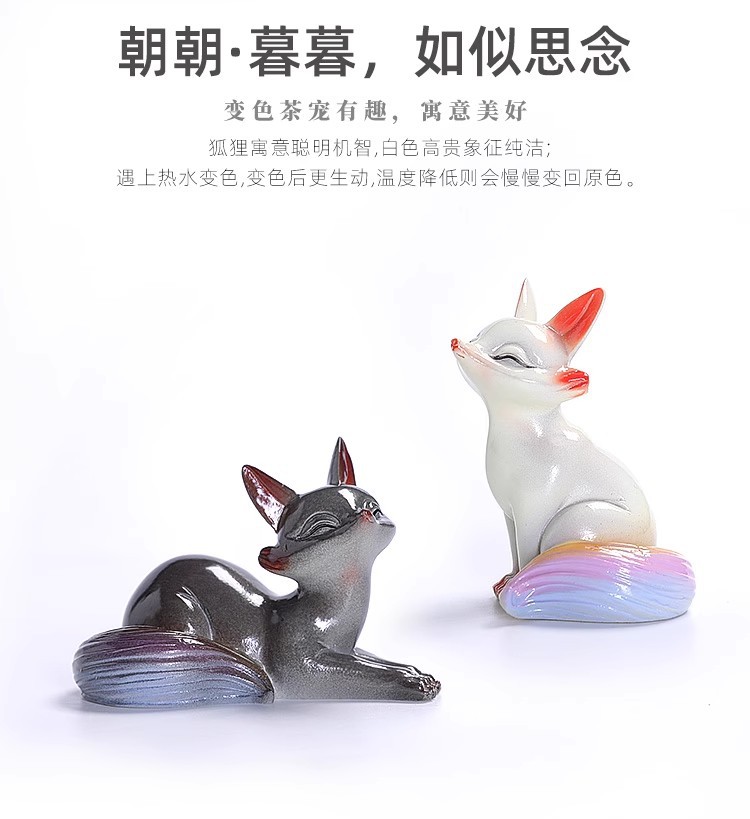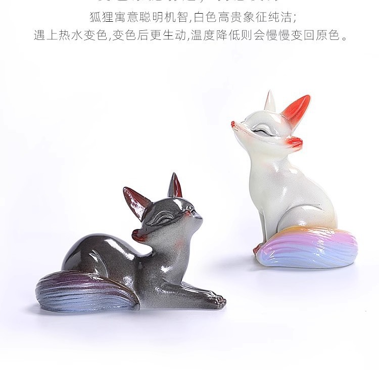 变色小狐狸茶宠可爱个性茶宝茶桌上的小摆件茶道茶玩茶具精品可养