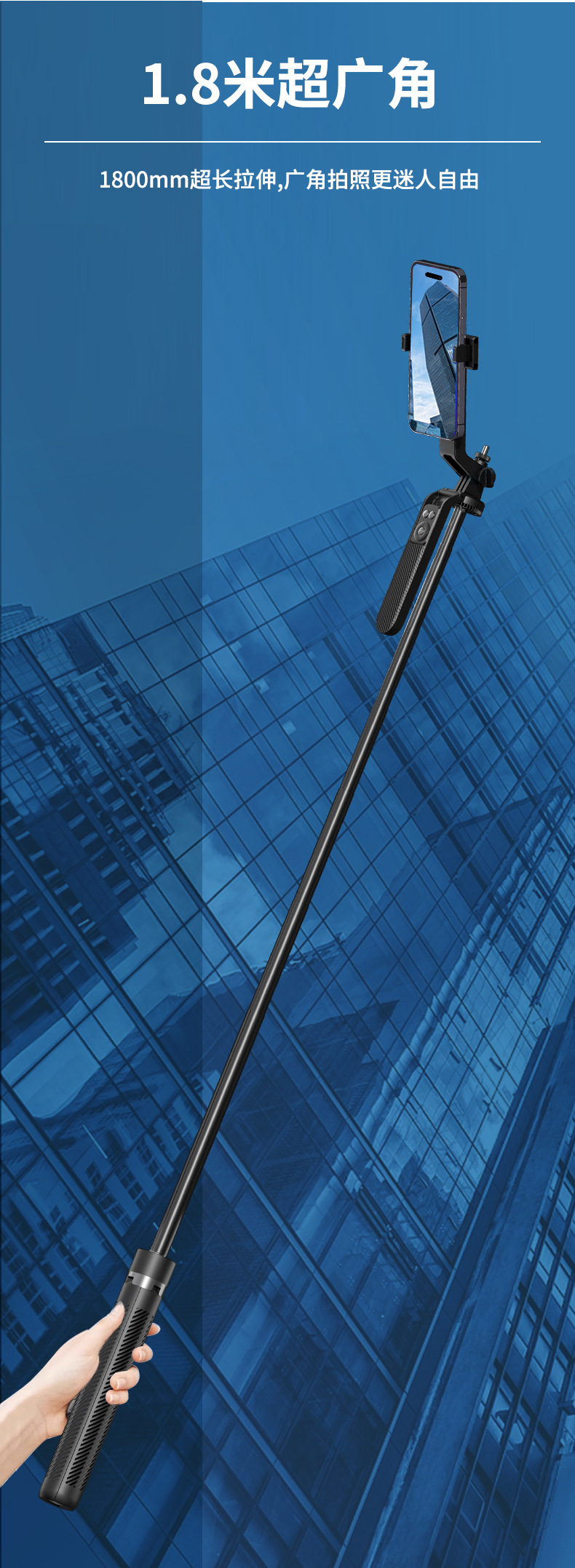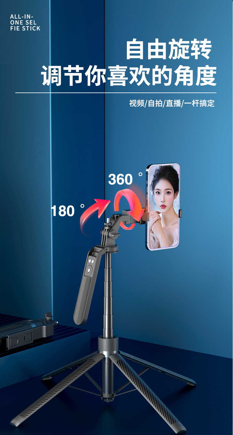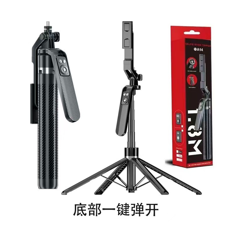 A14手机蓝牙自拍杆铝合金四脚支撑直播美颜补光1.8米落地相机支架