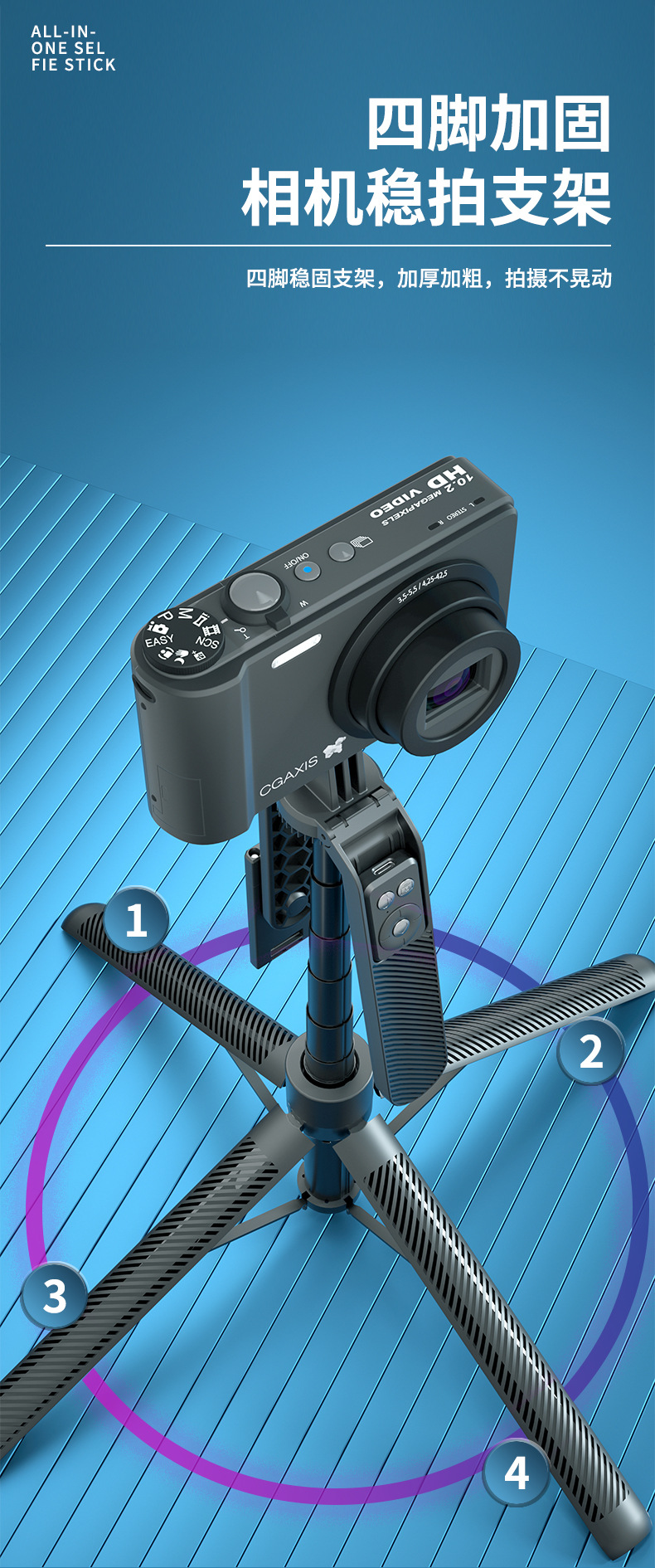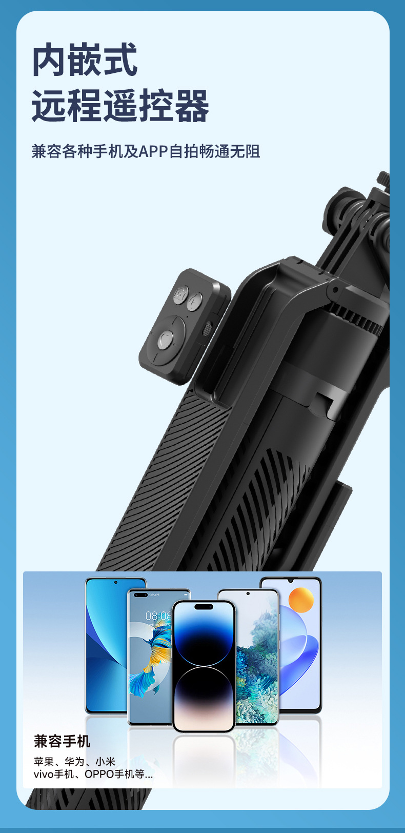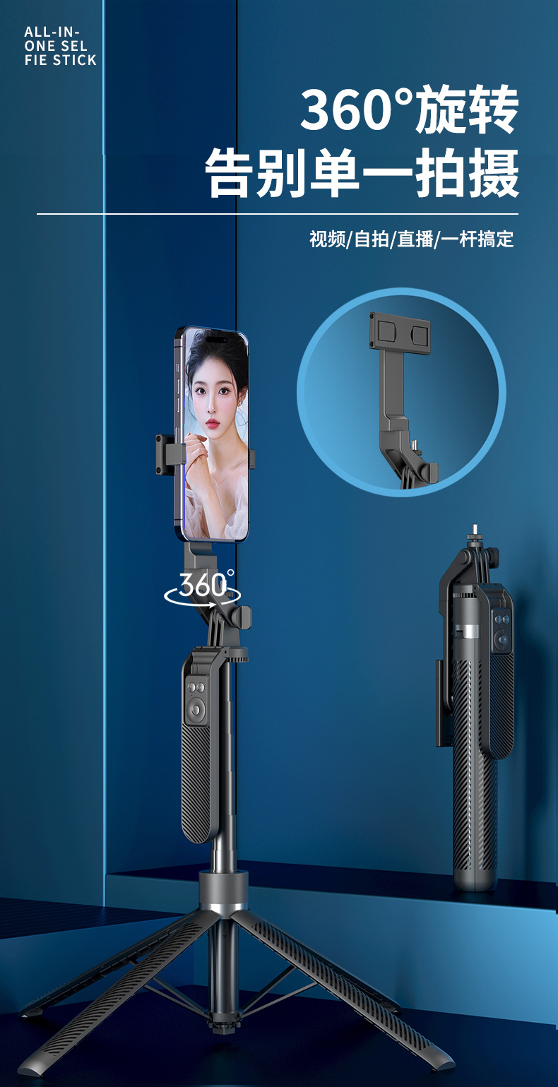 A14手机蓝牙自拍杆铝合金四脚支撑直播美颜补光1.8米落地相机支架