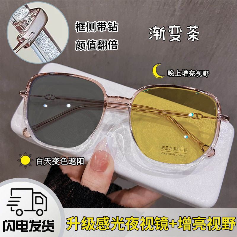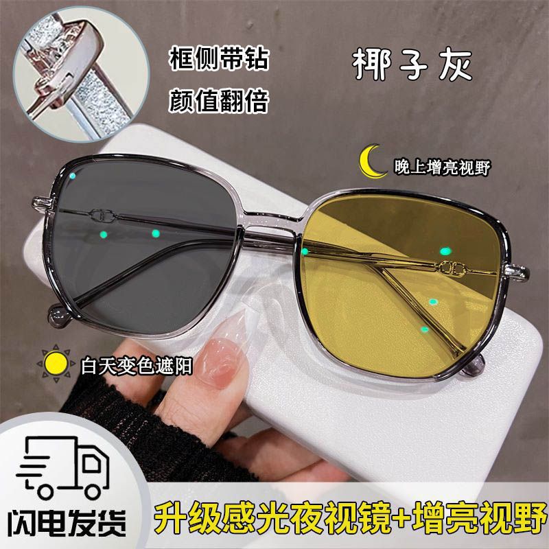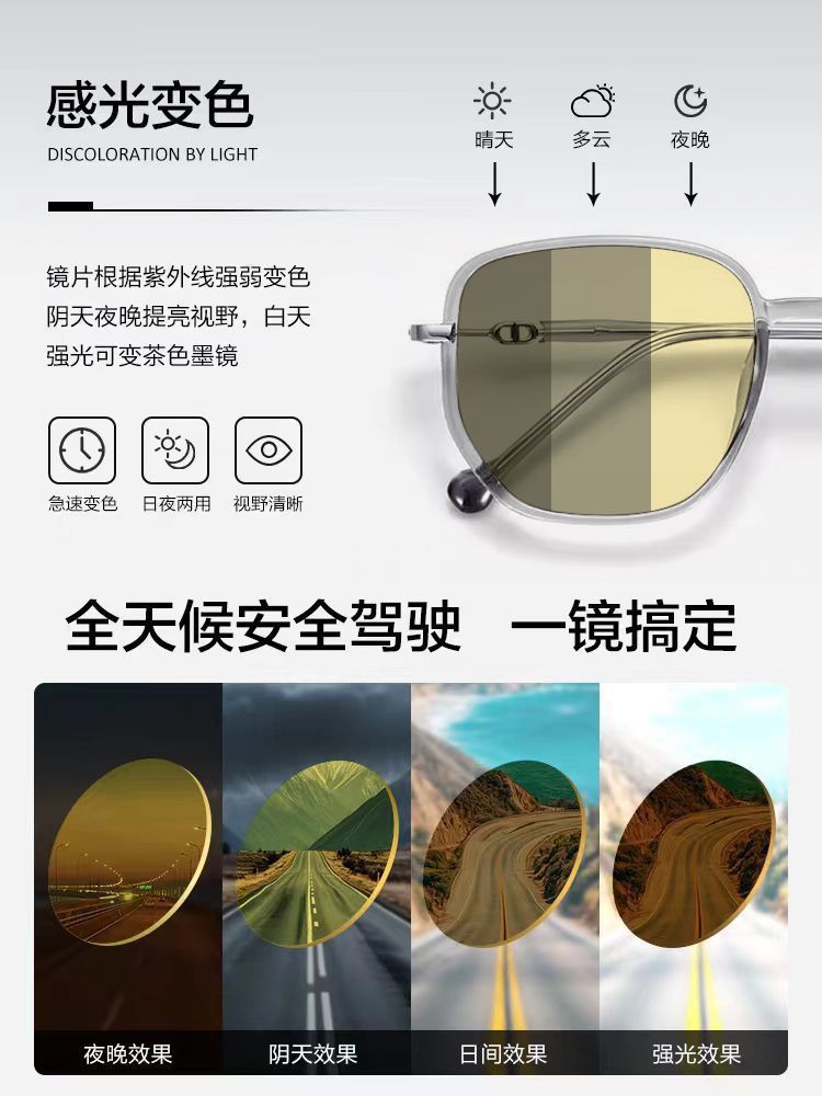 新款日夜两用夜视眼镜户外开车驾驶防紫外线墨镜配有度数夜间变色