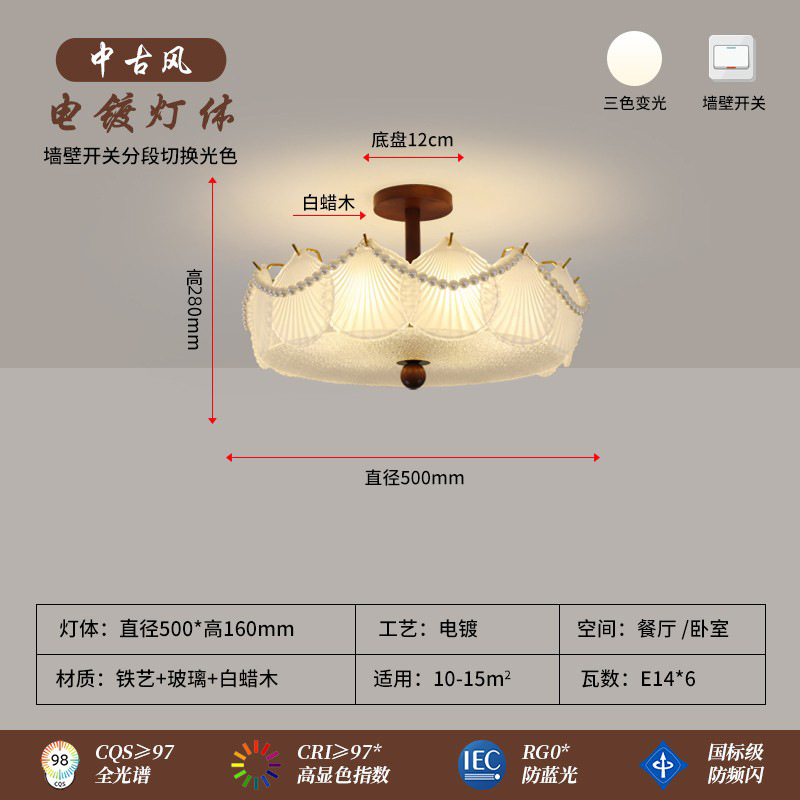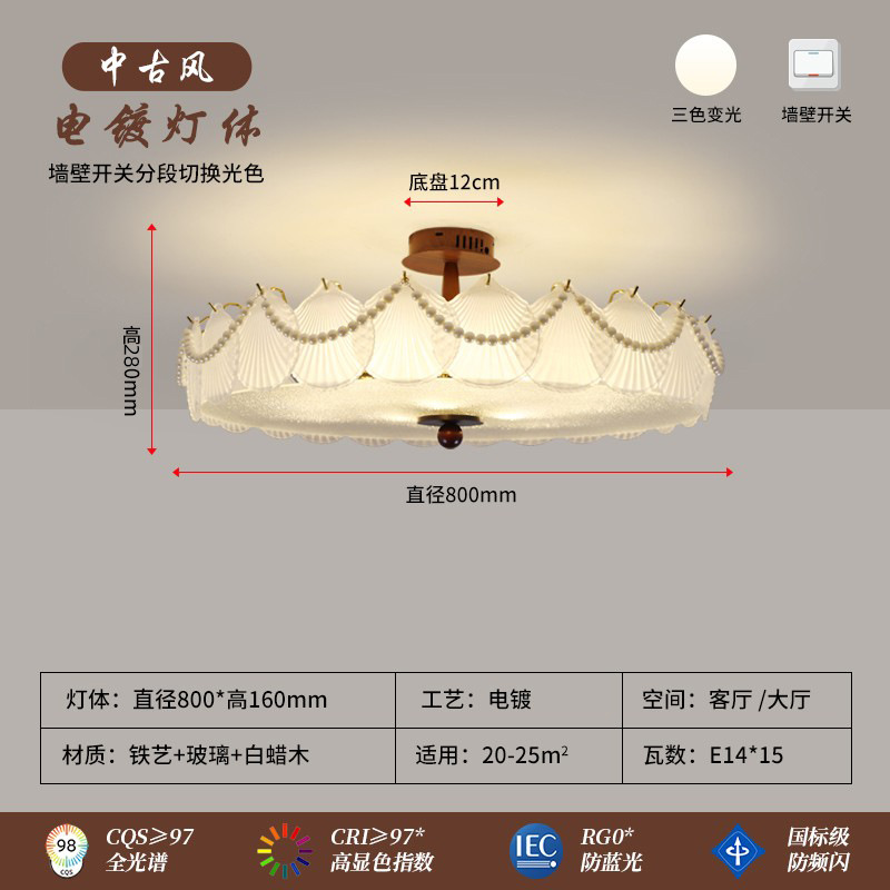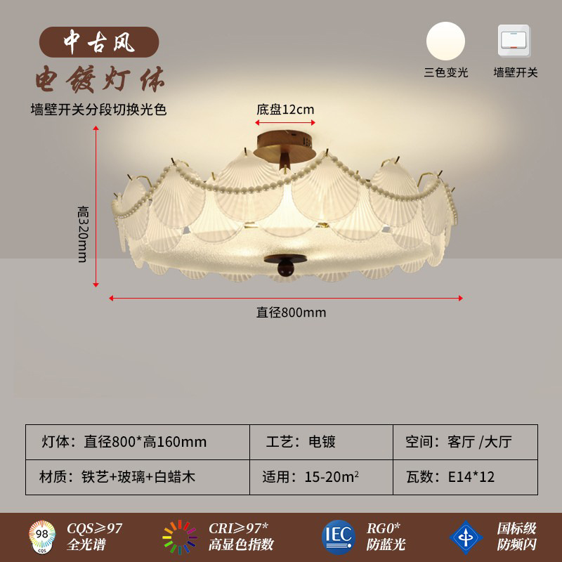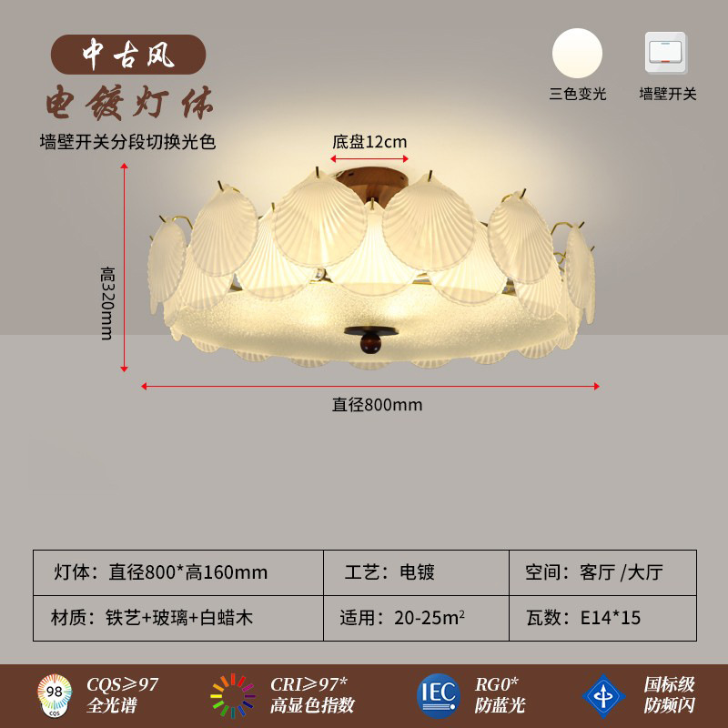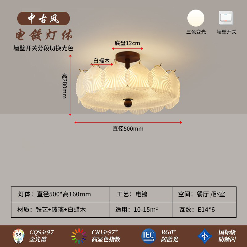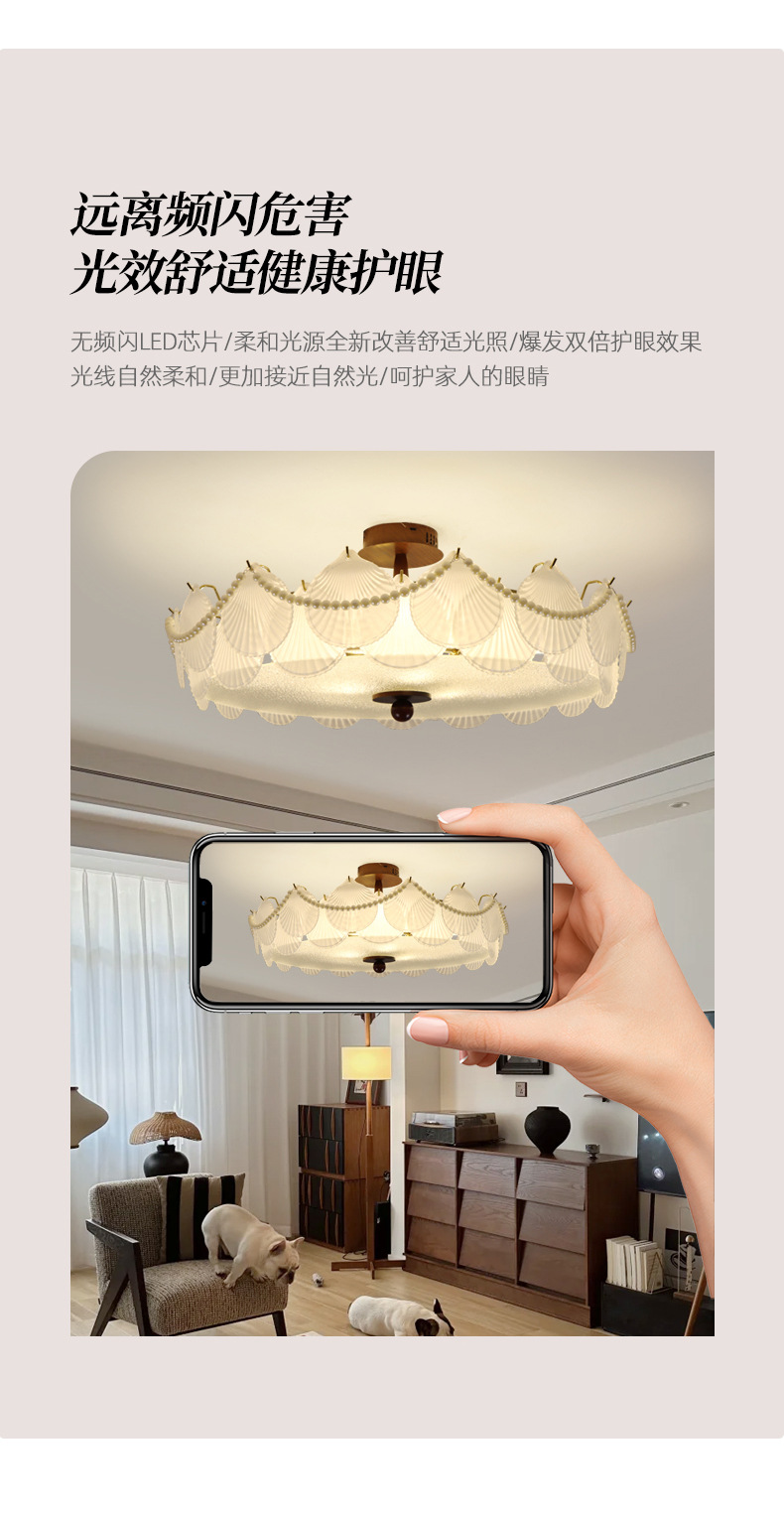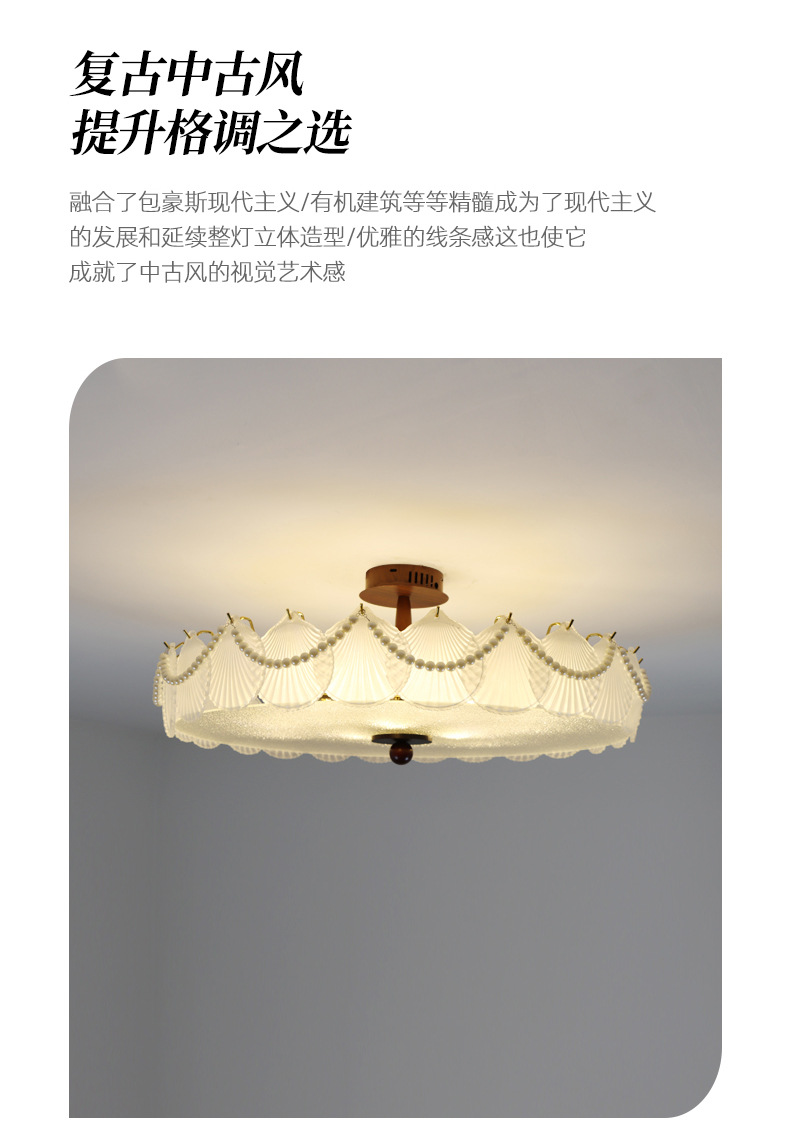 法式中古风卧室吸顶灯创意贝壳珍珠灯高级感主卧书房灯具casagd
