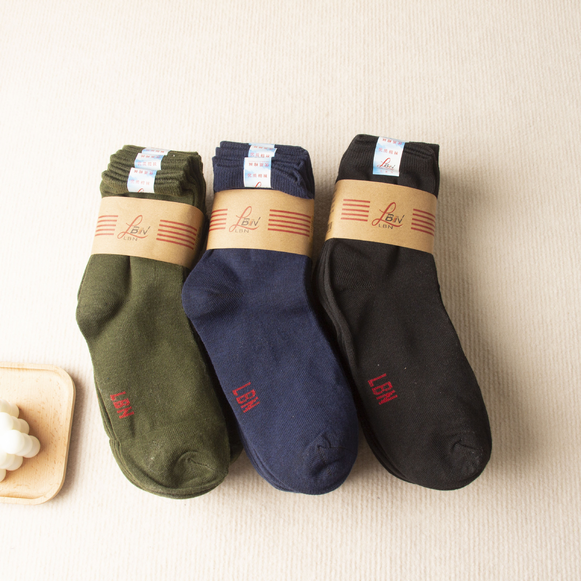 果绿袜子男中筒袜冬袜黑色藏蓝防臭吸汗制式男士运动袜商务袜新军