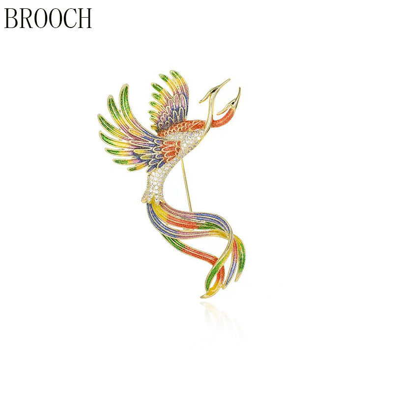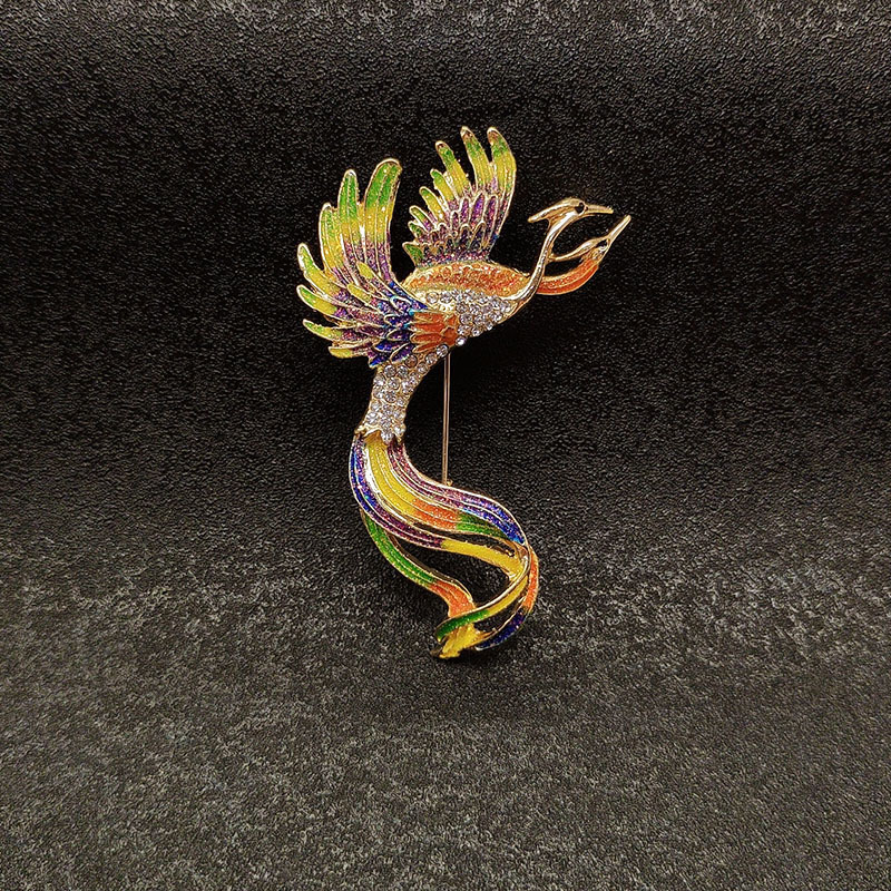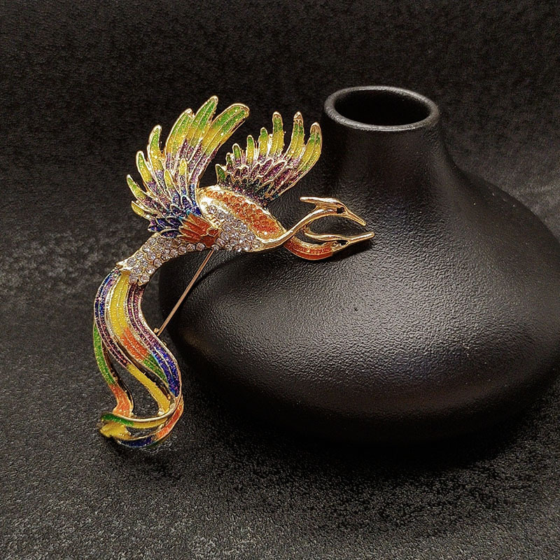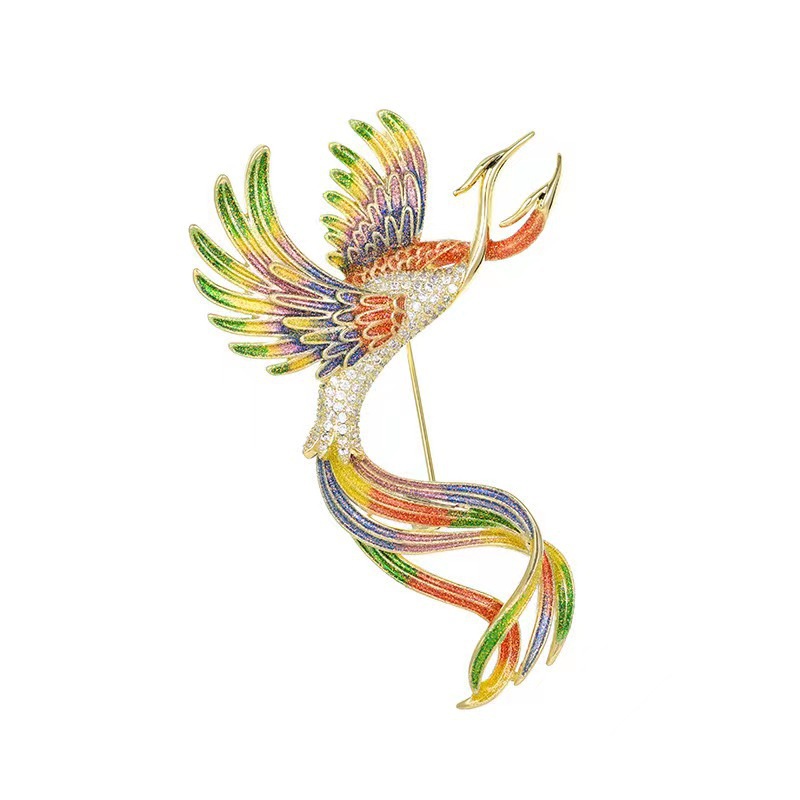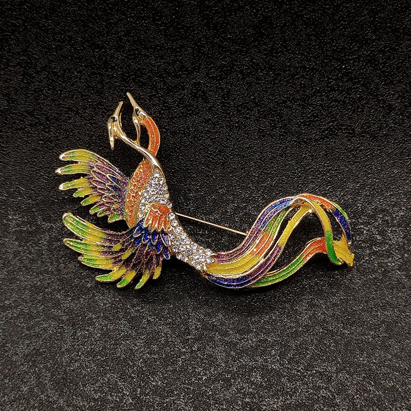 中国风凤凰珐琅彩色胸针女士高档时尚复古胸花设计感服装别针配饰