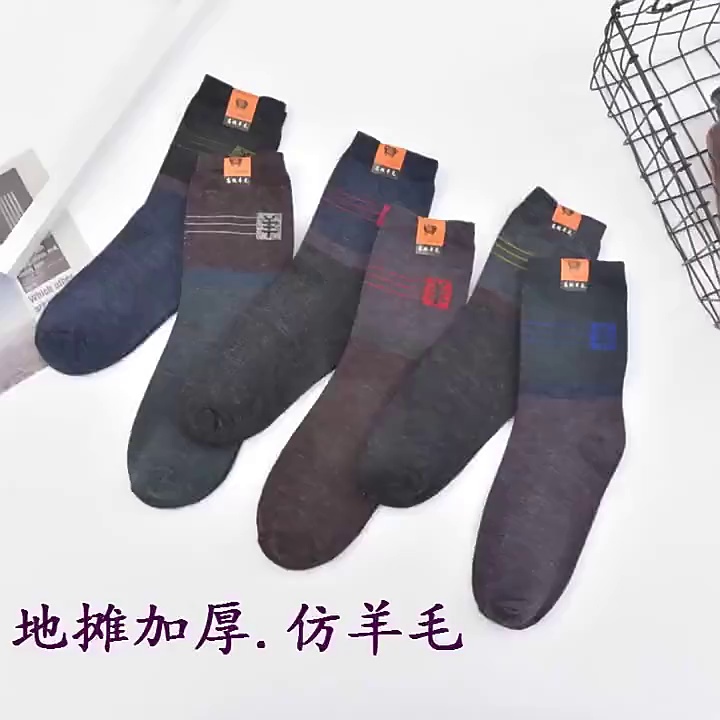 秋冬款中筒男士仿羊毛袜加厚保暖男士老头袜休闲袜地摊货袜子批发