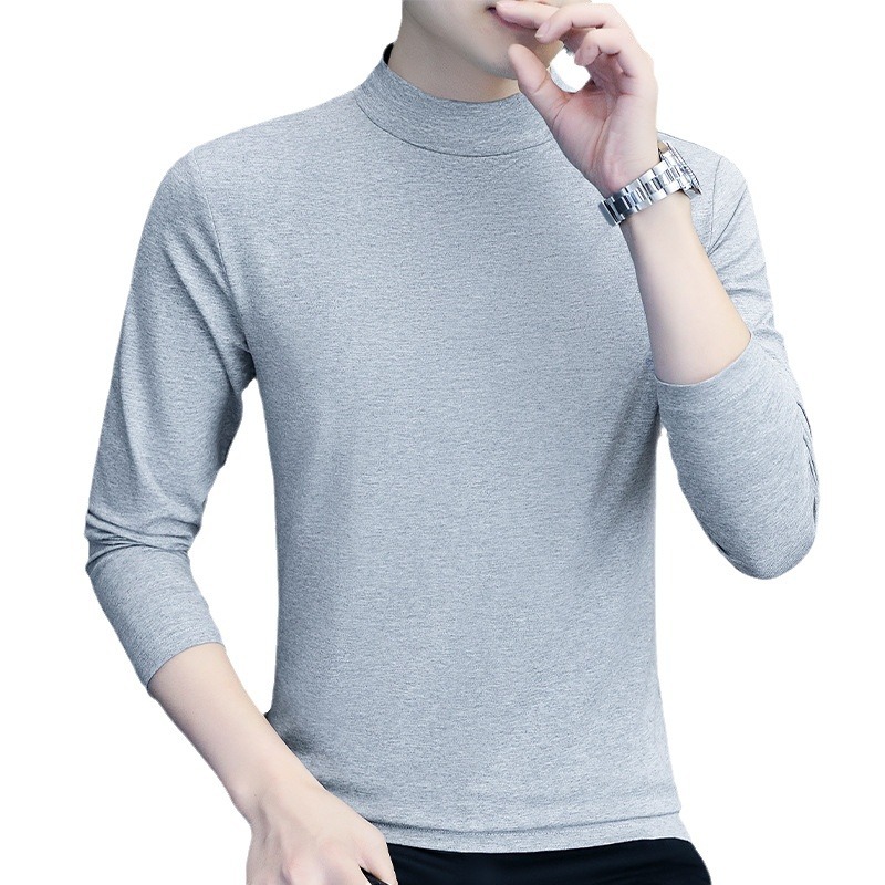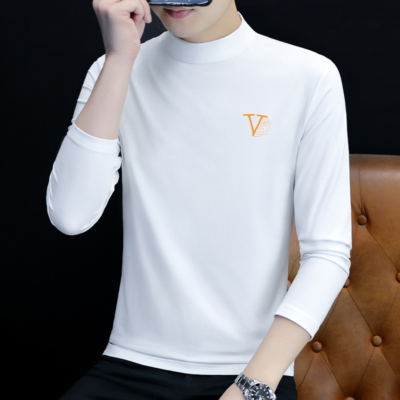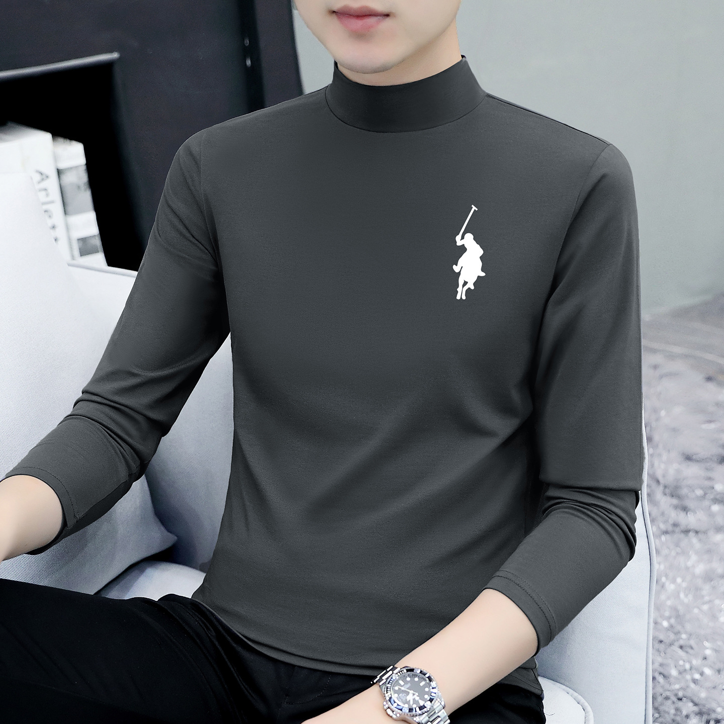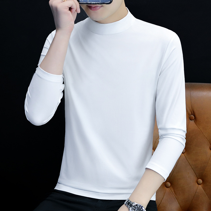 男士长袖T恤压花半高立领男装打底衫弹力修身休闲男式T恤上衣批发