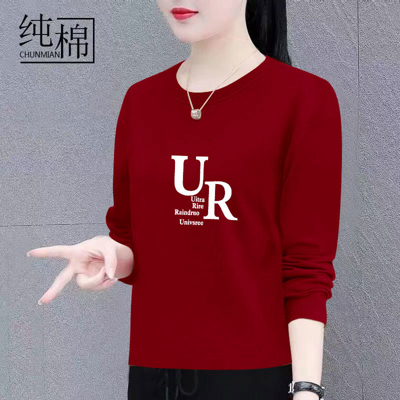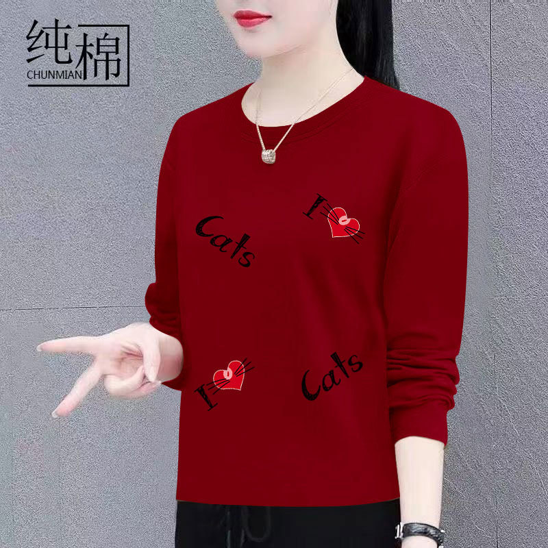 棉长袖女士春秋季新款韩版宽松洋气时尚显瘦遮肉百搭体恤衫上衣
